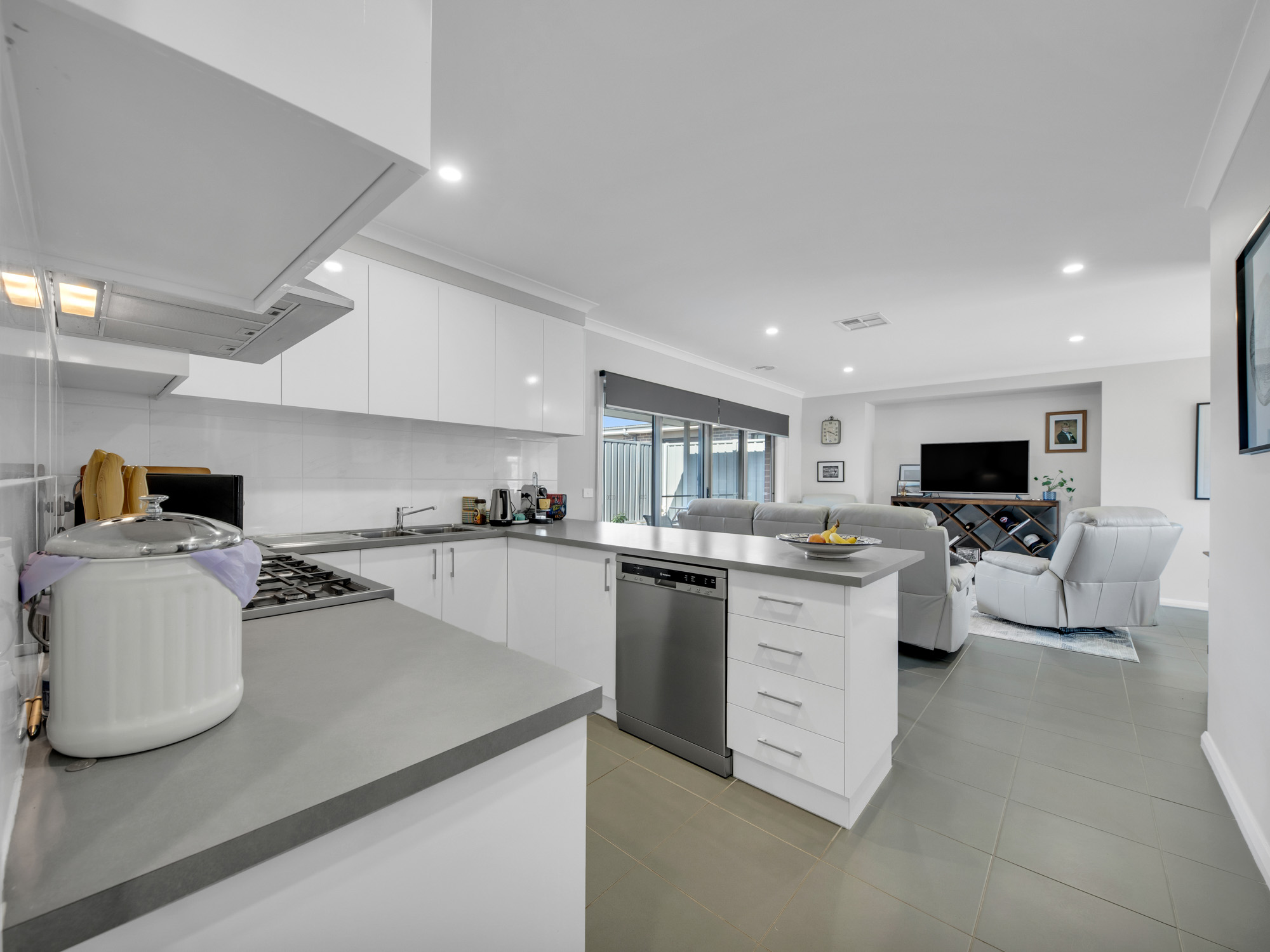 - A modern kitchen with a 5 burner gas stove and dishwasher