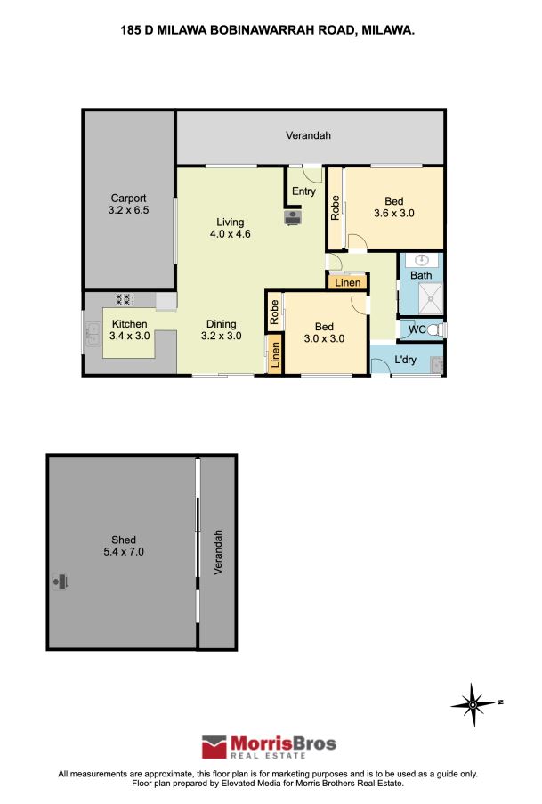 185D Milawa-Bobinawarrah Road property emphasises style, comfort and functionality. With two bedrooms with built in robes, a cleverly designed modern kitchen with gas stovetop, electric oven and dishwasher caters for all. There is abundant natural light throughout.