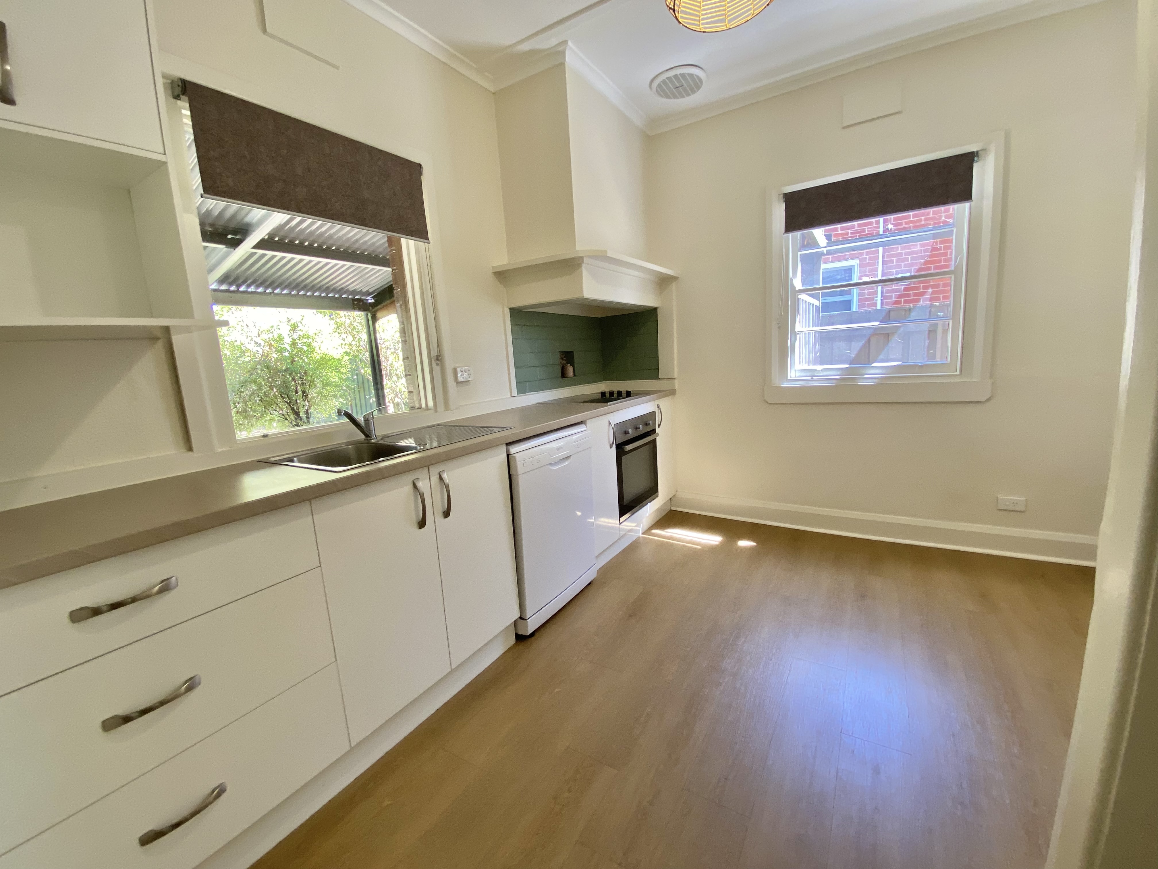 A modern kitchen and dining area that consists of an electric cook-top and newly installed oven/grill and new dishwasher are an added bonus.