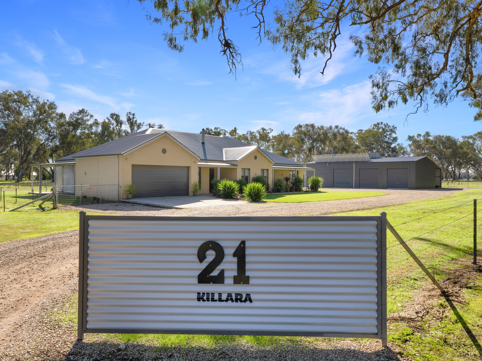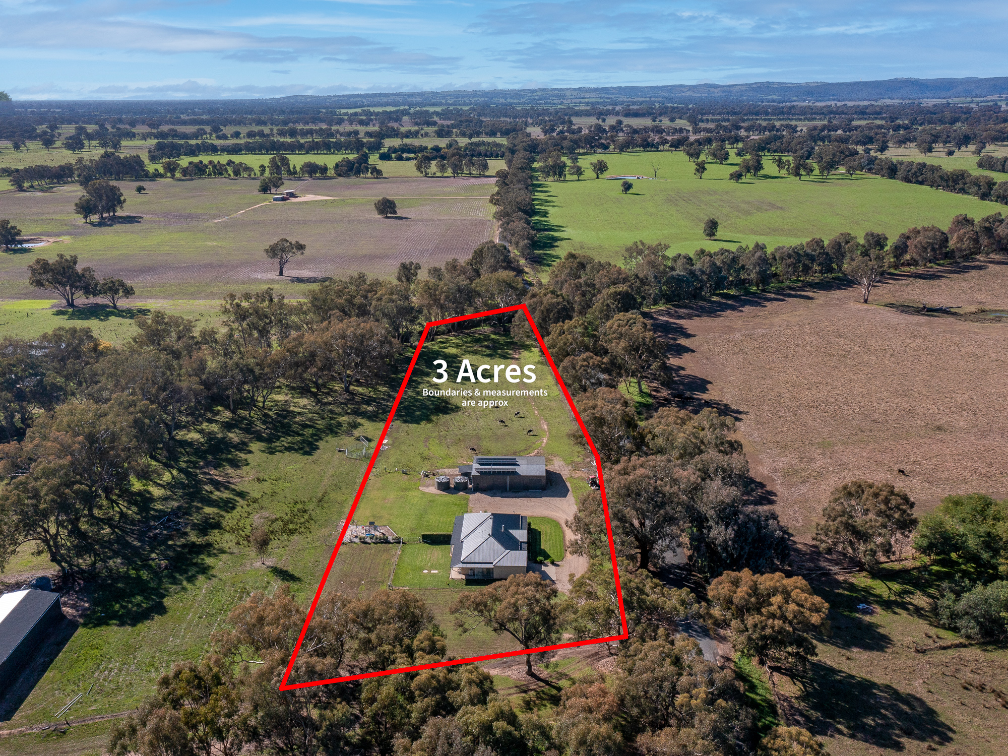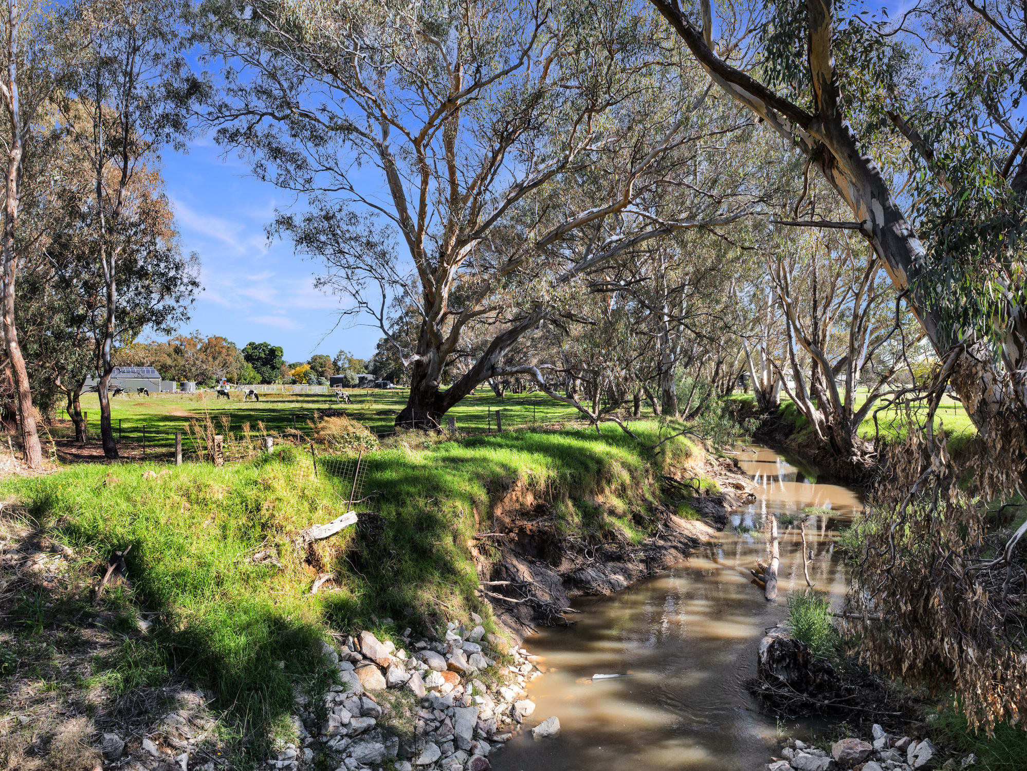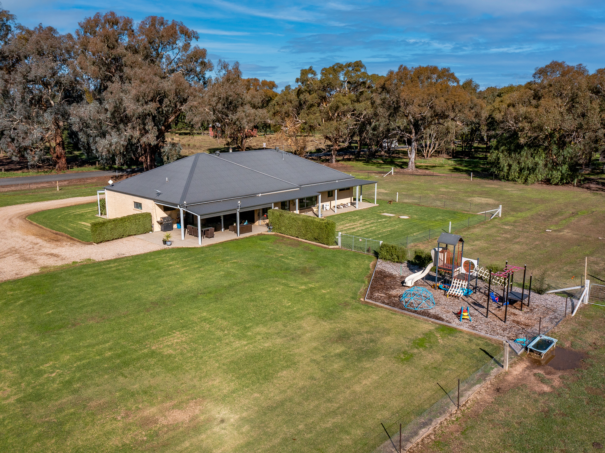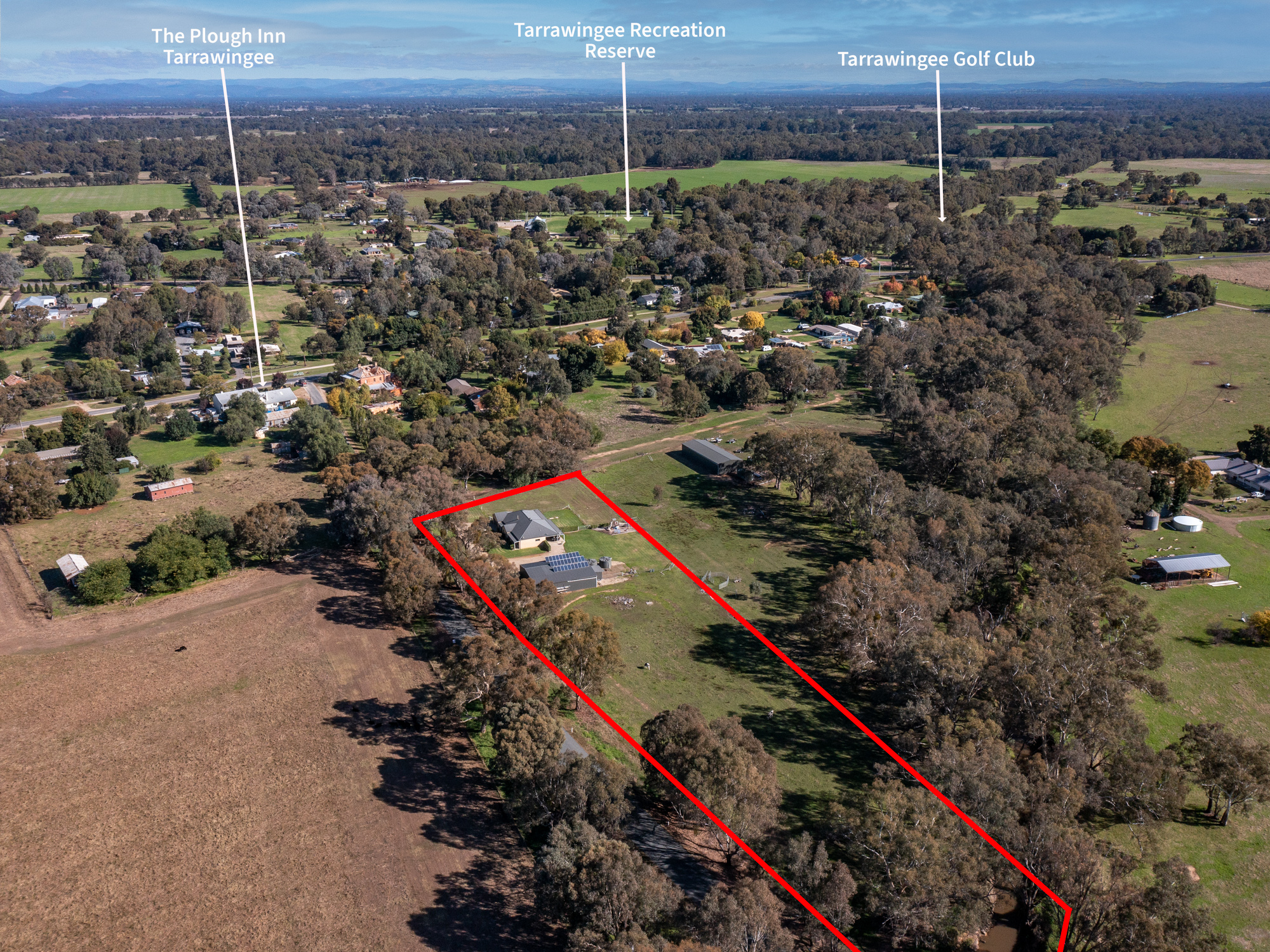 The creekside river red gums provide the background for the idyllic three acre setting of ‘Killara’, the four bedroom home of 21 Boralma – Tarrawingee Road at Tarrawingee Village.