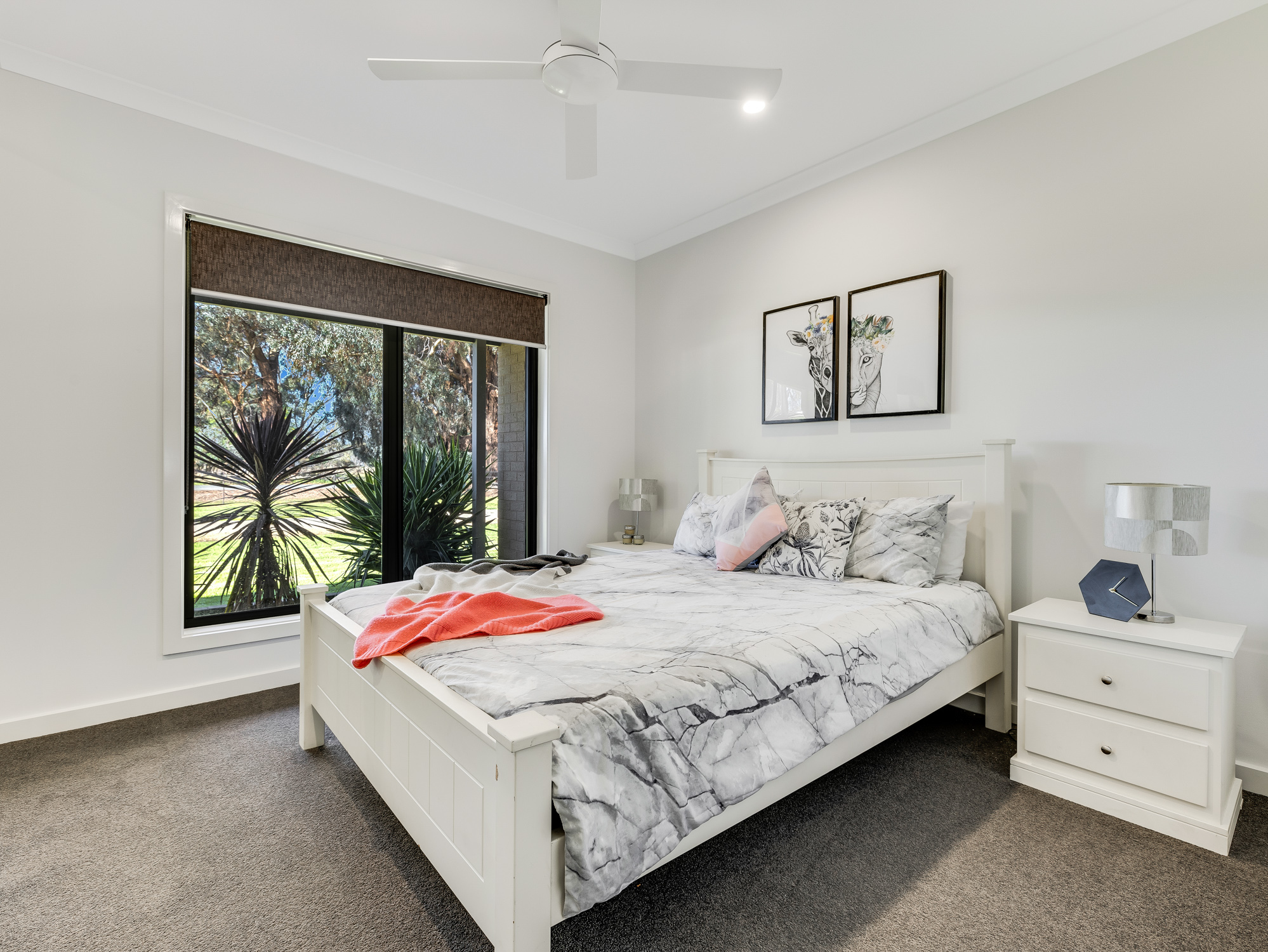 These light filled airy living areas open to the verandas and an outdoor entertaining area which is lined and has a ceiling fan. The outlook is delightful and peaceful overlooking the tree lined creek precinct.