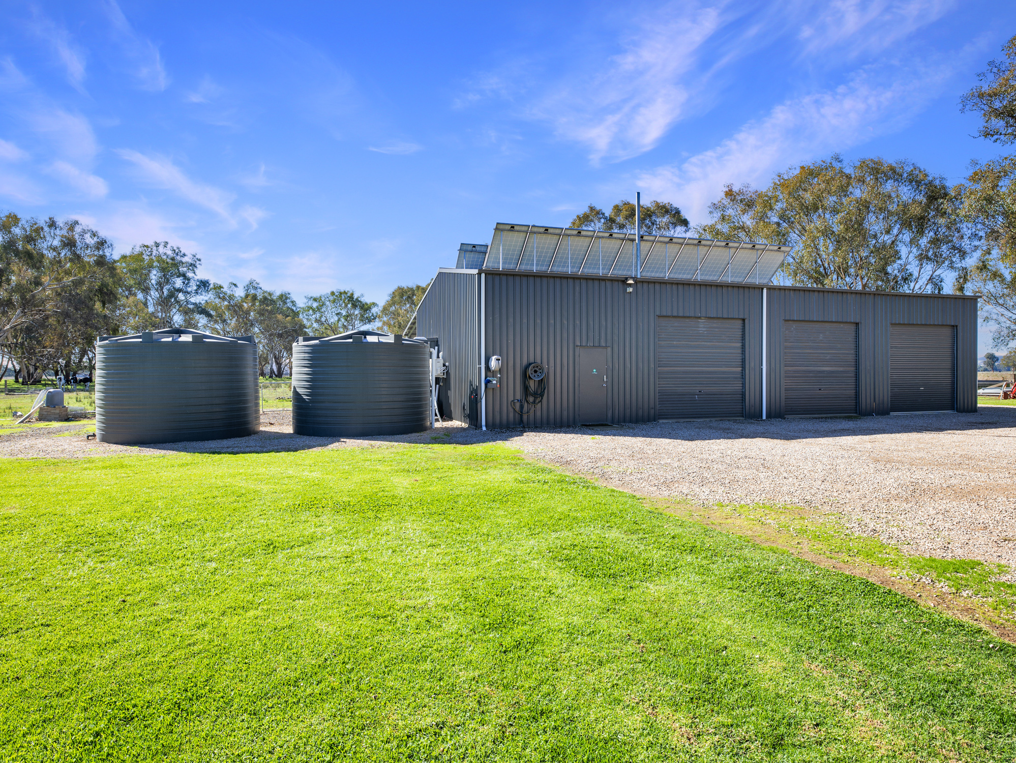• 20m deep bore with pump; rainwater from 50,000 litre tanks off the house and shed catchment