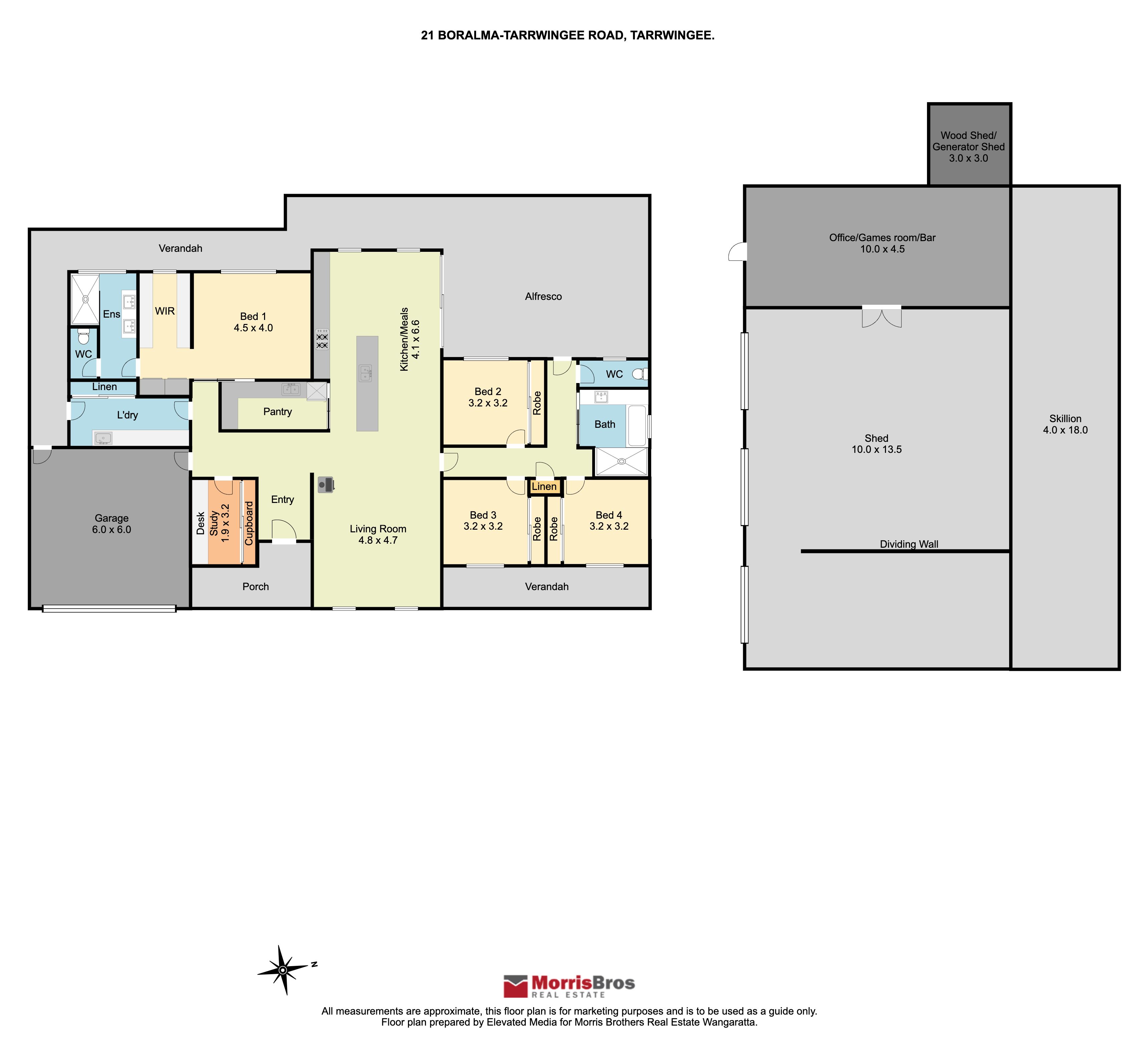 • Modern 180m2 colorbond shed, multiple roller doors and one bay fully lined, with 2.5kw split system, inbuilt mezzanine storage.