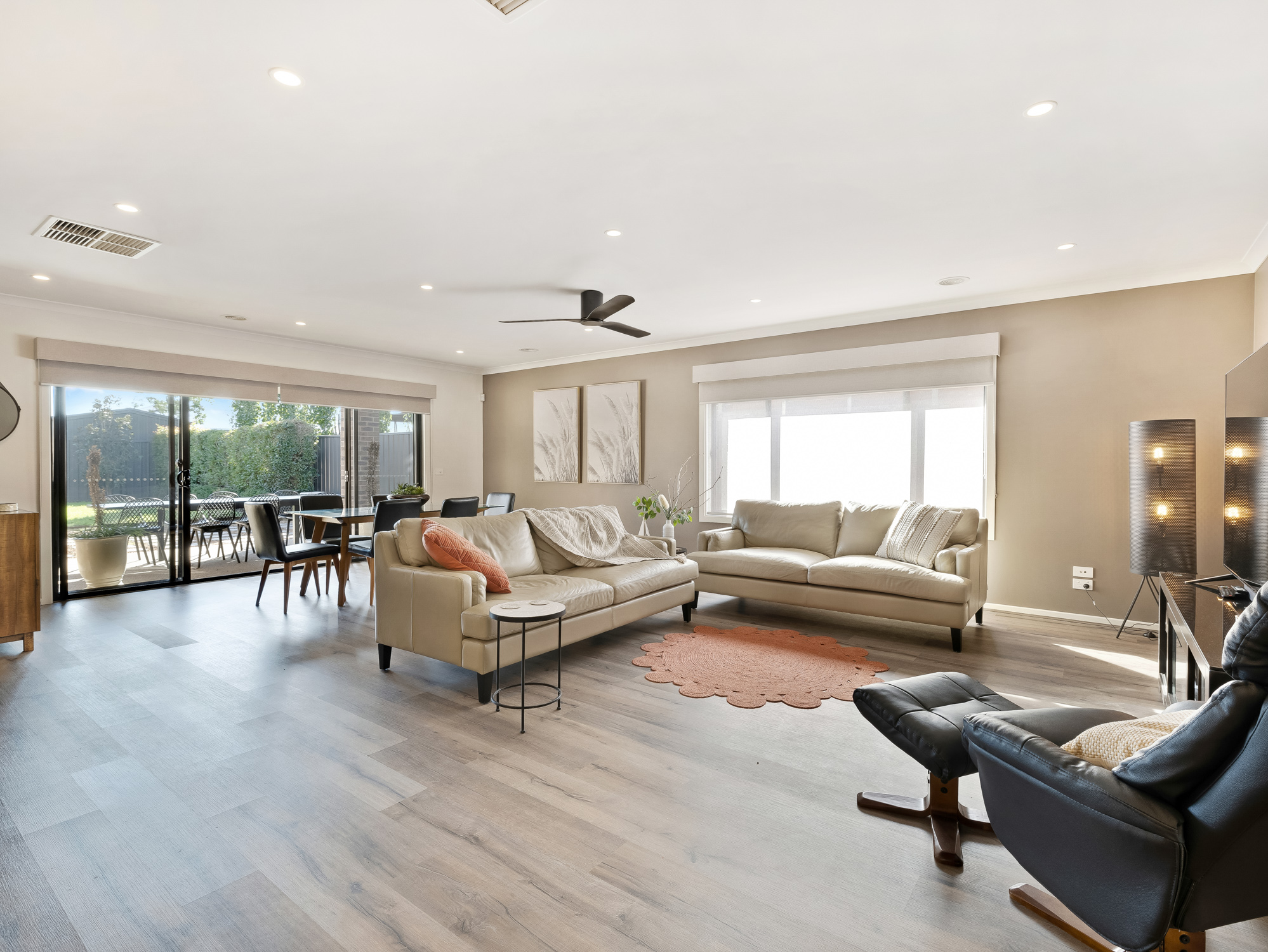 The address is inspiring and the ‘walk to schools’ location should top your family wish list. The modern dwelling delivers on all the rest of the list. All four bedrooms have spacious robes with the master equipped with WIR and ensuite. Hard to believe but there are four separate ‘living’ areas, focused firstly on a main spacious kitchen/family room, and the additional three rooms have versatility for dining, office and perhaps just a quiet space. So it’s an inspirational floor plan delivering for family needs. No 14 University Way comes with ducted gas heating, ducted evap cooling, an impressive gas range built in microwave and dishwasher all in stainless steel plus large walk in pantry. All appointments in the home are top quality and impressive complimenting the faultless presentation. The securely fenced yard is fully landscaped with a covered and paved outdoor entertaining area linking the cool green lawn to the living areas. There is a two car lock up garage.