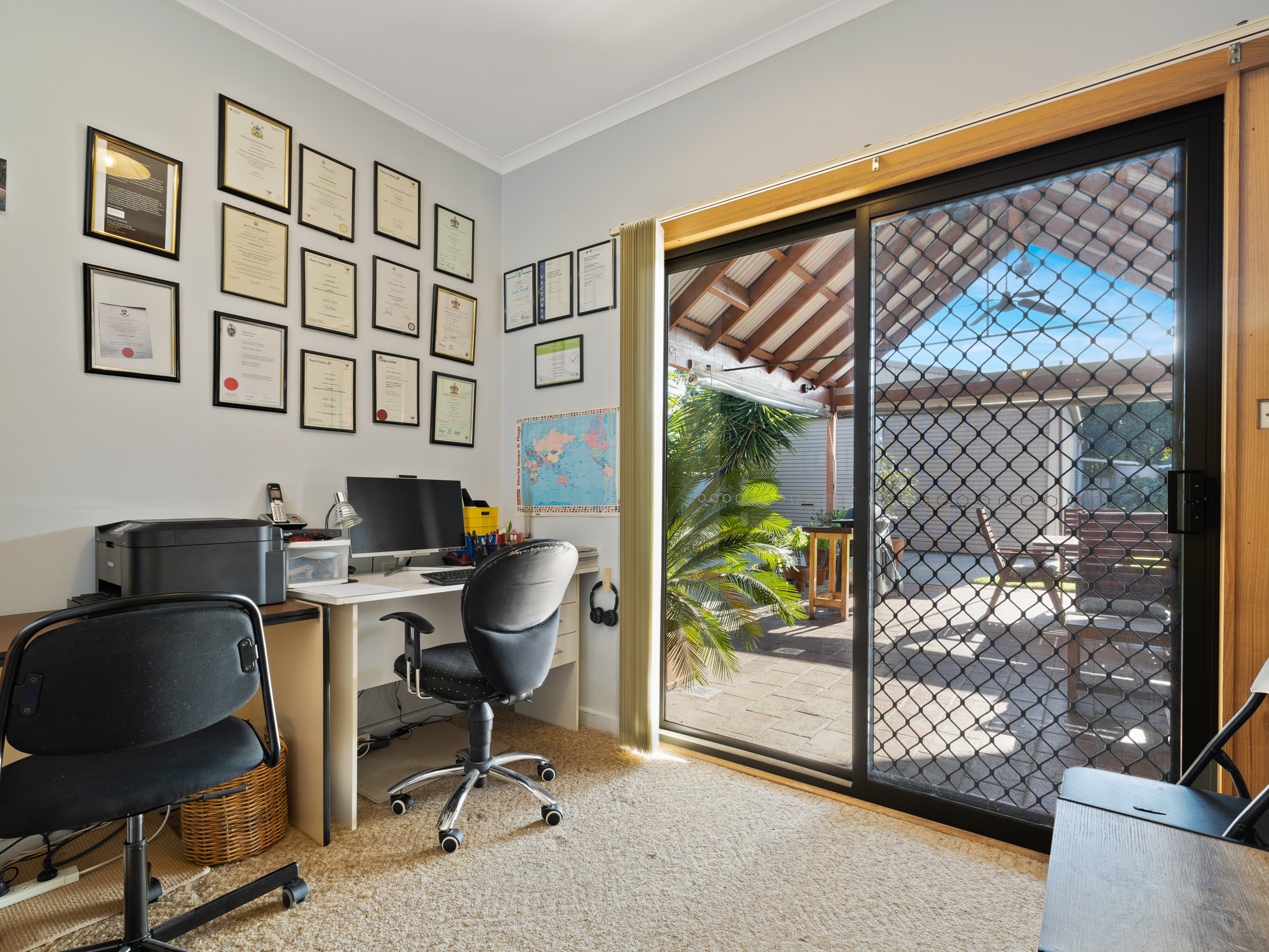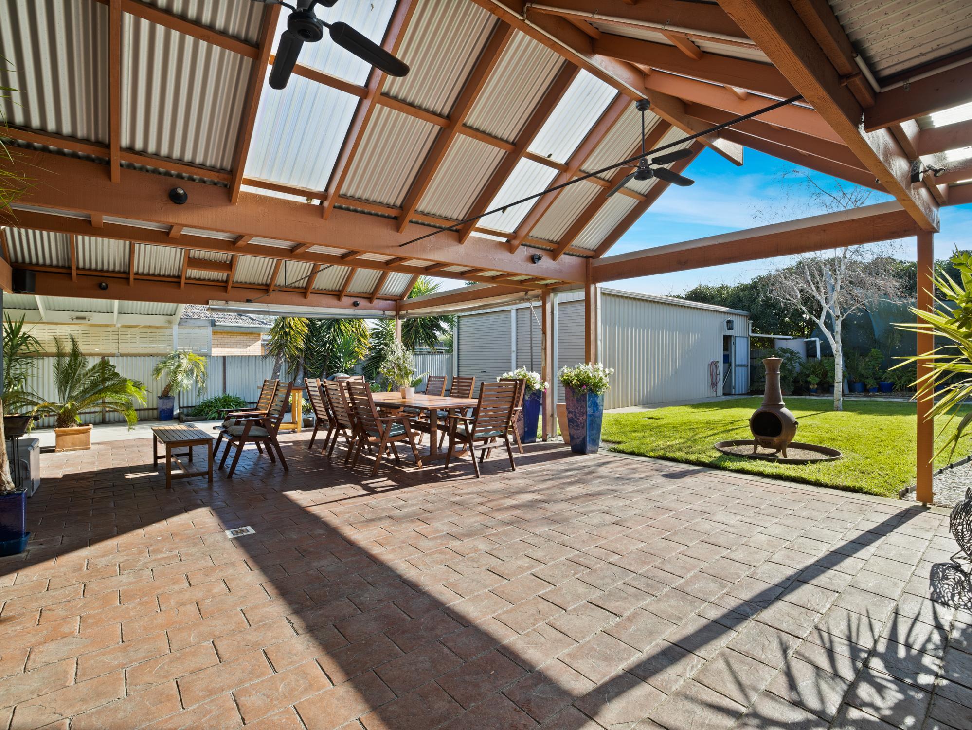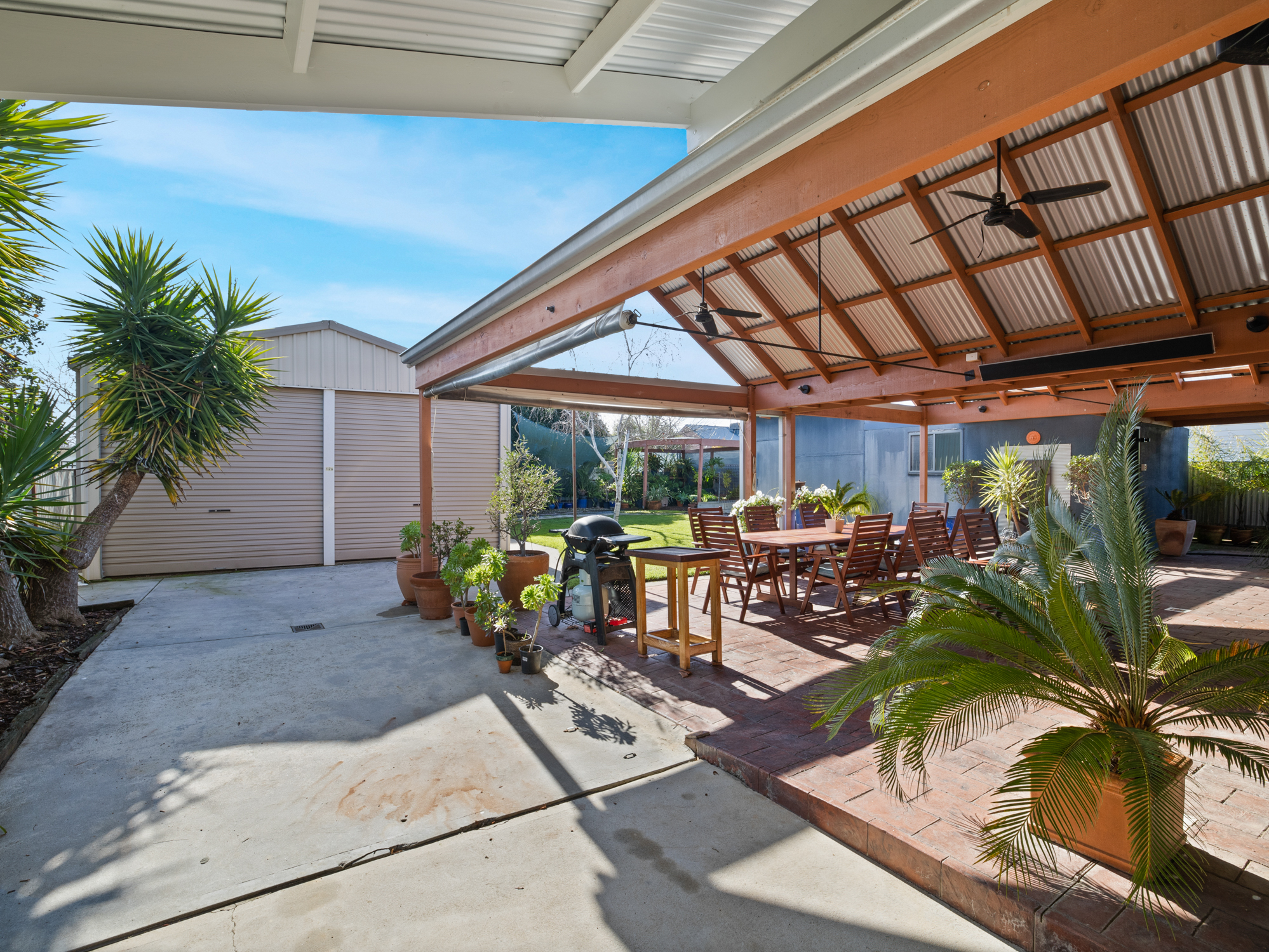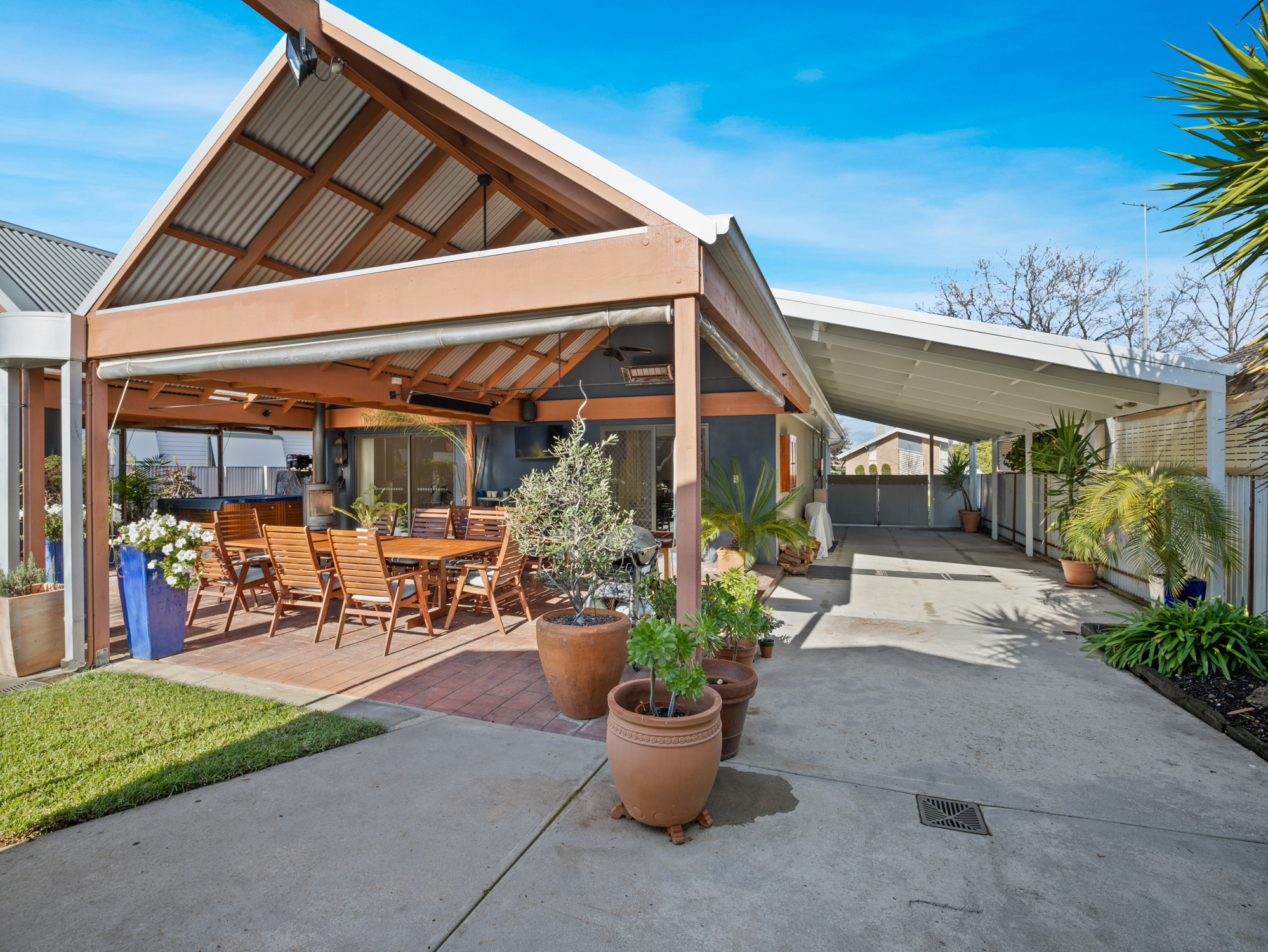 A detached and refurbished one bedroom bungalow with its own smart bathroom and study comes with reverse cycle air con. An extensive covered and paved outdoor living area with efficient gas, electric and solid fuel heaters, plus roll up blinds and ceiling fans, links with a double length secure carport providing in total a huge covered area.