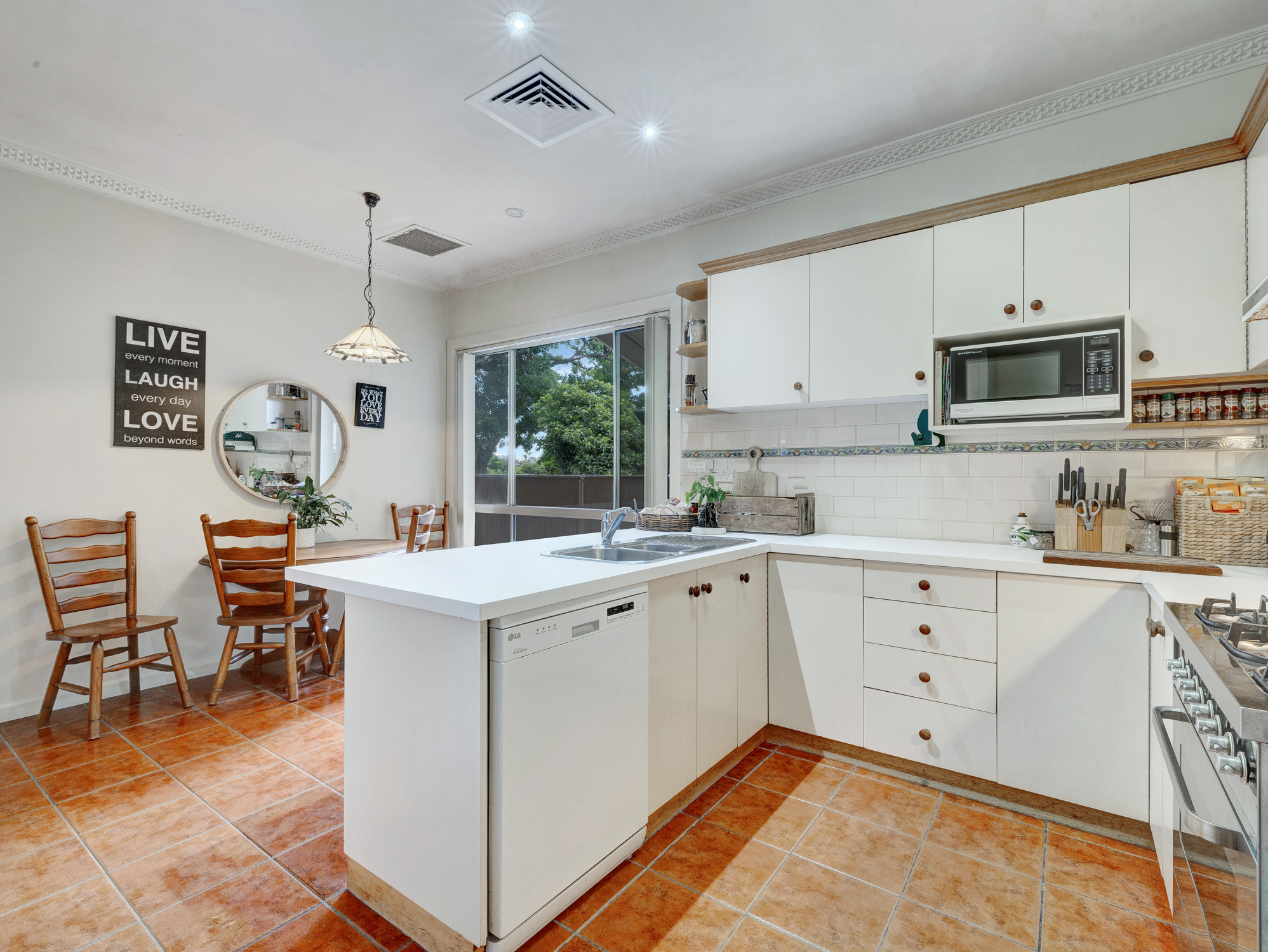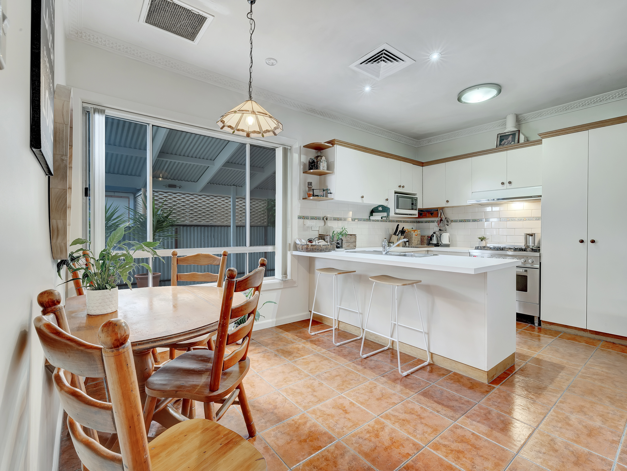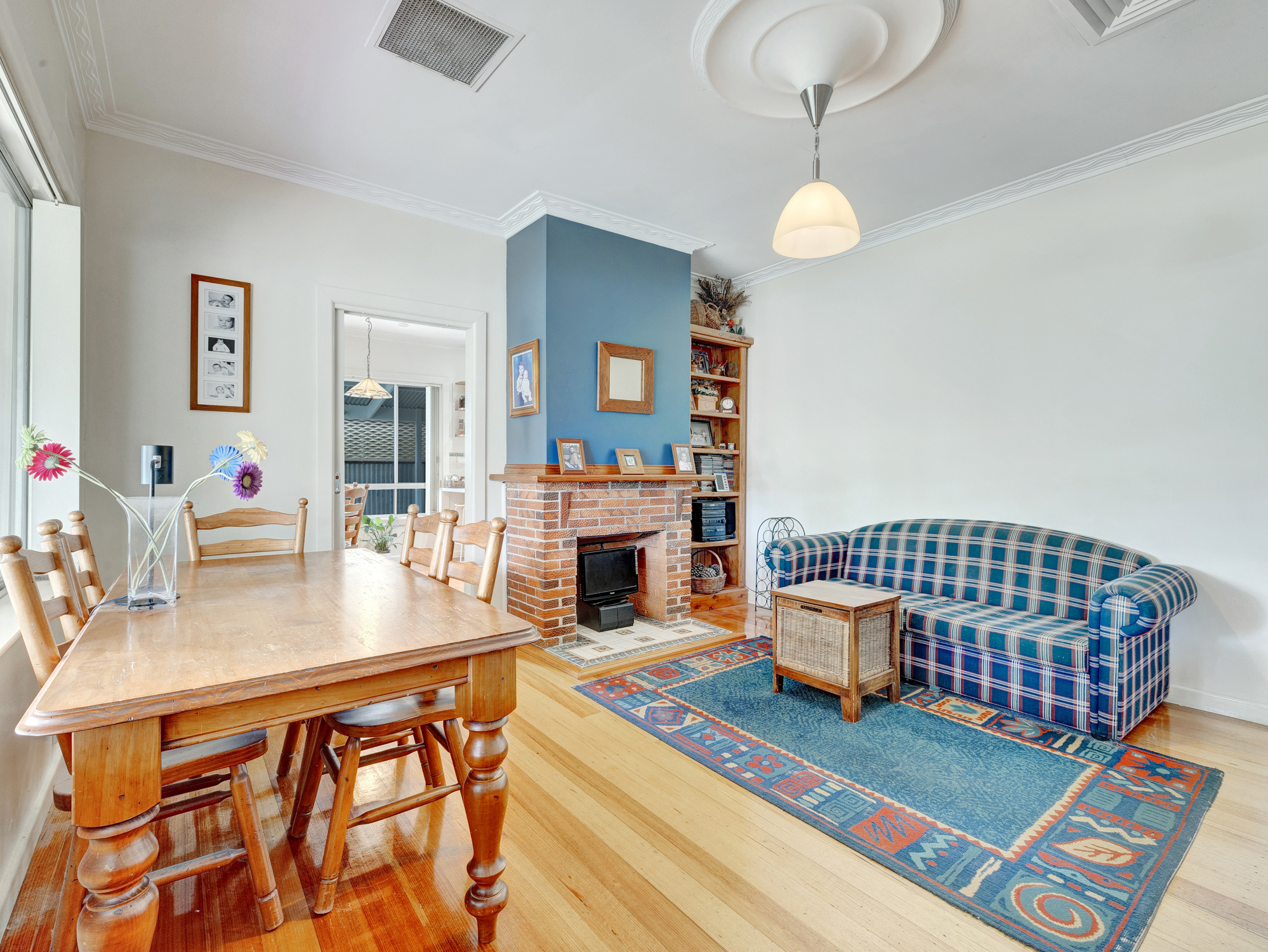 A traditional front veranda giving the home an appealing and welcoming street presence. Comfortable living was the focus of its extensive refurbishment which included a fully ducted, refrigerated heating/cooling system whilst restumping provided the foundation for a mix of warm polished timber and quarry tile floor finishes.