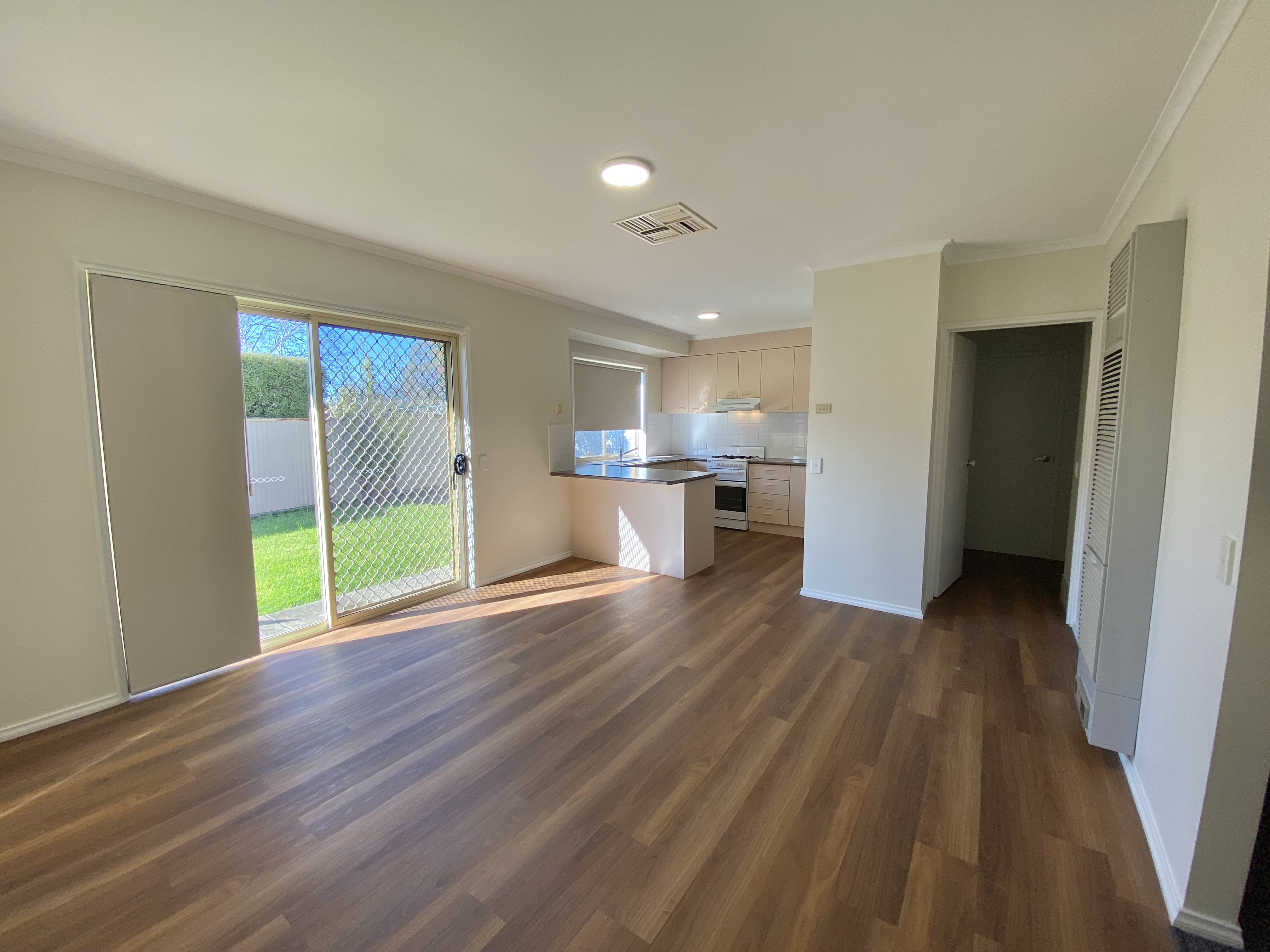 Open plan kitchen and dining area with a separate formal front lounge room. The kitchen includes gas cooking, plenty of cupboard space and pantry.