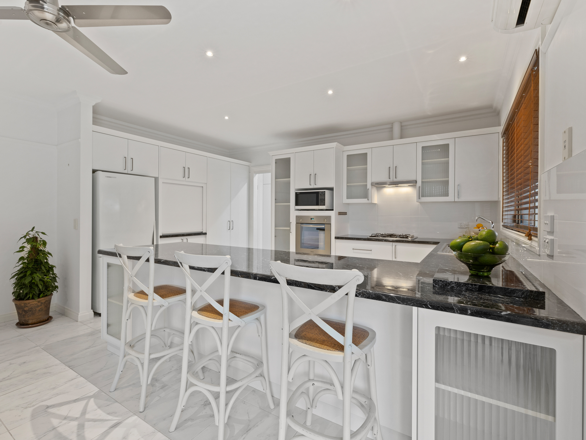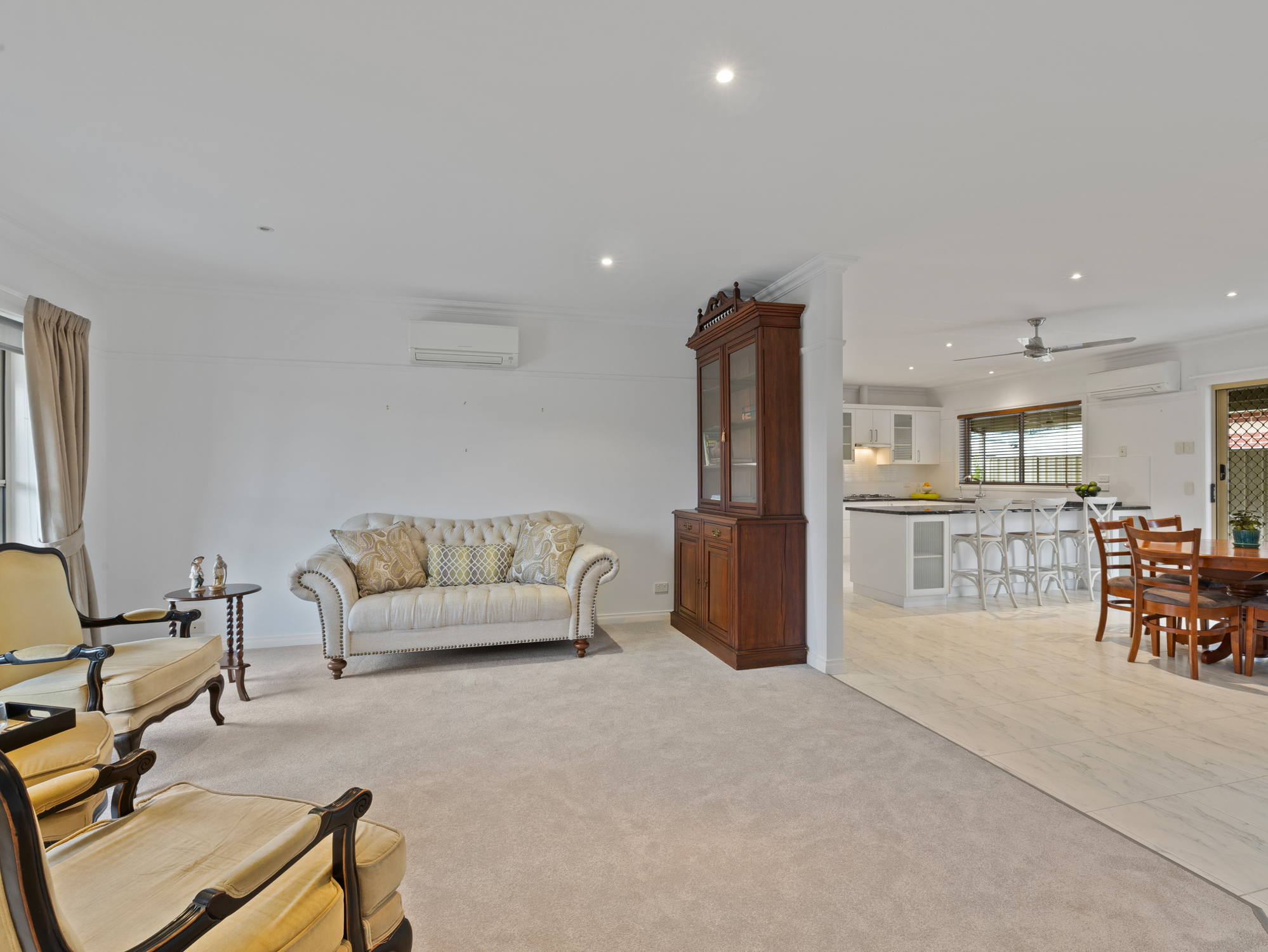 Fixtures and fittings include two split air-con units, multiple ceiling fans, gas cook-top, wall oven, dishwasher, instant gas hot water system and ducted vac system. Storage and general cupboard space is excellent with a remote door double garage and a secure covered outside living area with ceiling fan.