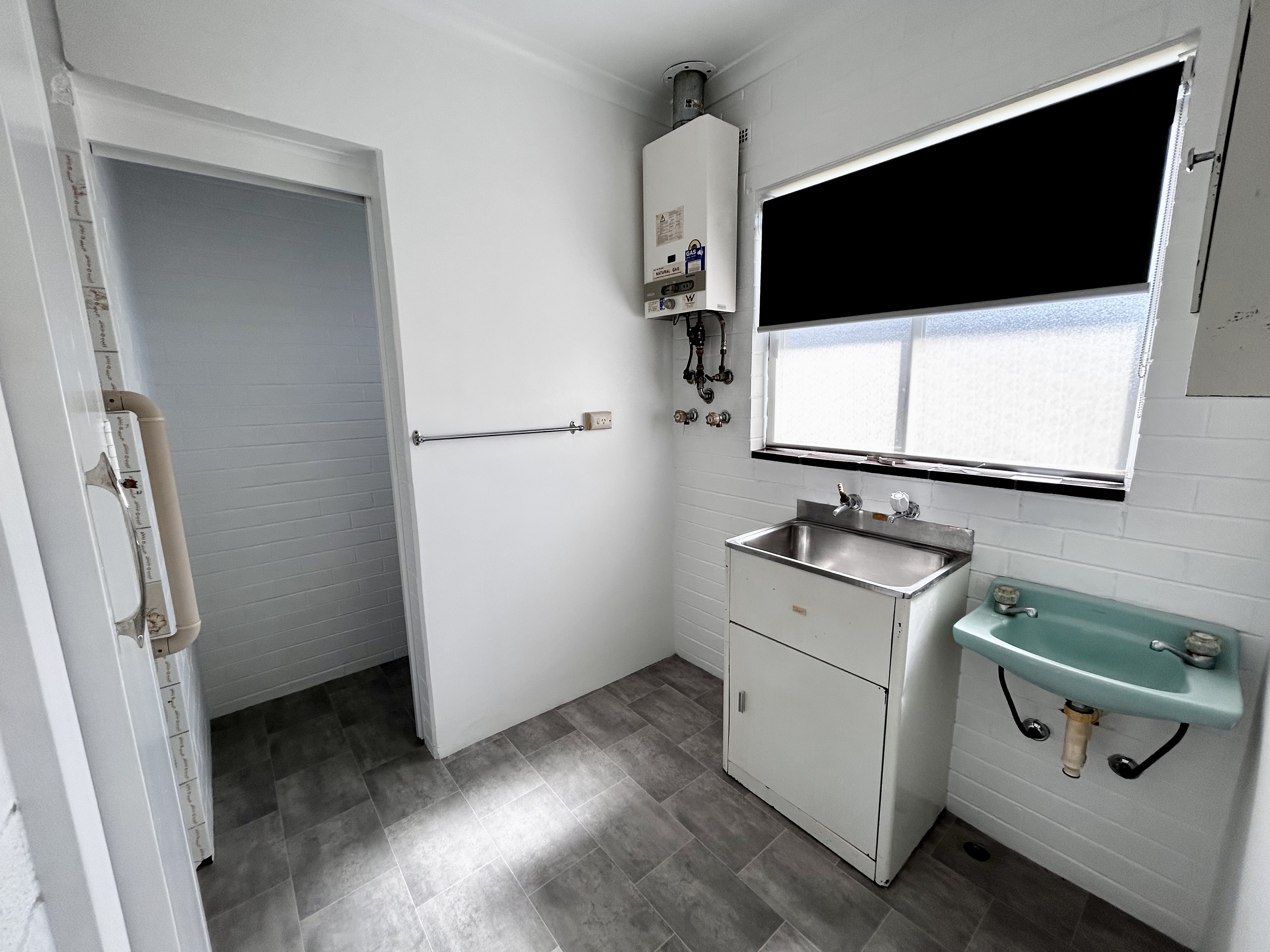 - Combined bathroom/laundry.