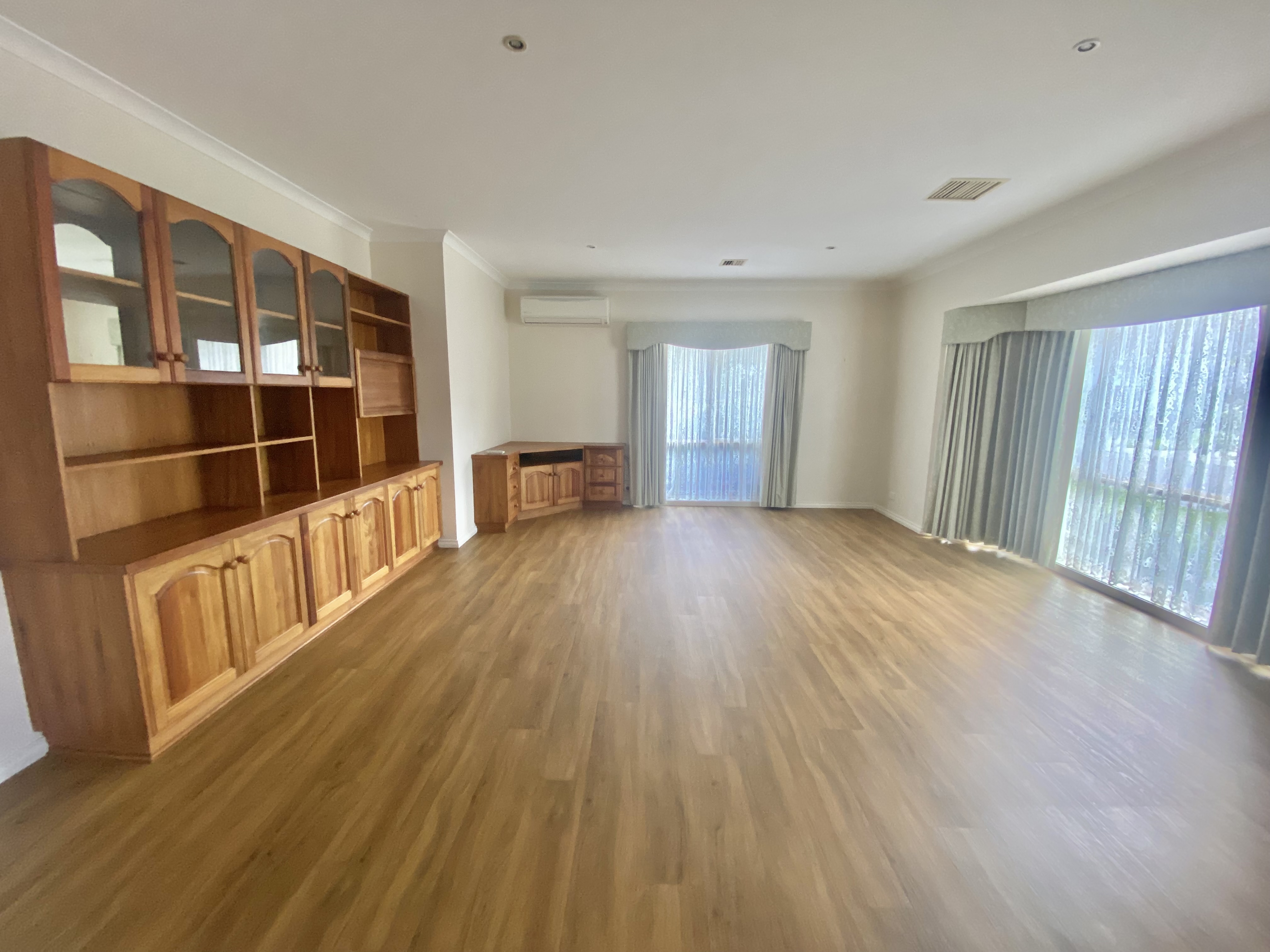 Open plan living/dining with ducted evaporative cooling and ducted gas heating for all year round comfort. There is also an added split system in the lounge area and an extra one in the master bedroom.