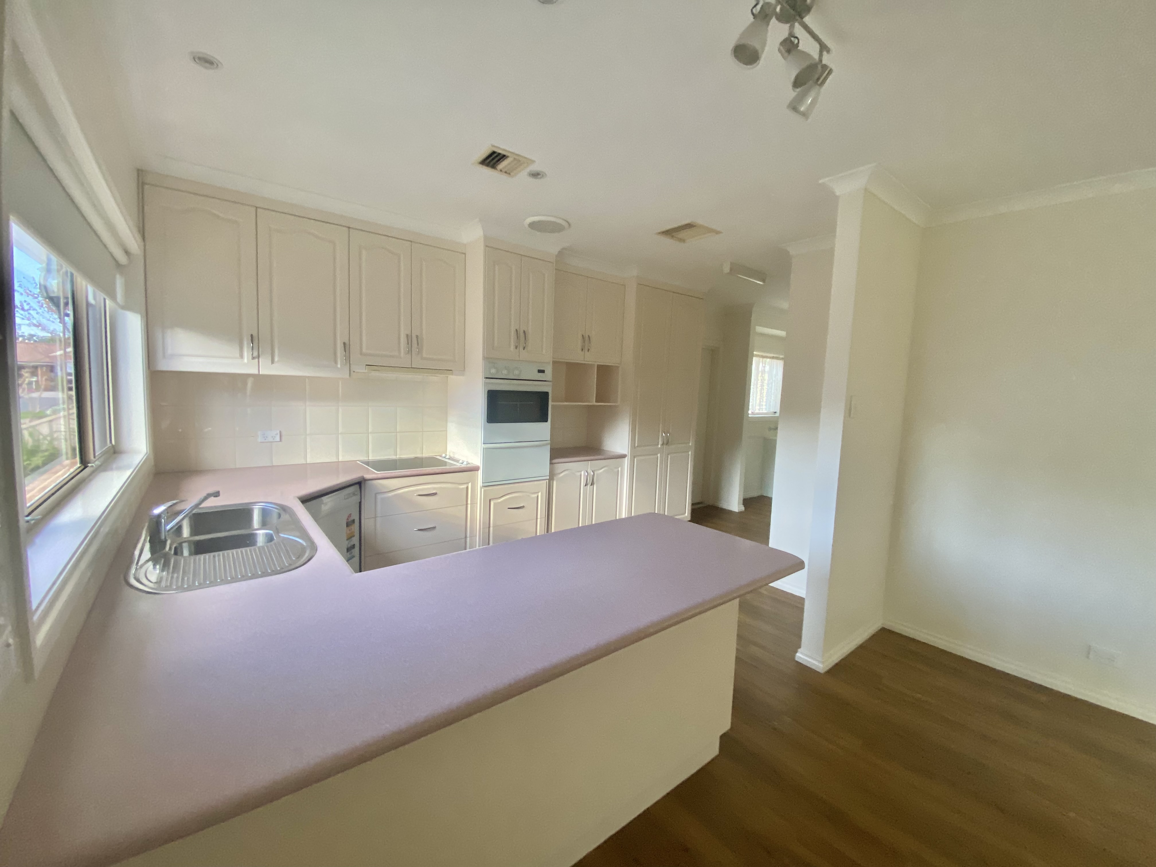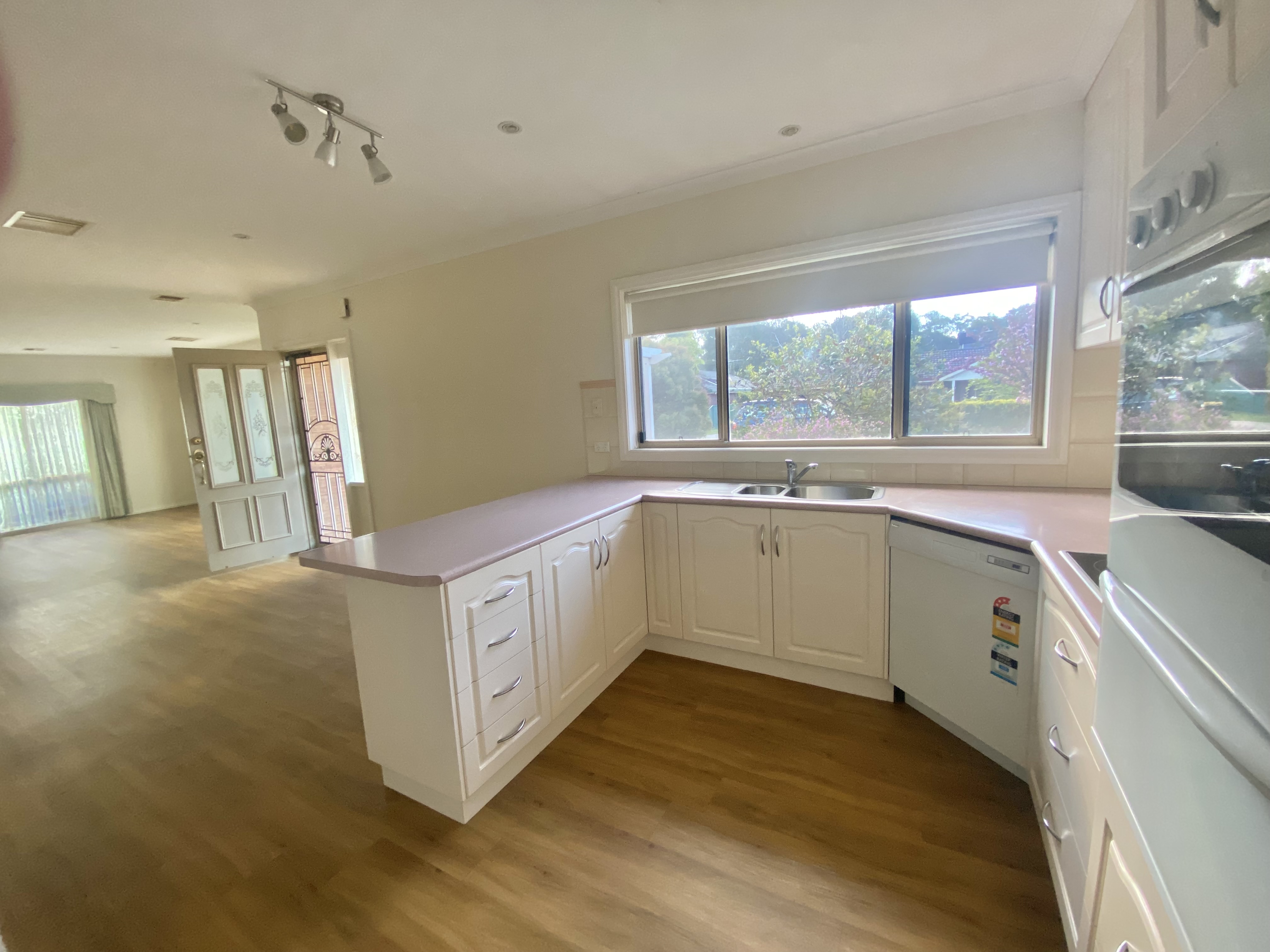 Kitchen comprising of electric cooking, wall oven plus dishwasher complimented with plenty of storage and a convenient breakfast bar, making meal preparation a breeze.