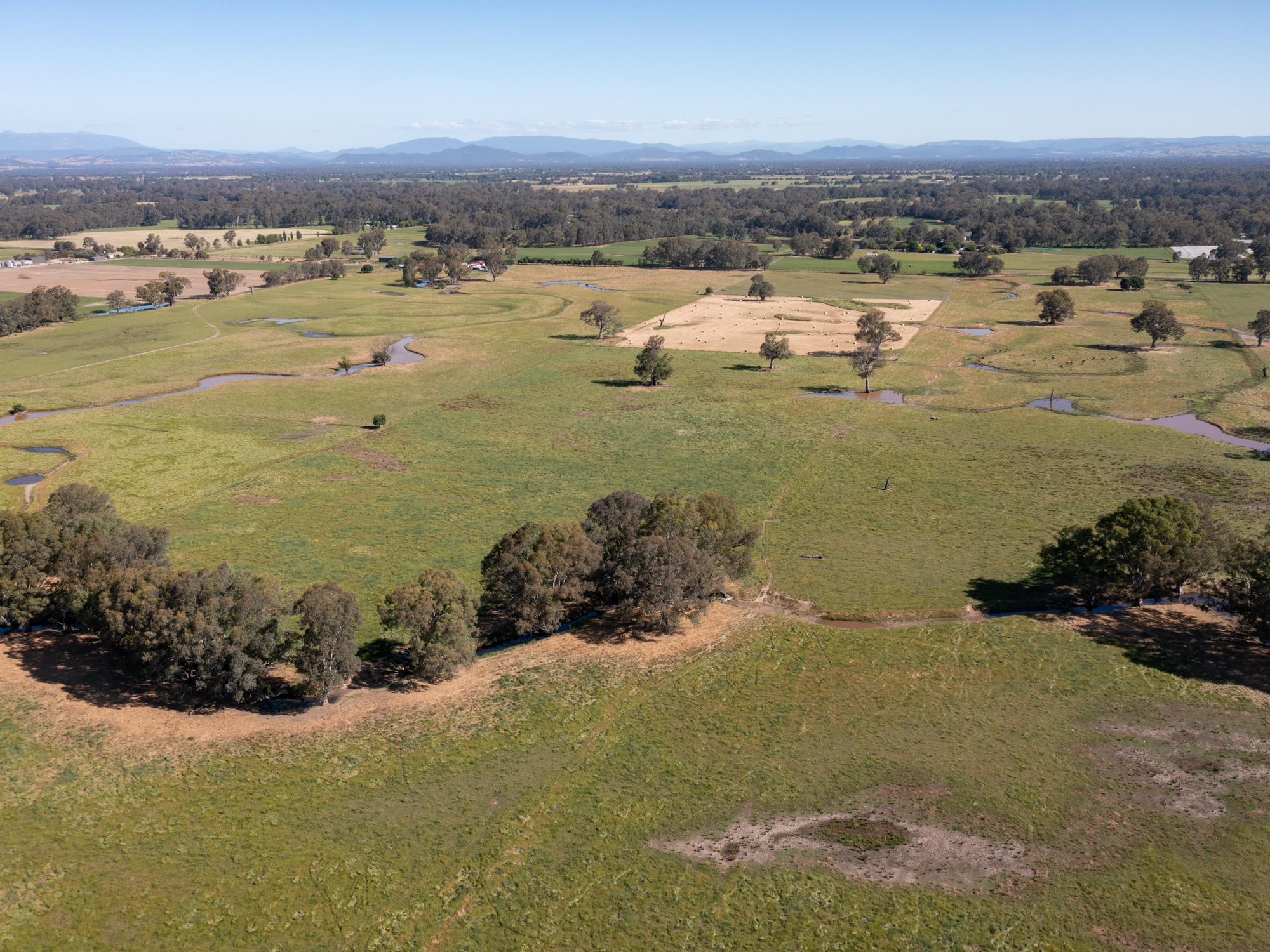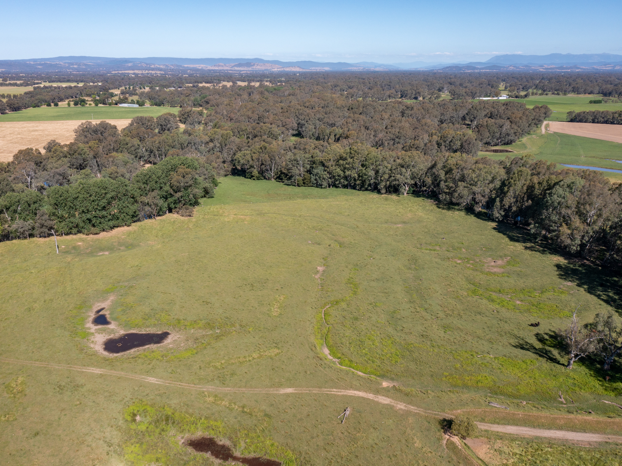 Four crown lots, contained in two titles (147 acres on the east with the dwelling and sheds plus 120.7 acres on the west side) make up the grazing property which lies just 8.5km east of Wangaratta.