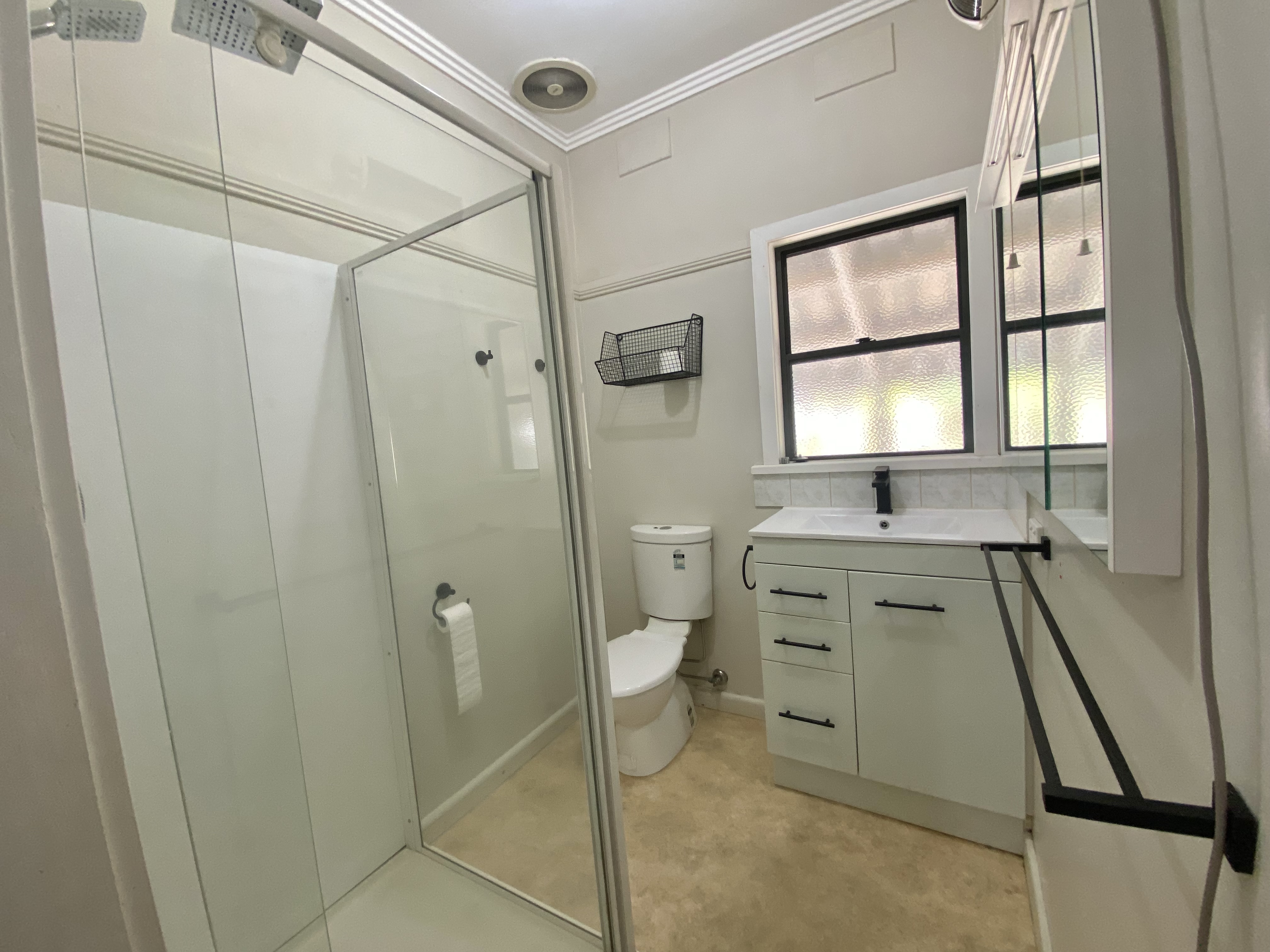 The central modern bathroom caters to all your daily needs, making your daily routines a breeze. There is also a second outside separate toilet and outside laundry room with plenty of cupboard space and storage.