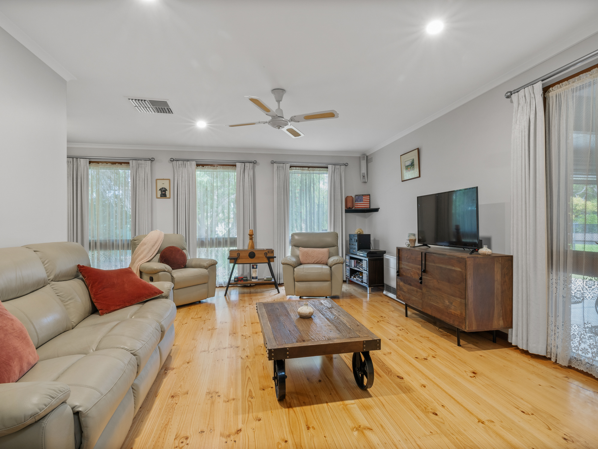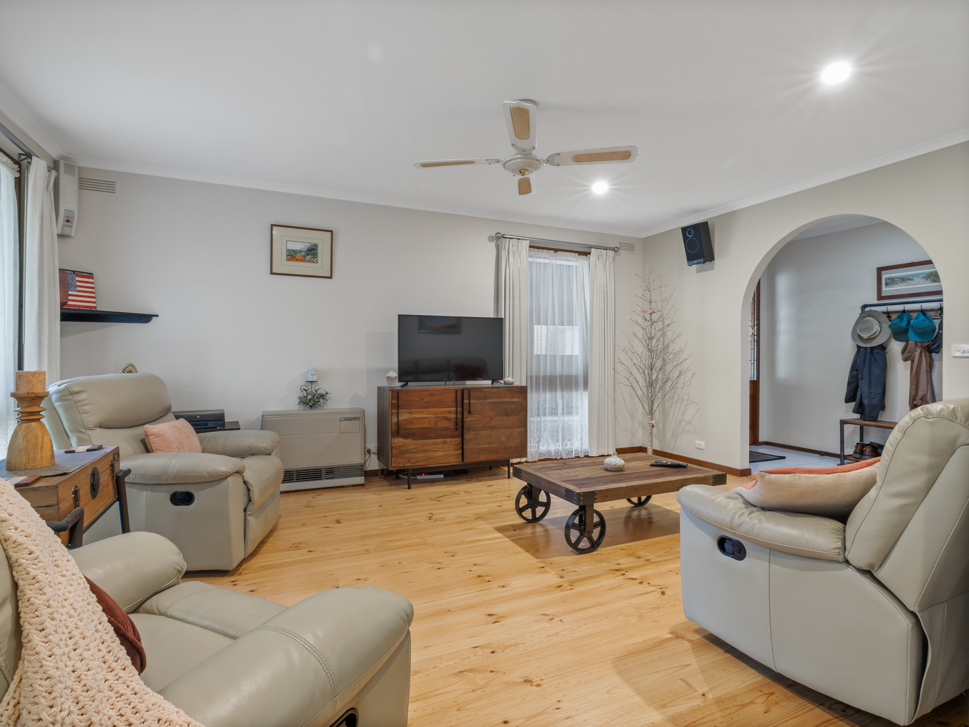 This beautifully presented and refurbished home with fresh polished floorboards, newly installed ducted in-floor gas heating, along with ducted evaporative air conditioning plus a split system ensuring comfort year round.