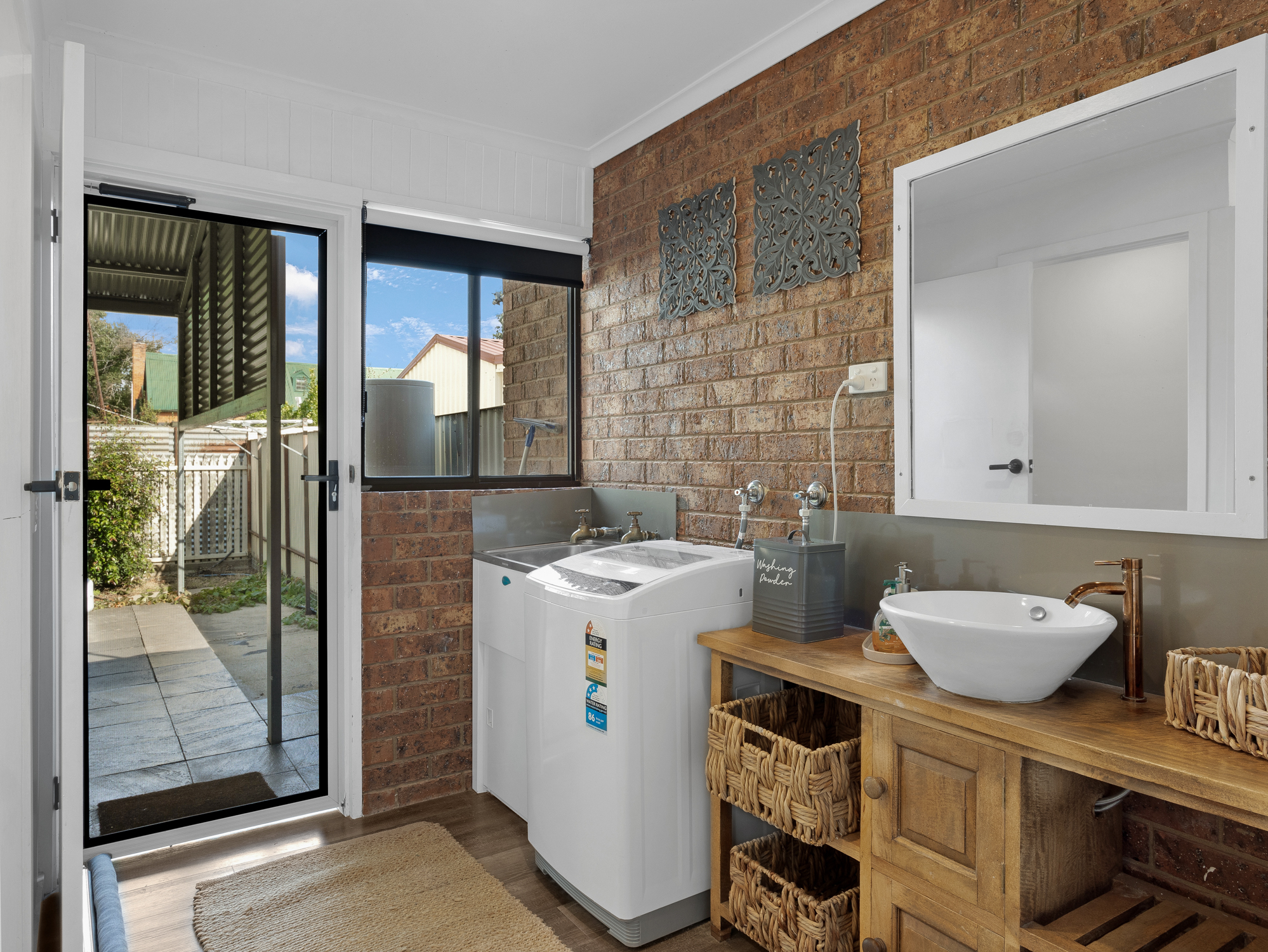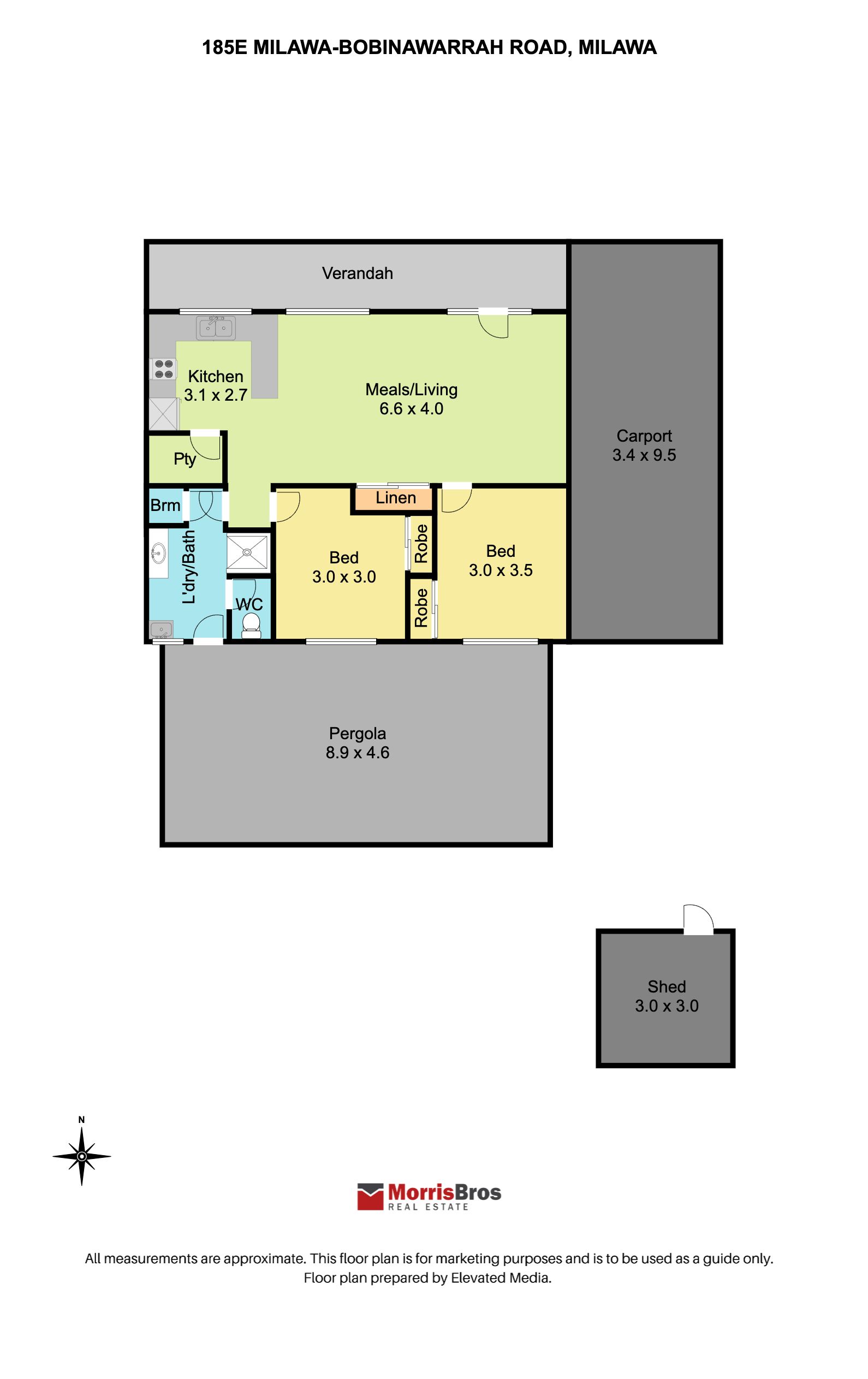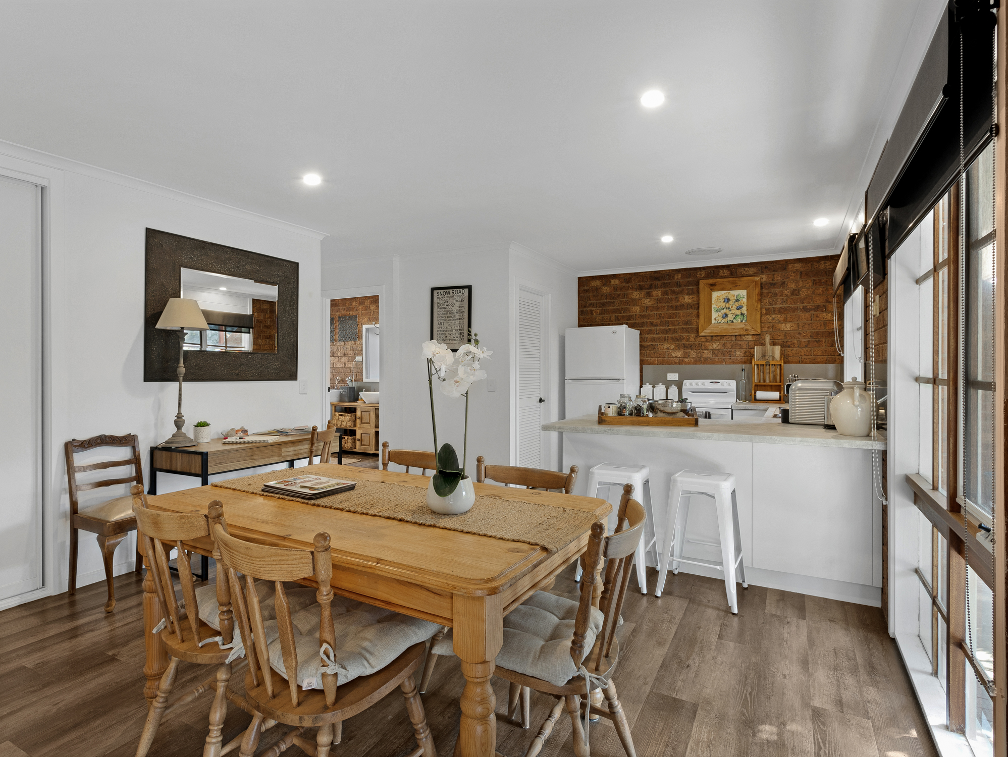 185E Milawa-Bobinawarrah Road emphasises style and comfort with two bedrooms both with built-in robes and ceiling fans, a cleverly designed modern kitchen with electric cooking and dishwasher. With natural light throughout and large split system to suit all climatic conditions.