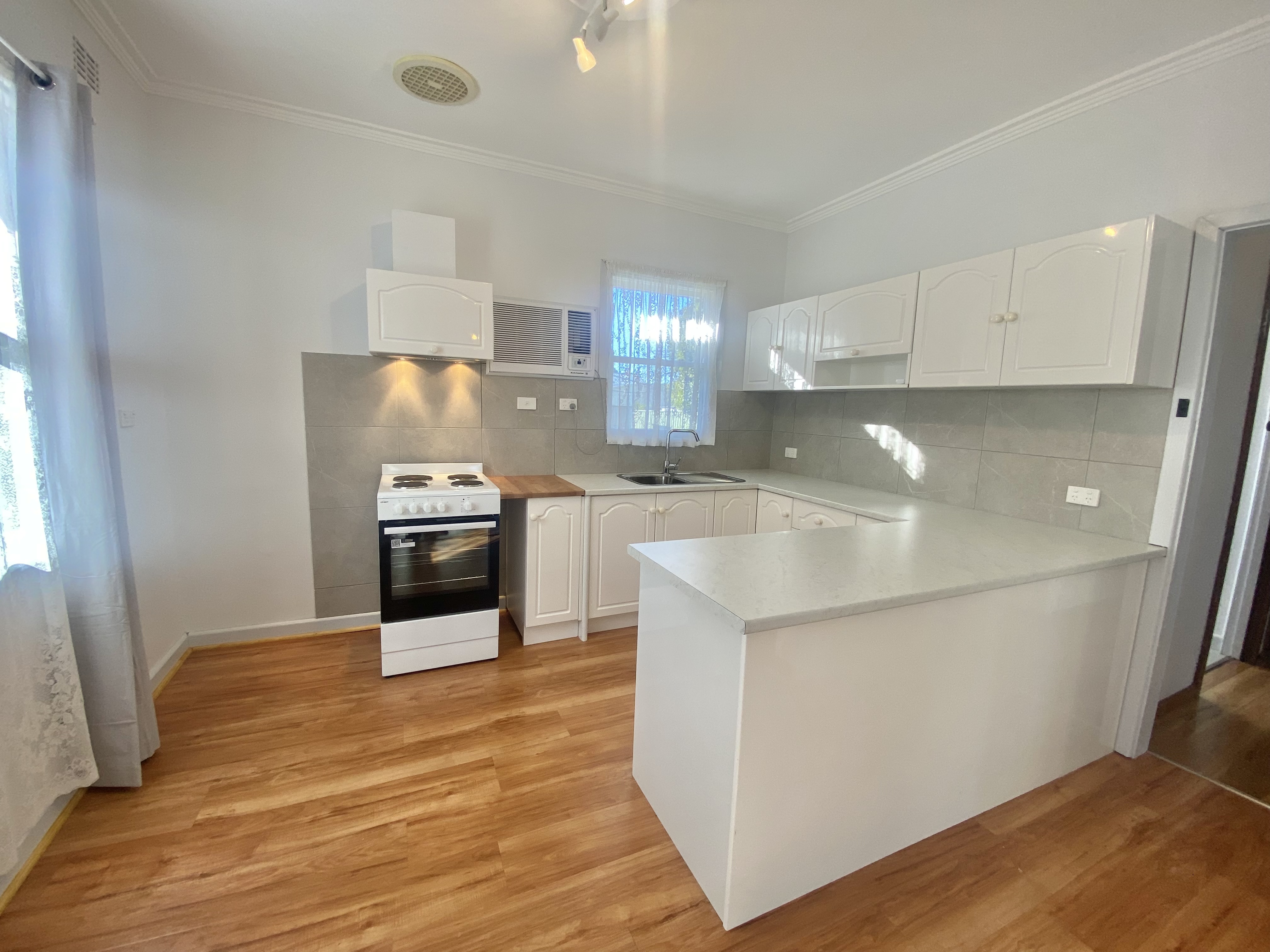 The house features a well-designed layout, providing ample space for relaxation and entertainment. The open-plan living area is filled with natural light, creating a warm and inviting atmosphere complimented with reverse cycle heating and cooling. The kitchen is equipped with electric cooking, amble bench and cupboard space.