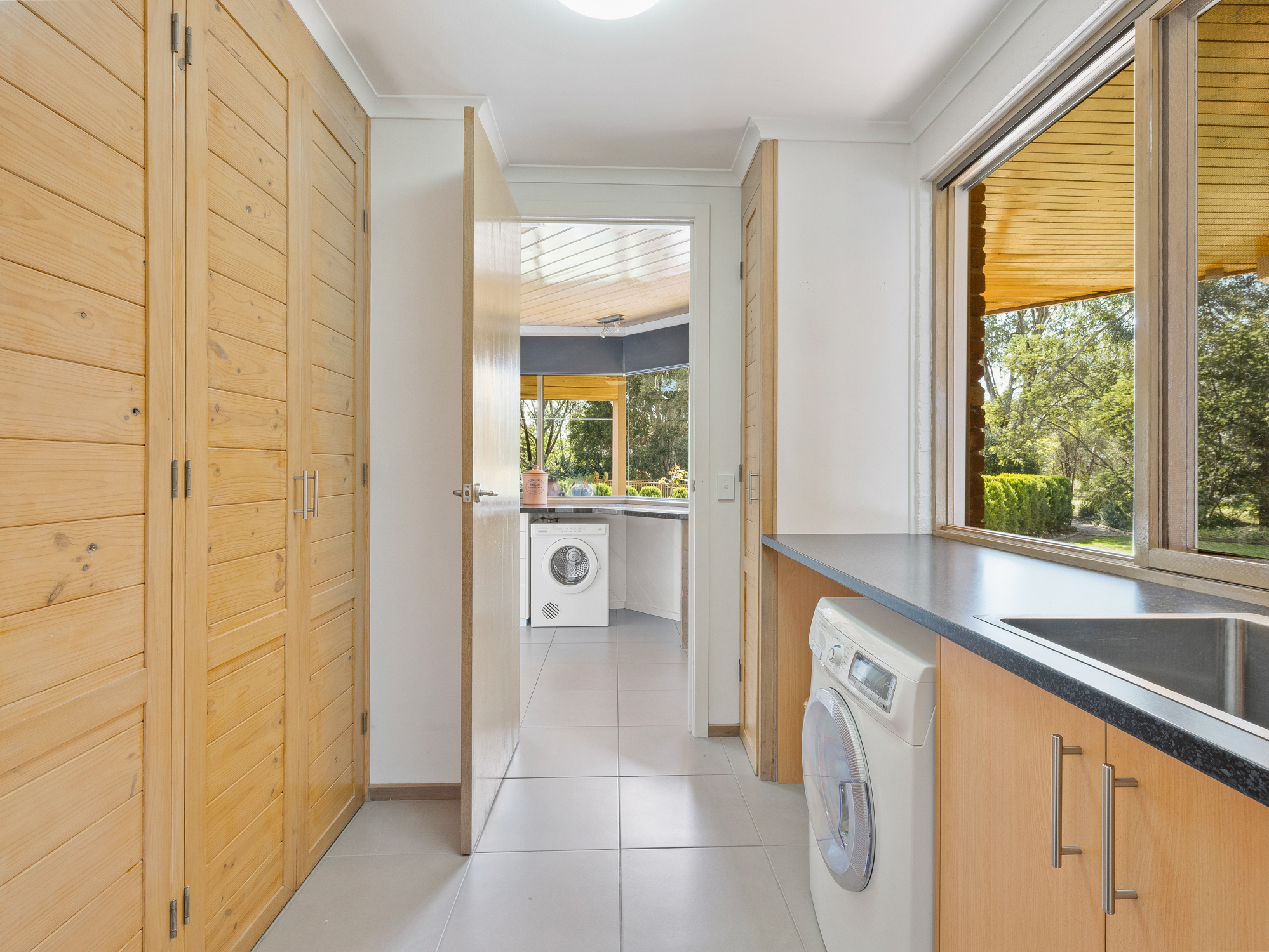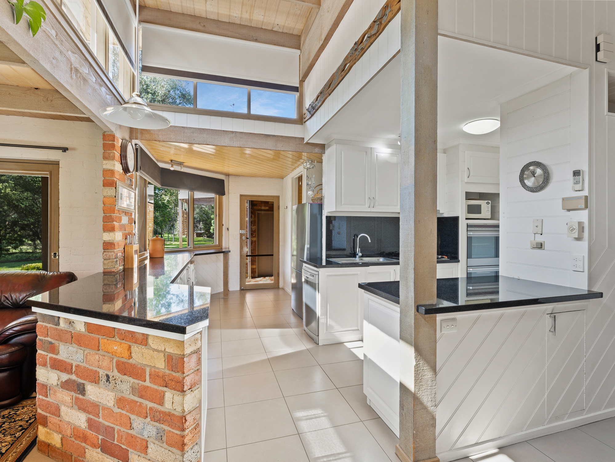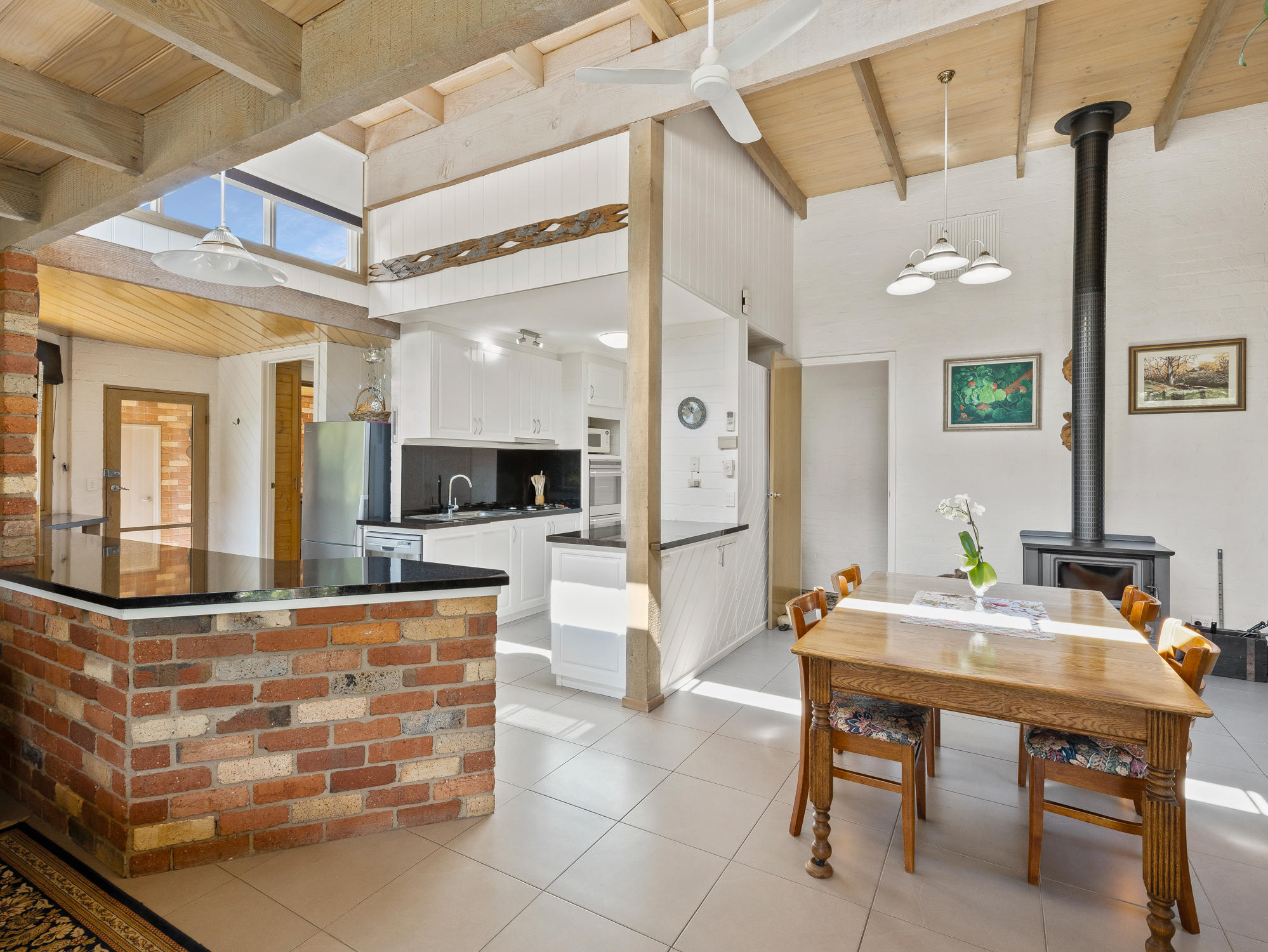 The home is serviced by split system, multiple ceiling fans and electric heating. Vaulted pine lined ceilings with exposed beams to the kitchen/family room areas achieve a marvellous accentuation of the space and light in the home.