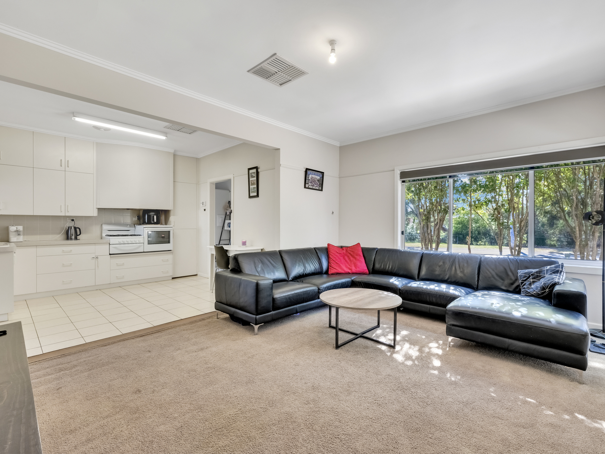 Step inside and be greeted by a light-filled living area that is perfect for entertaining family and friends. The open-plan layout seamlessly connects the living, dining, and kitchen areas, creating a warm and inviting atmosphere. The well-appointed kitchen features gas cooking and plenty of storage space, making cooking a breeze.