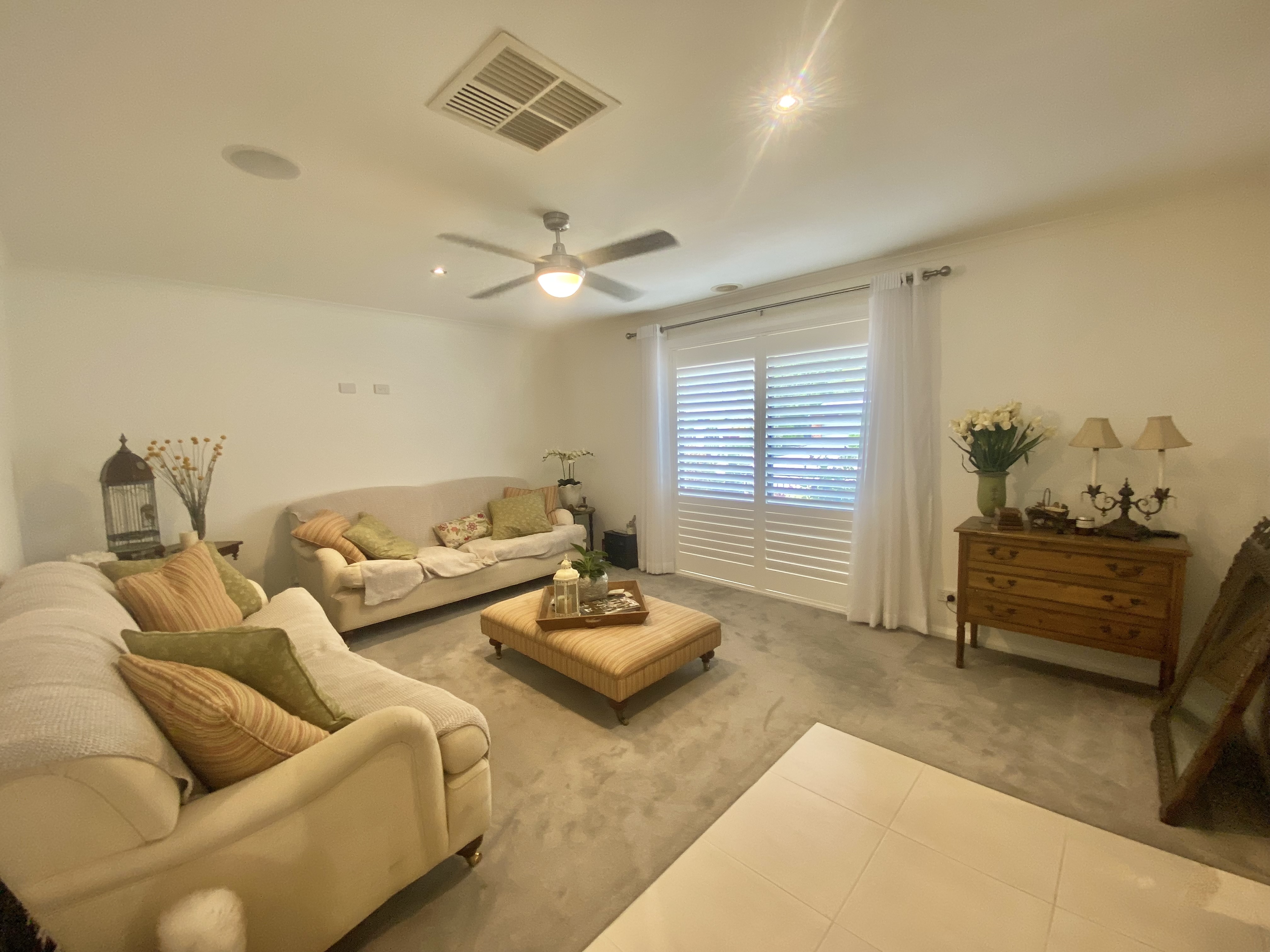 The home features ducted gas heating and ducted evaporative air conditioning through-out for year round comfort, There are two living areas, on entry you will be greeted with a formal lounge room along with a separate study including a built-in wardrobe. The open plan living and dining area flows out to a large under cover enclosed outdoor entertaining area with a ceiling fan to enjoy anytime of the year.