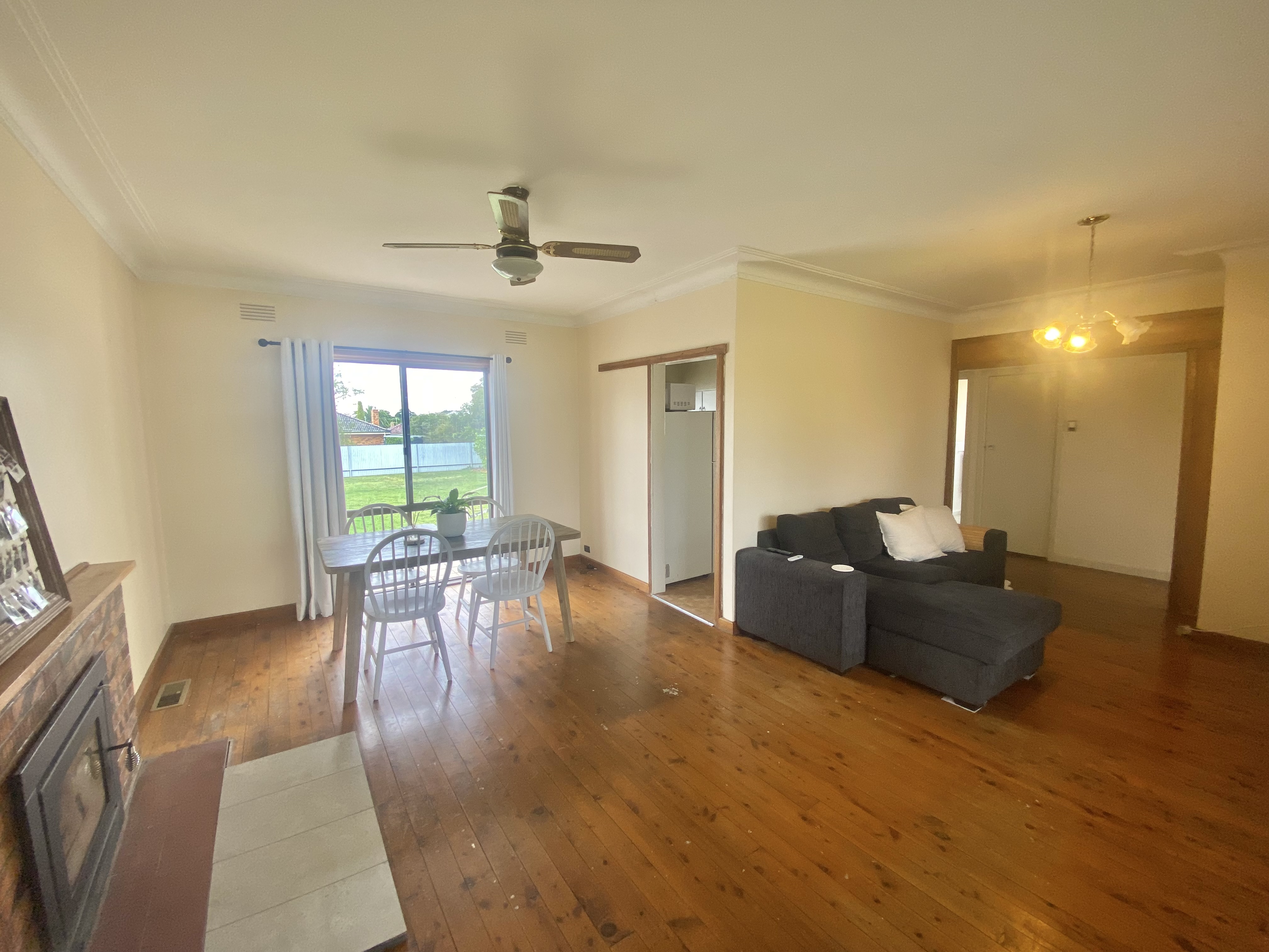 - Spacious front formal living area with a wood heater