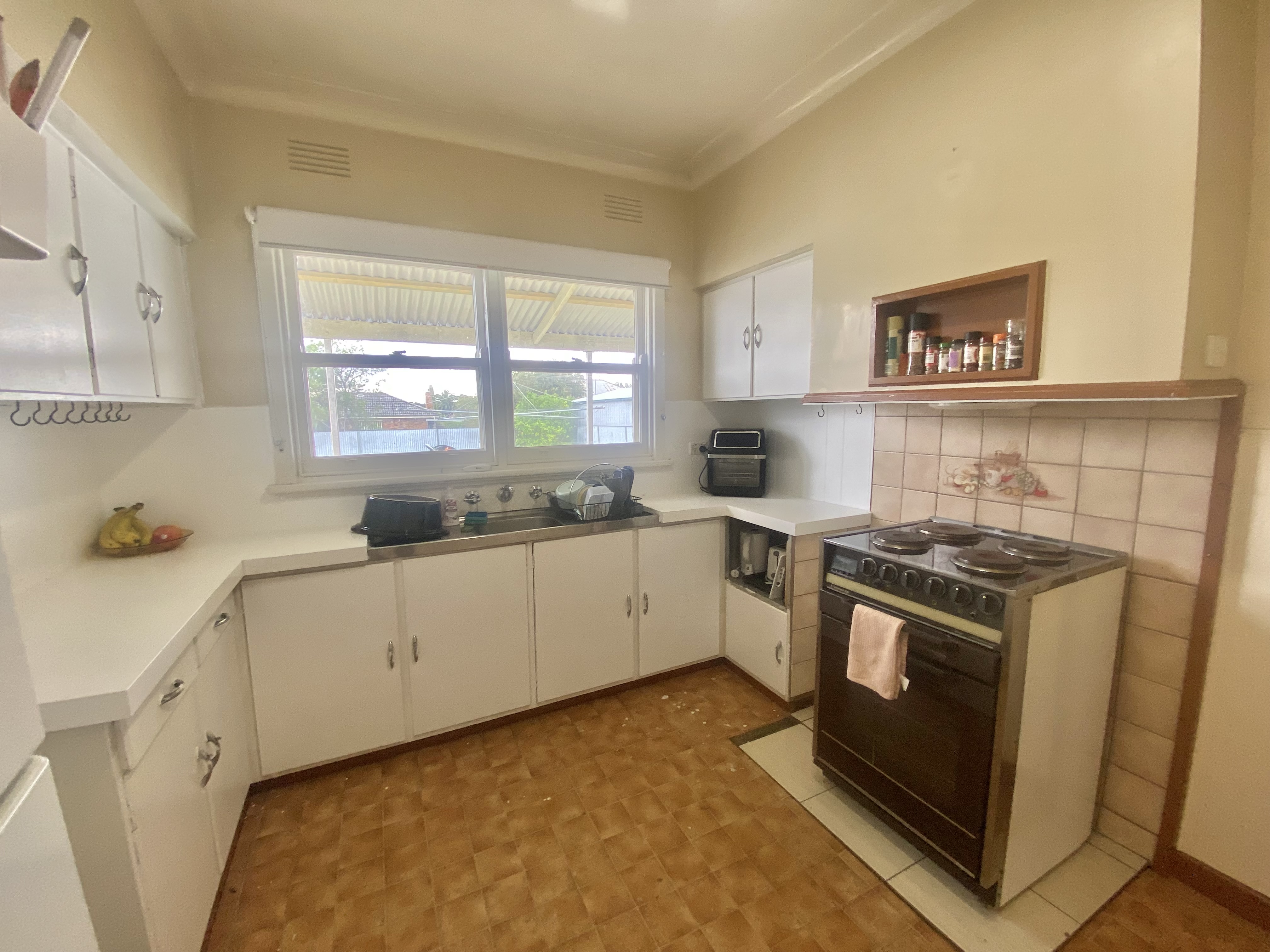 - Kitchen with good cupboard space and electric cooking