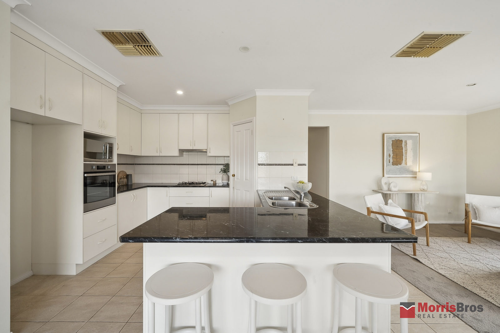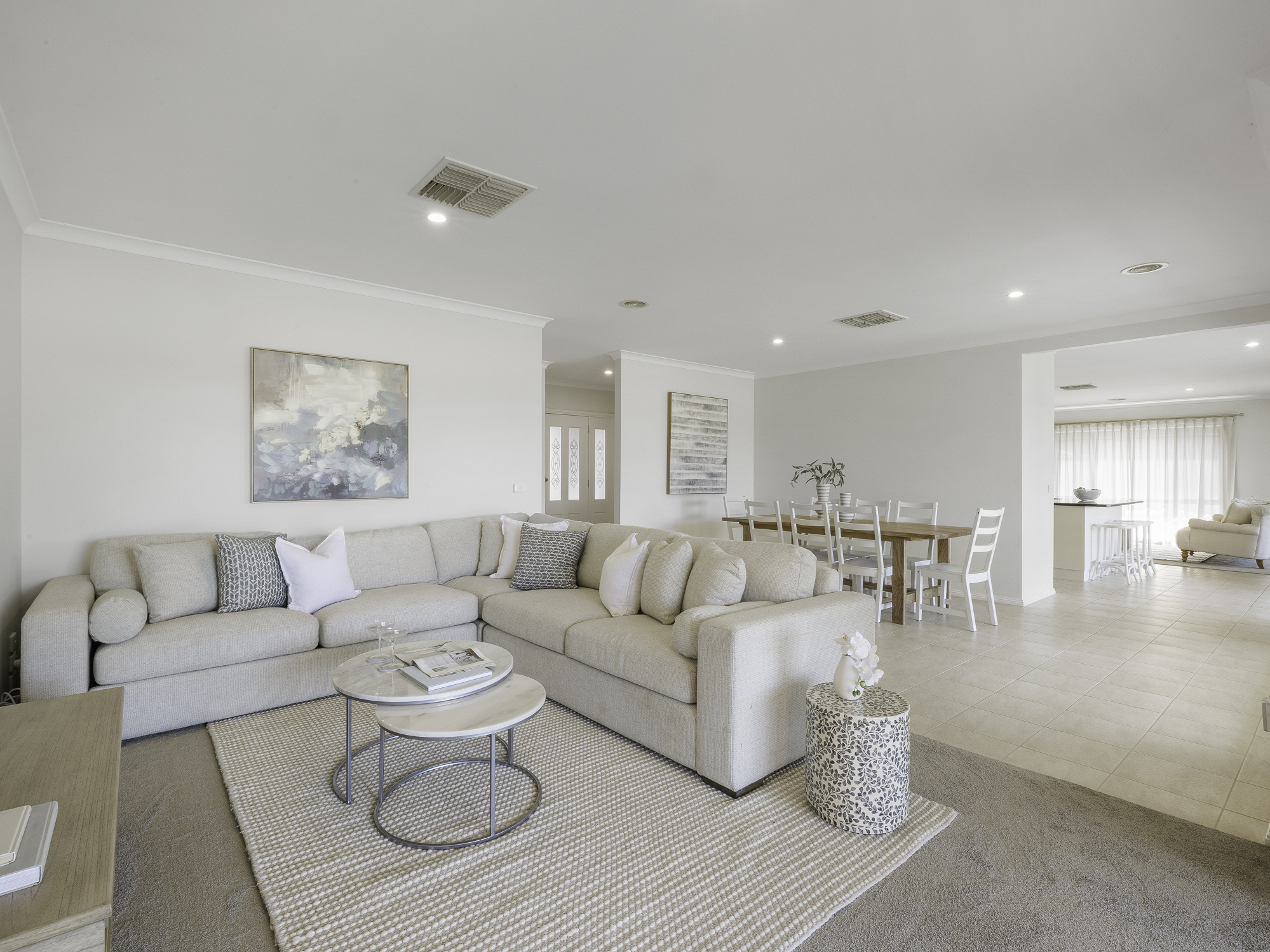 Features of the home include separate vanity area, main bathroom with twin basins, ducted gas heating, ducted evap cooling, gas hot water system and walk-in pantry. The two car, main roof garage has internal access and a powered roller door.