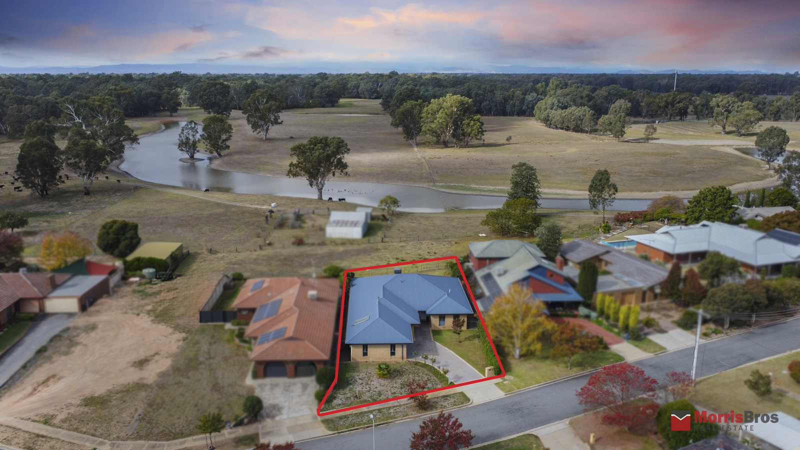 The modern and spacious four bedroom, two bathroom home enjoys marvellous panoramic views across the water filled lagoon which sits below the high 820m2 (approx.) site in Caraselle Avenue. In the distance across the river flats is the tree lined King River.