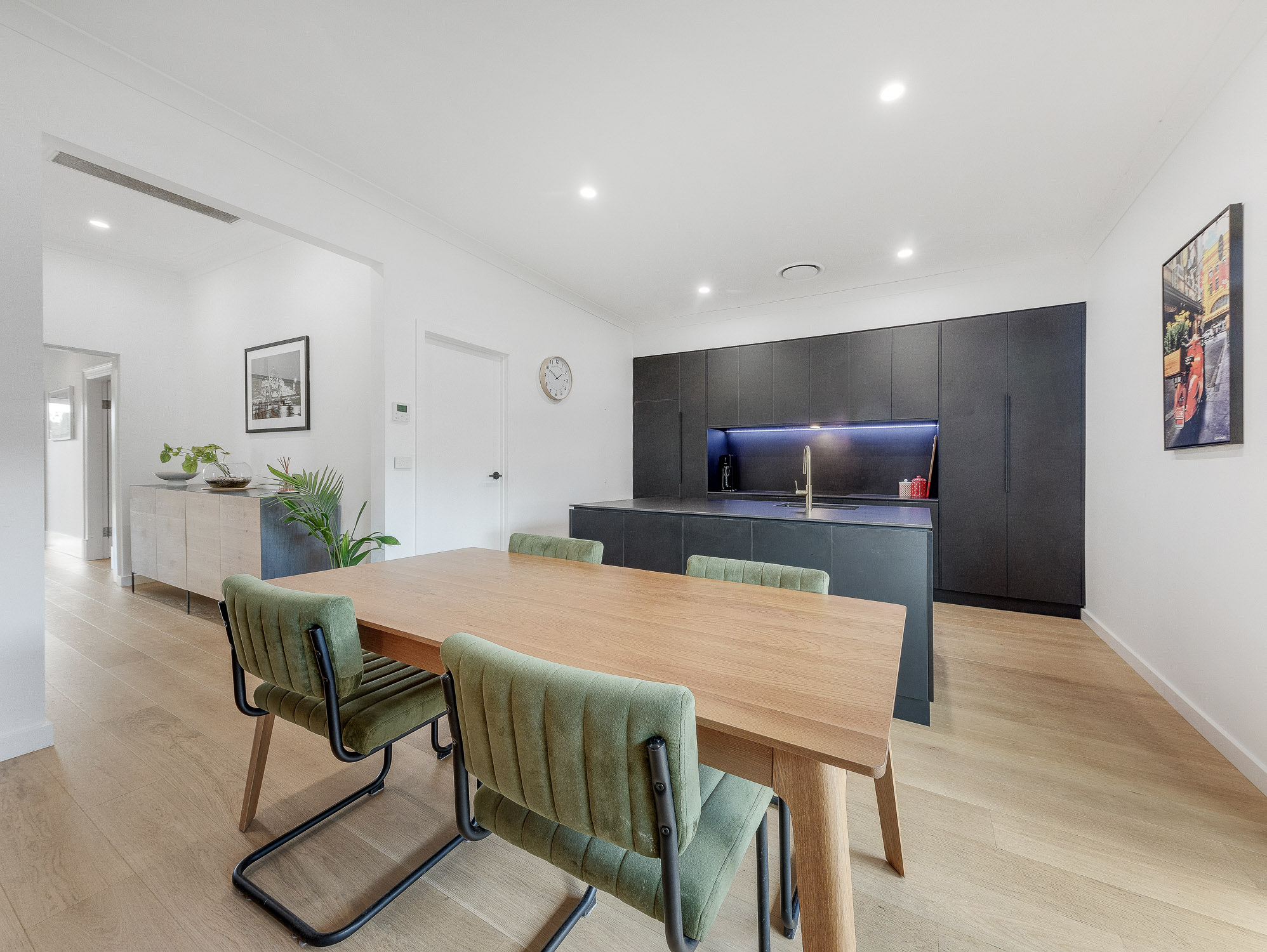 The main bedroom of the three has an ensuite and walk-in robe with built-in robes to the two other bedrooms. Ducted reverse cycle heating and cooling together with an excellent kitchen including a double draw dishwasher, electric cooking, wall oven and built-in fridge/freezer provide the modern inclusions.