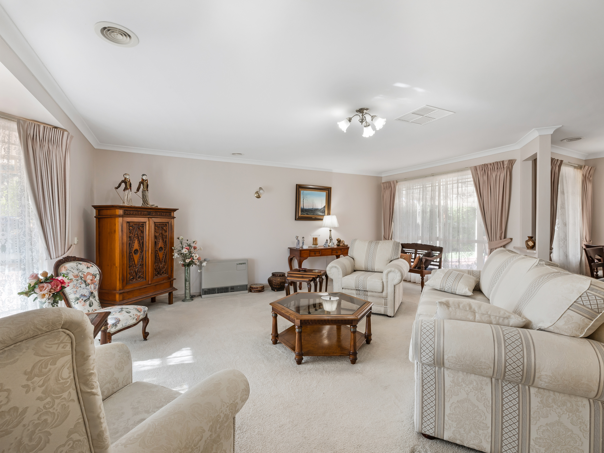 5 Barkoo maximises natural light with a seamless flow from indoor to outdoor living. The alfresco creates the ideal space for entertaining whilst overlooking the garden. Maintaining comfort with in the home ducted Gas heating and ducted evaporative cooling with gas space heater in the lounge. The refurbished kitchen is designed with functionality in mind as well as stylish ceaser stone bench tops with open plan living and separate dining plus separate lounge providing space for everyone.