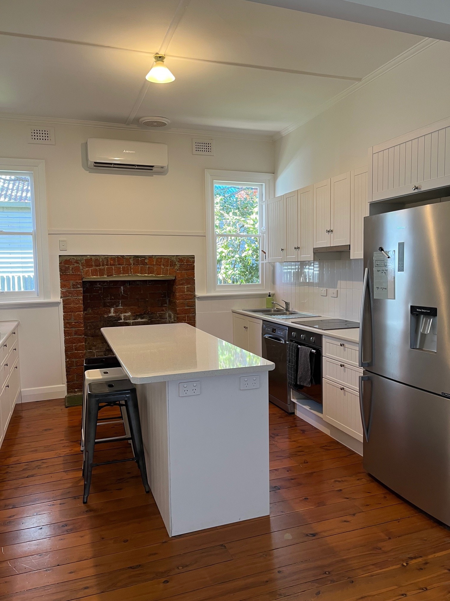 Featuring polished timber floors throughout the living areas and near-new cosy wool carpets in the bedrooms, this home blends warmth and modern functionality. The well-appointed kitchen includes electric cooking and a dishwasher, while the main bathroom boasts a stunning claw foot bath and shower. A second bathroom with shower, toilet, and laundry adds extra convenience.