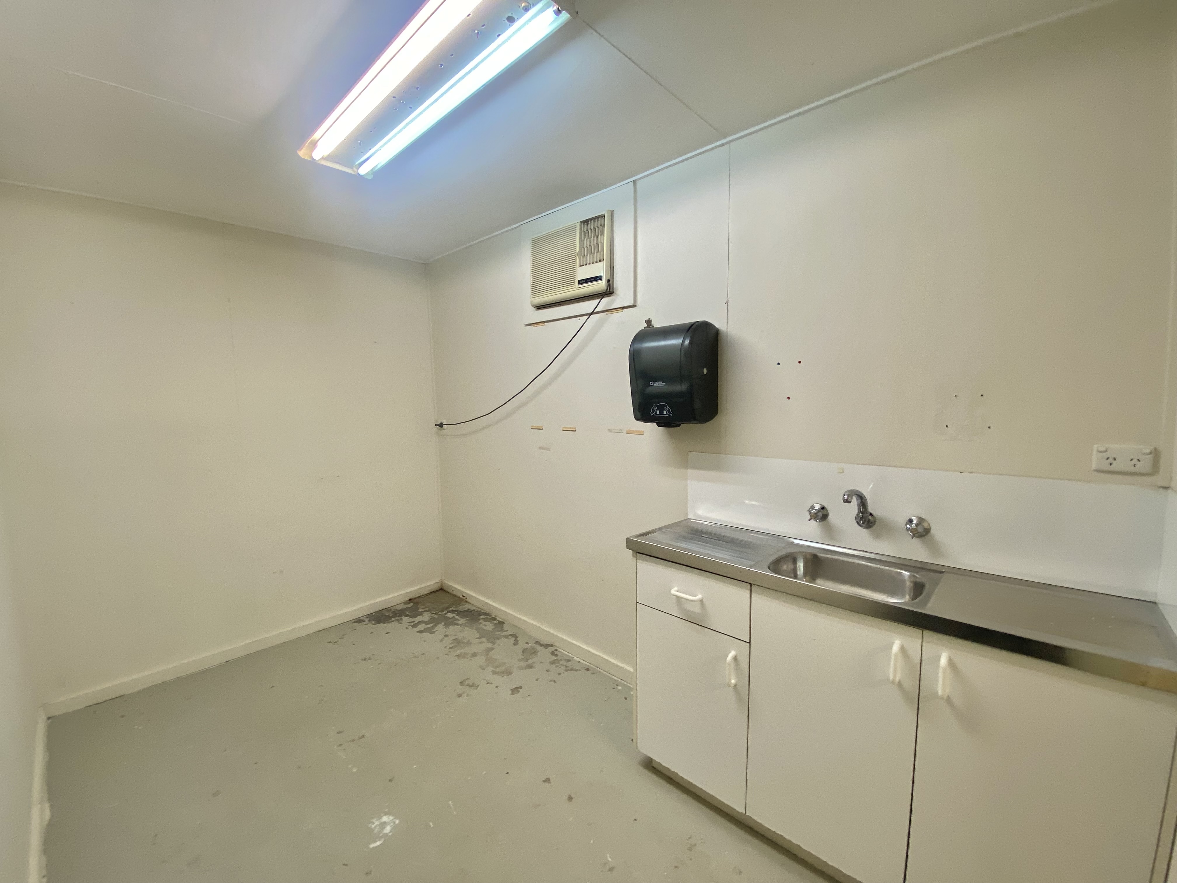 Inside, you'll find a compact office space with reverse cycle air conditioning, a kitchenette, and a separate toilet with wash station. Both hot and cold water are available on site, supporting a variety of operational needs.