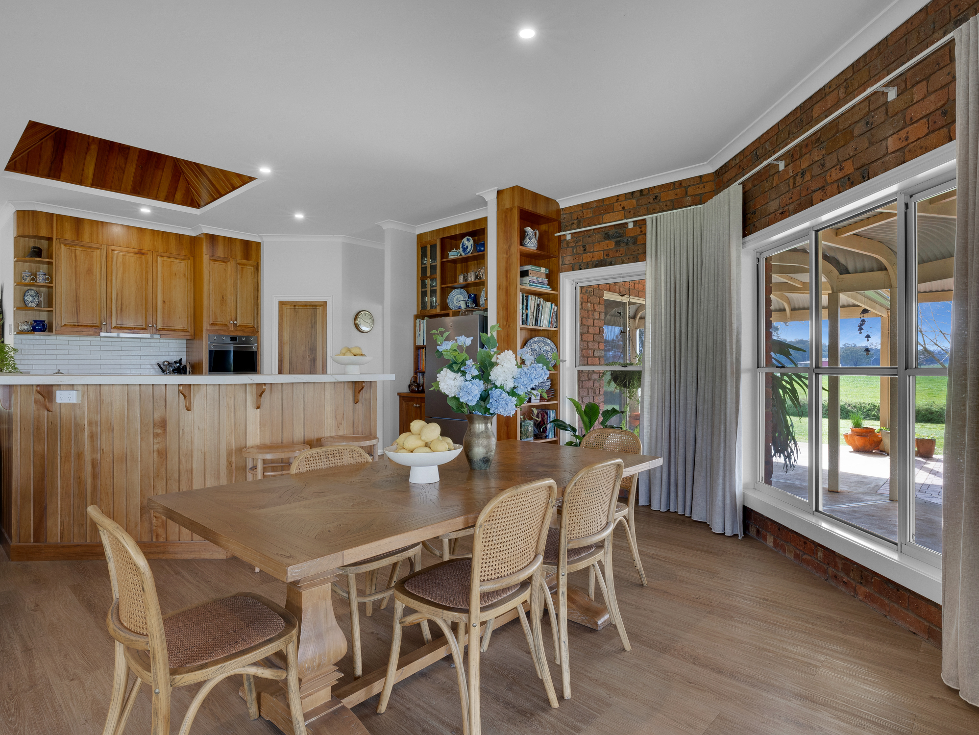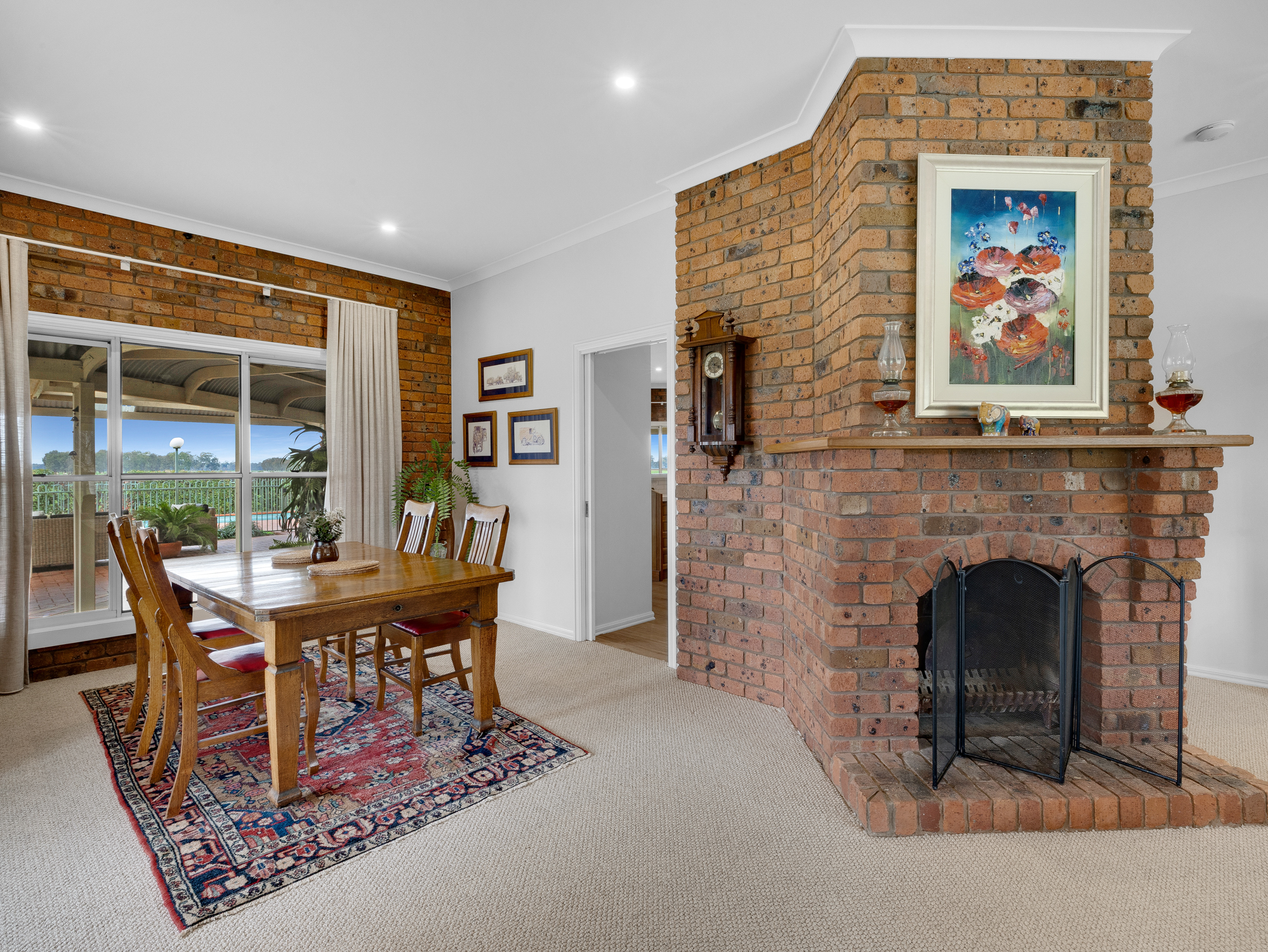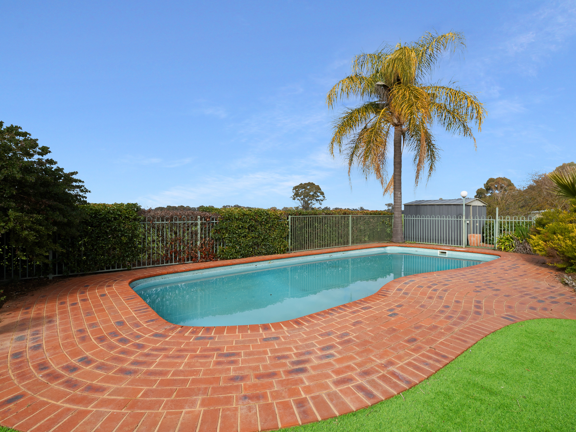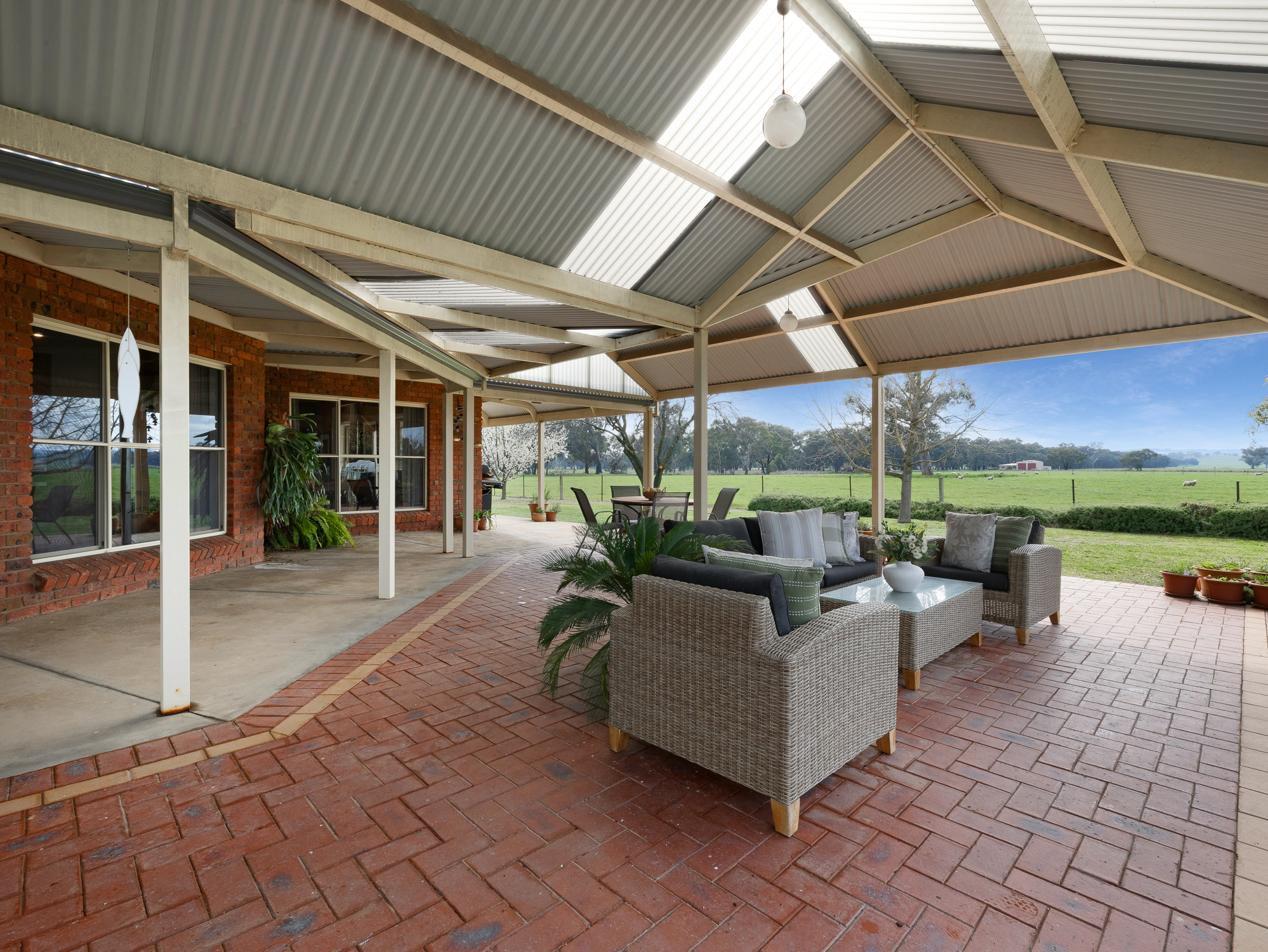 The four bedroom 32 year old brick and colorbond roofed ranch style homestead provides around 242 m2 of living area with wide bullnose verandahs on four sides plus a two car enclosed brick garage. All bedrooms have built-in robes whilst the master bedroom has a walk-in robe plus full en-suite. The main bathroom has a spa bath. There are two main living areas including a formal lounge with large open fireplace. The Tasmanian Blackwood kitchen/family room is the focal point of this spacious home and opens directly onto an extensive covered outdoor entertaining area with inground pool (solar heated, salt chlorinated and self cleaning). Other noted features of the home are high ceilings, bay windows, central vac system, evap cooling, multiple ceiling fans and a solid fuel space heater. The refurbished kitchen is equipped with a new gas cooktop, double electric wall oven, new dishwasher, porcelain benchtops and walk-in pantry. The property has an 8.5 kw solar array with a fast charge facility as well as Starlink for high speed internet.