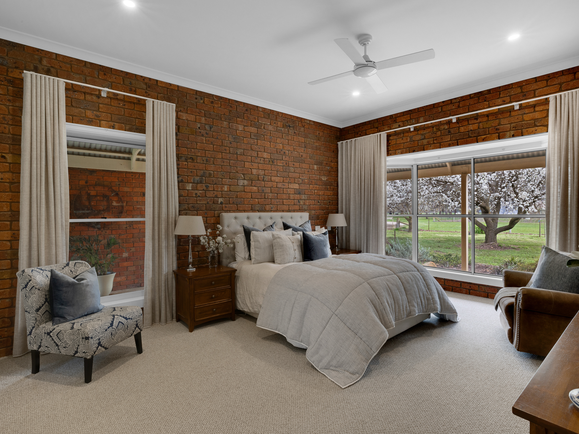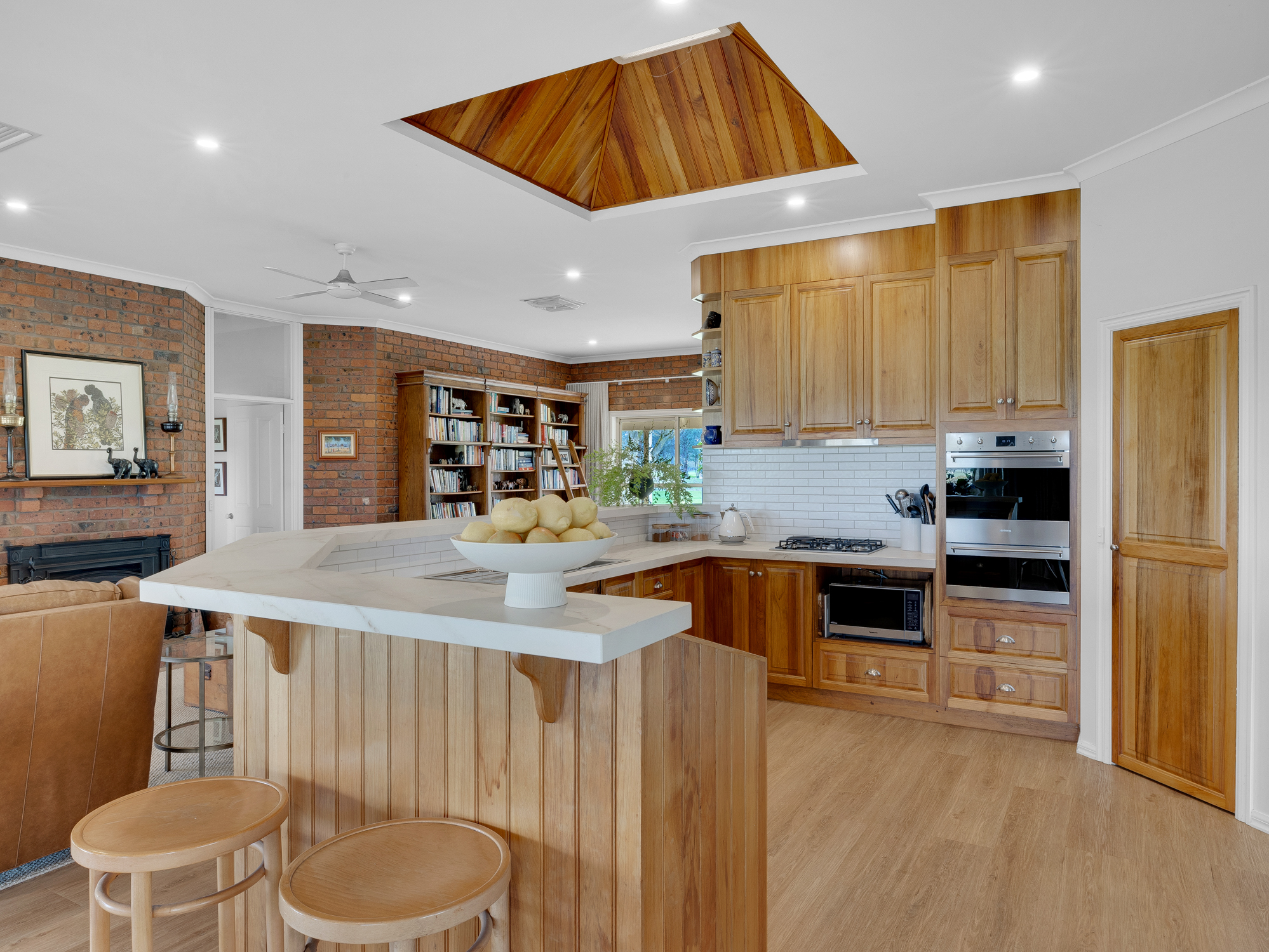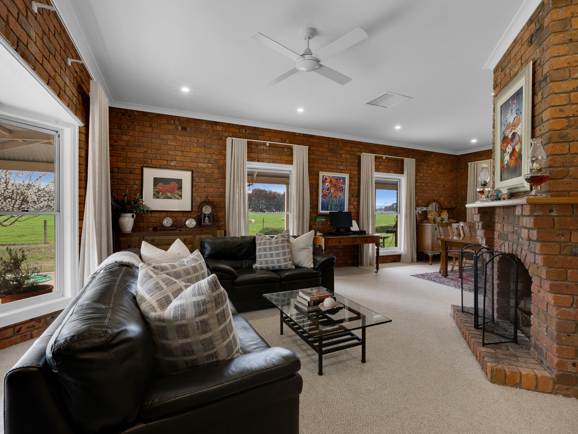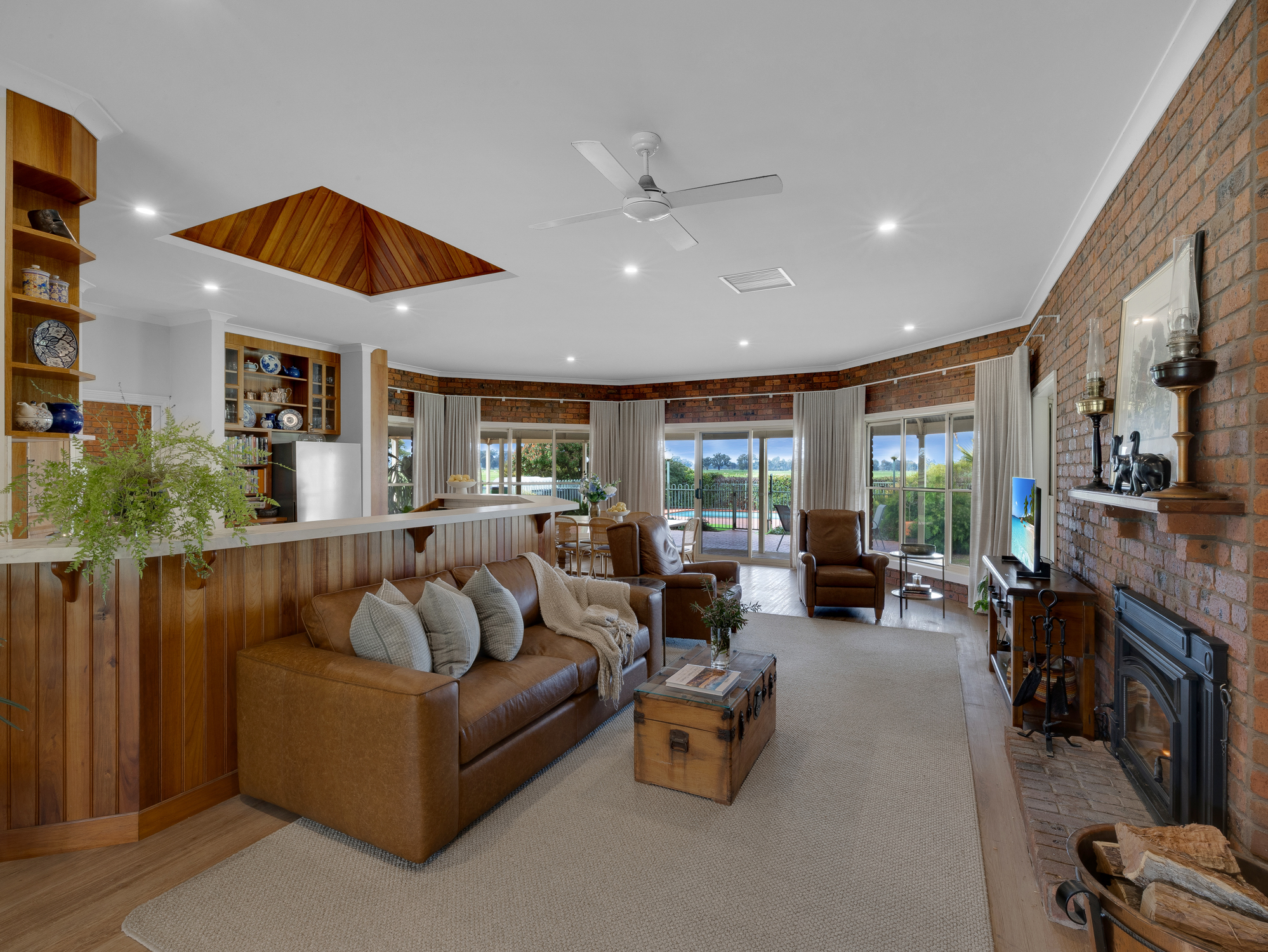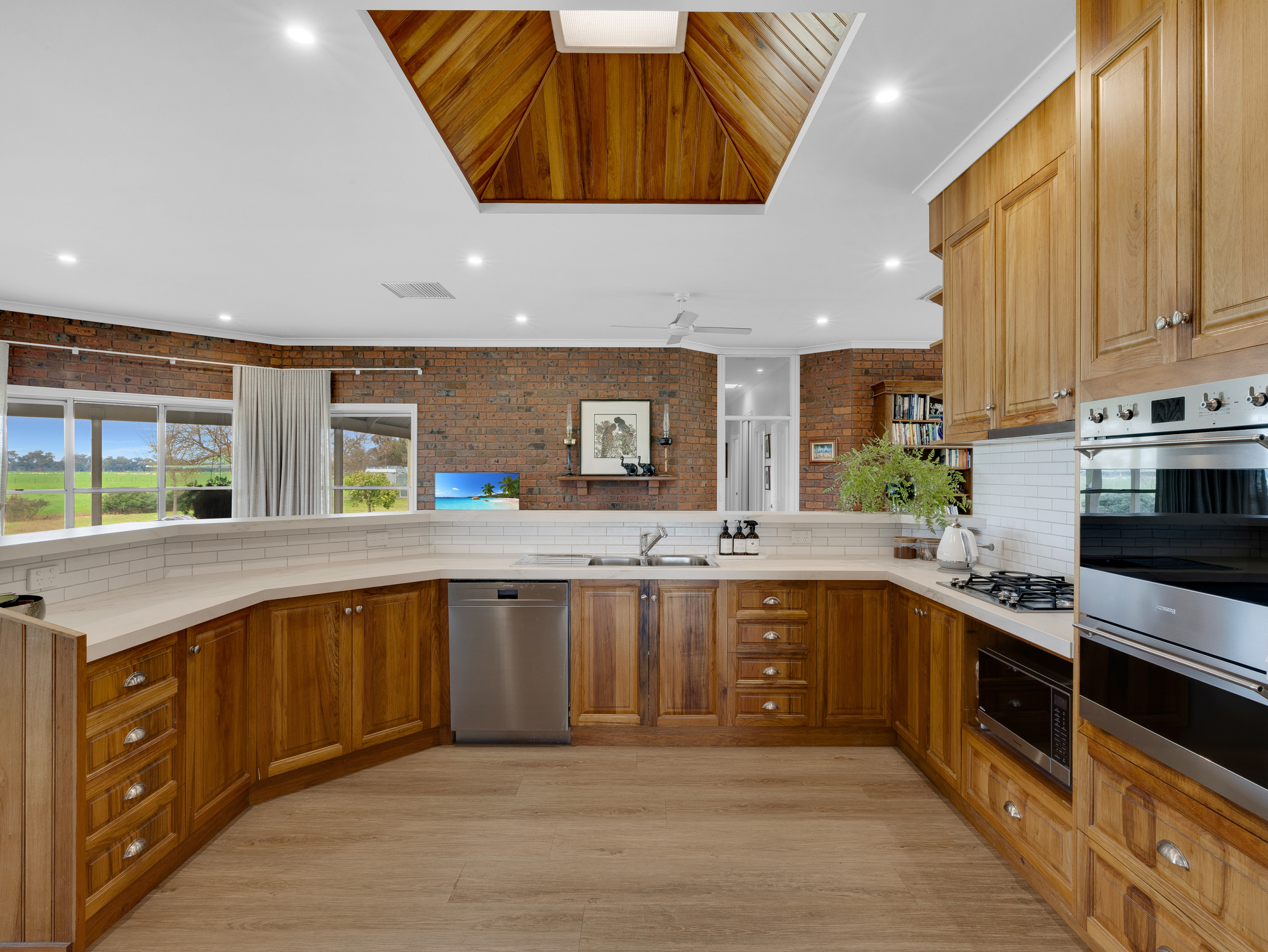 The four bedroom 32 year old brick and colorbond roofed ranch style homestead provides around 242 m2 of living area with wide bullnose verandahs on four sides plus a two car enclosed brick garage. All bedrooms have built-in robes whilst the master bedroom has a walk-in robe plus full en-suite. The main bathroom has a spa bath. There are two main living areas including a formal lounge with large open fireplace. The Tasmanian Blackwood kitchen/family room is the focal point of this spacious home and opens directly onto an extensive covered outdoor entertaining area with inground pool (solar heated, salt chlorinated and self cleaning). Other noted features of the home are high ceilings, bay windows, central vac system, evap cooling, multiple ceiling fans and a solid fuel space heater. The refurbished kitchen is equipped with a new gas cooktop, double electric wall oven, new dishwasher, porcelain benchtops and walk-in pantry. The property has an 8.5 kw solar array with a fast charge facility as well as Starlink for high speed internet.