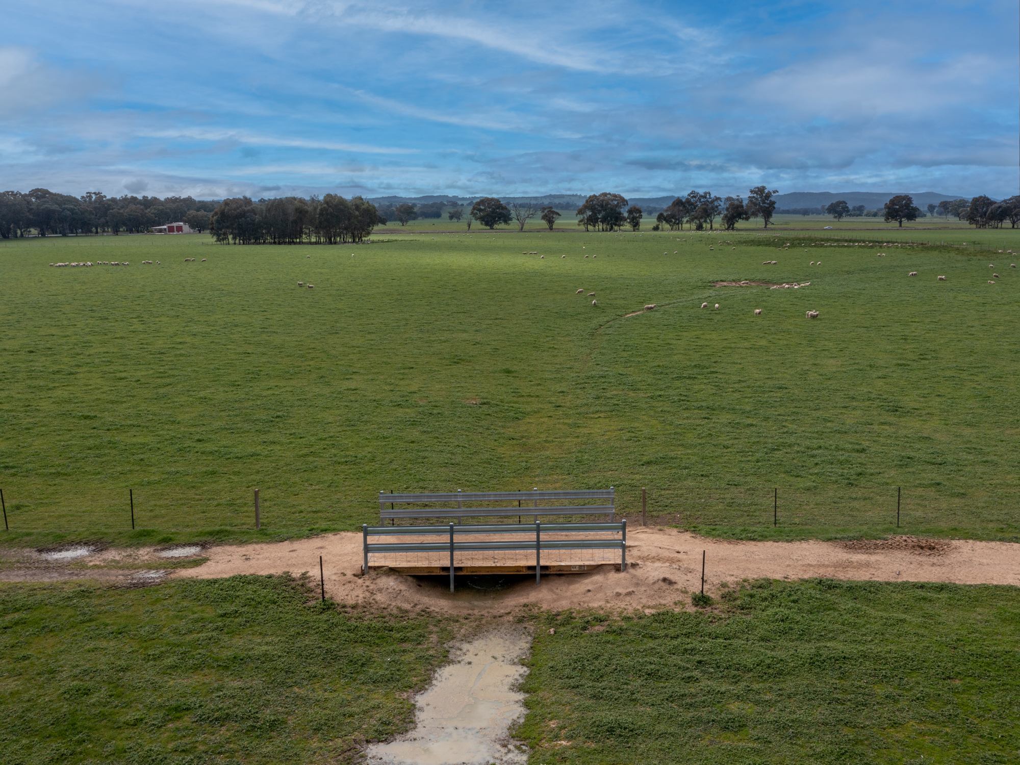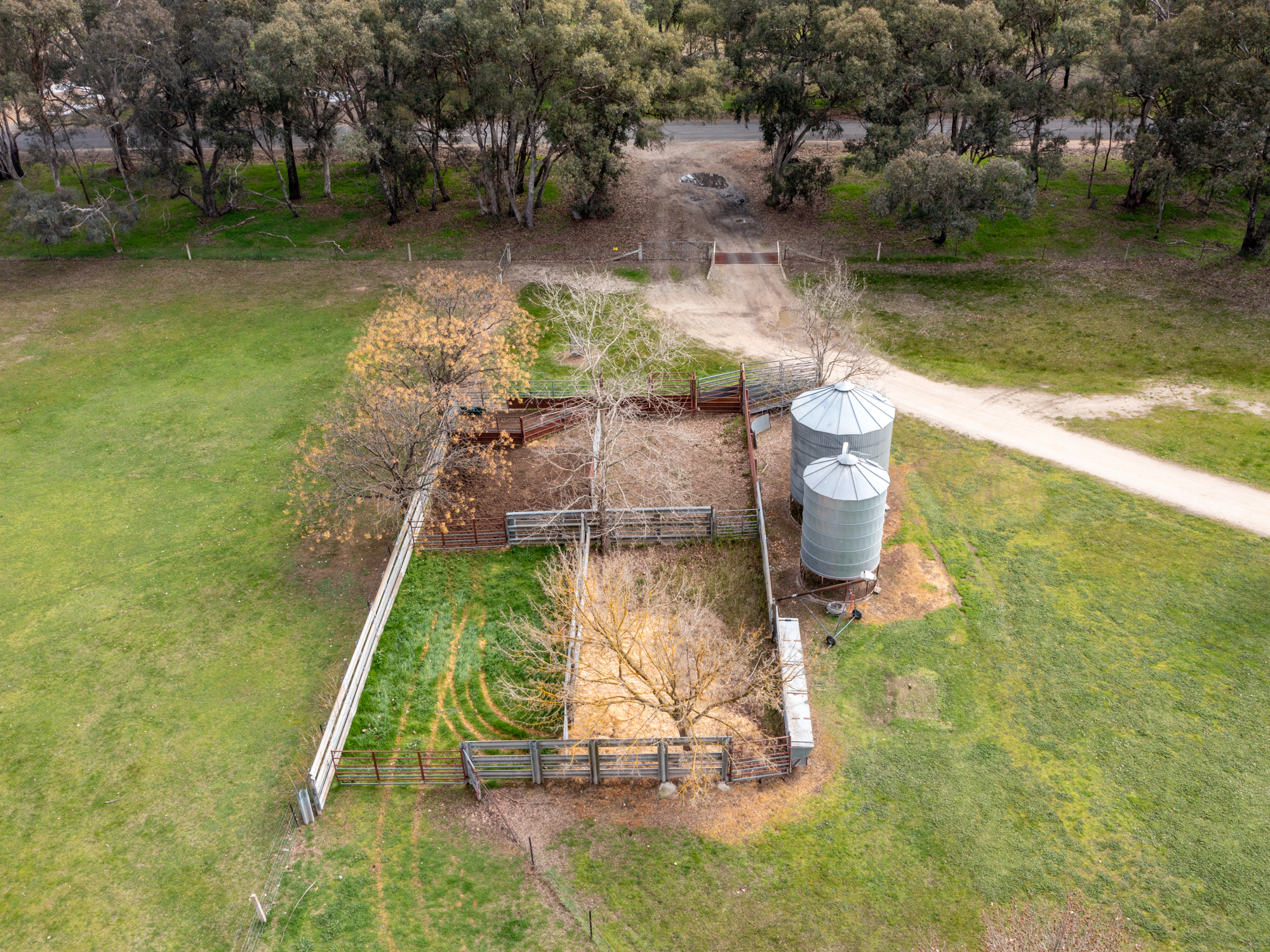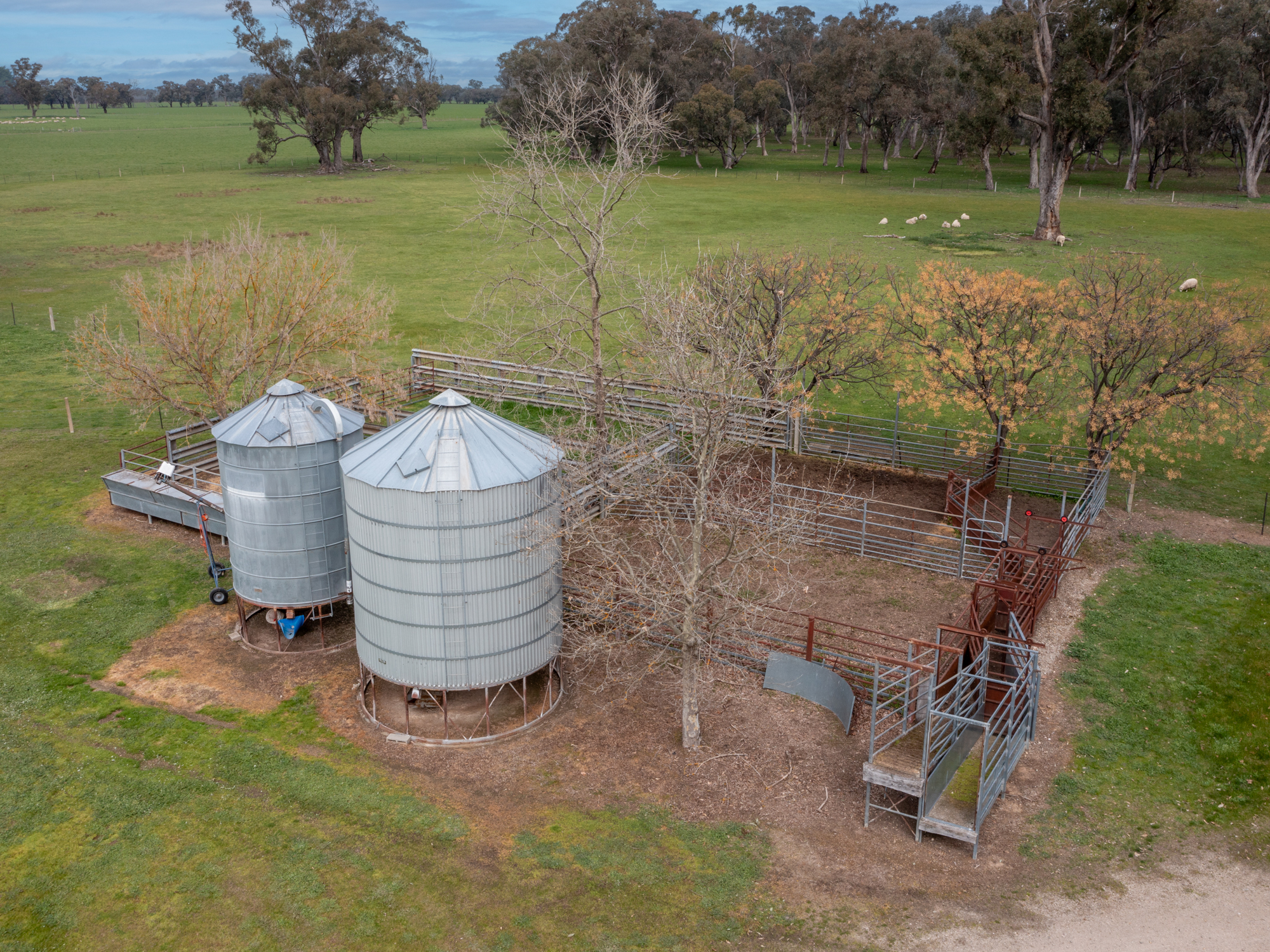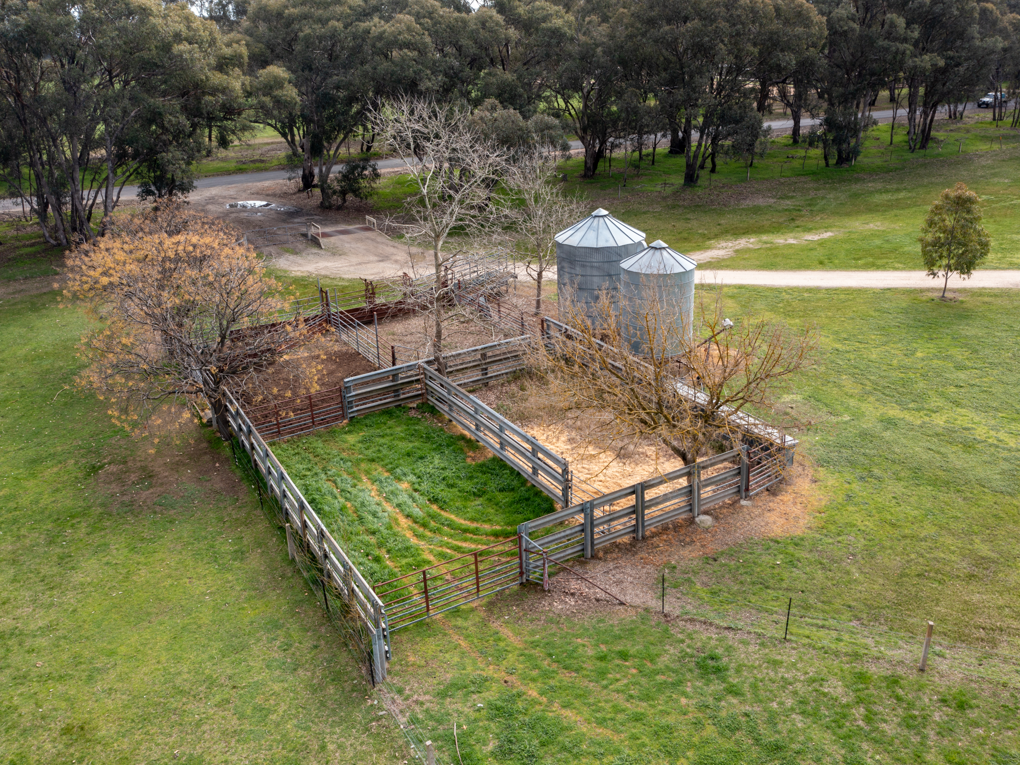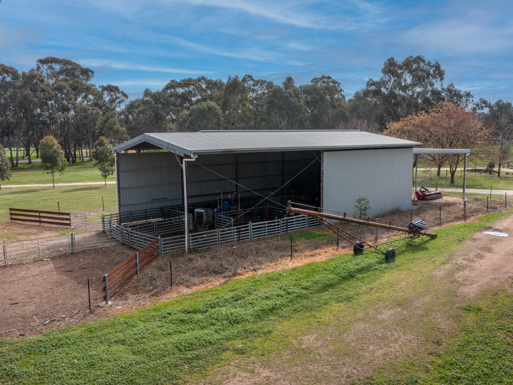 Farm buildings and structures include a part enclosed steel/colorbond general purpose machinery shed/workshop (9m x 18m), a similar sized high clearance steel shearing and general purpose shed plus a set of steel cattle yards with loading race and crush.