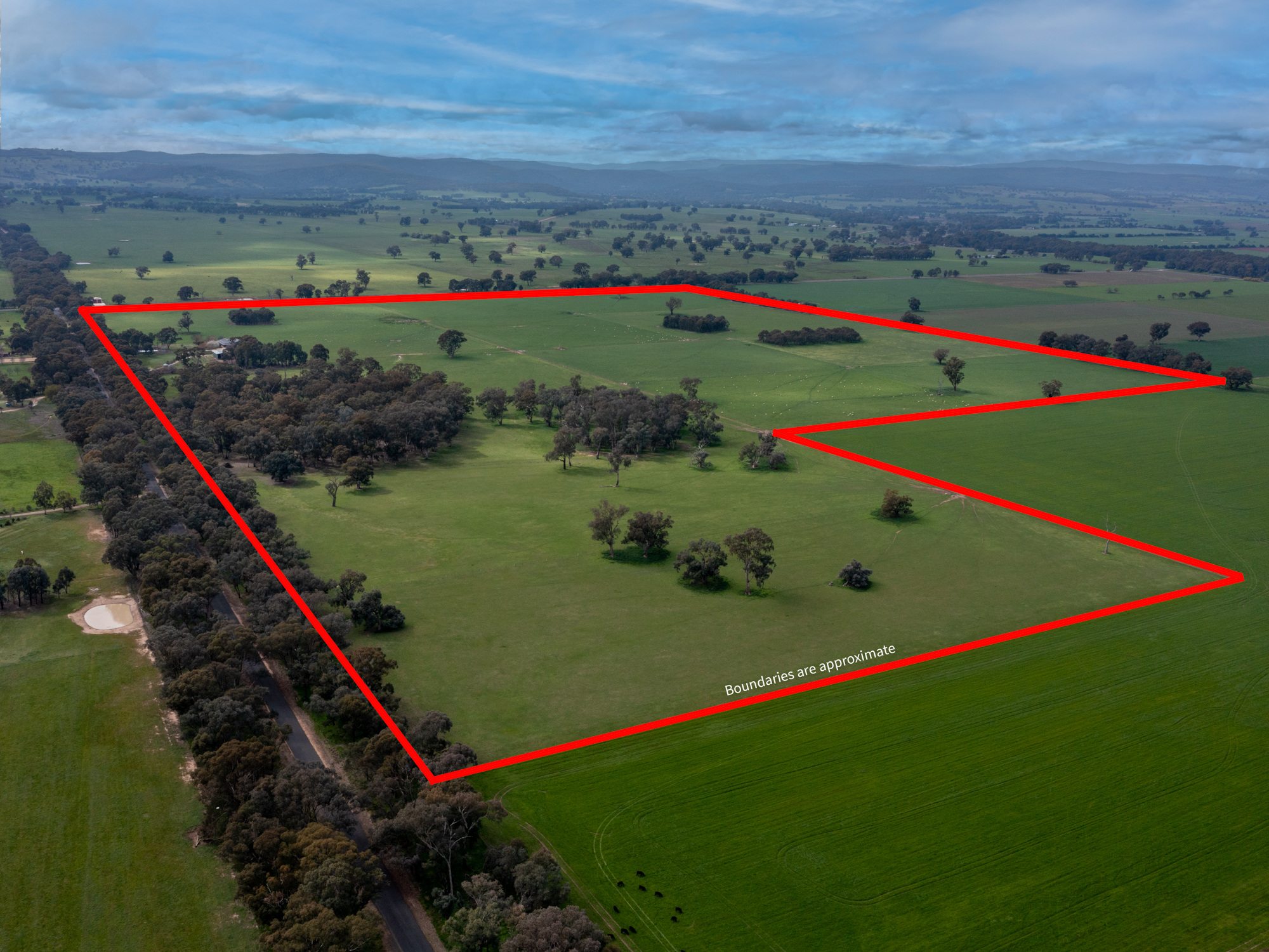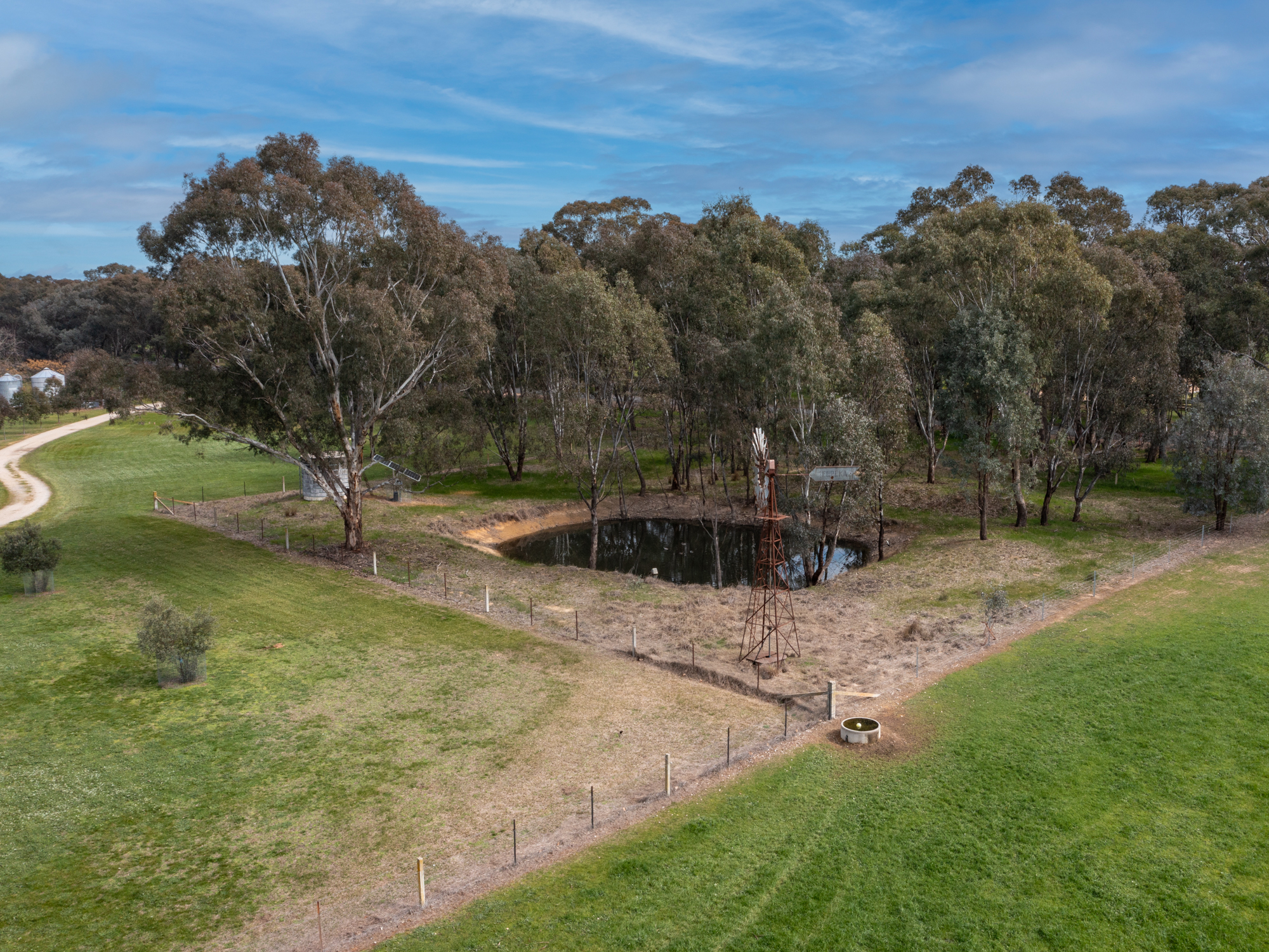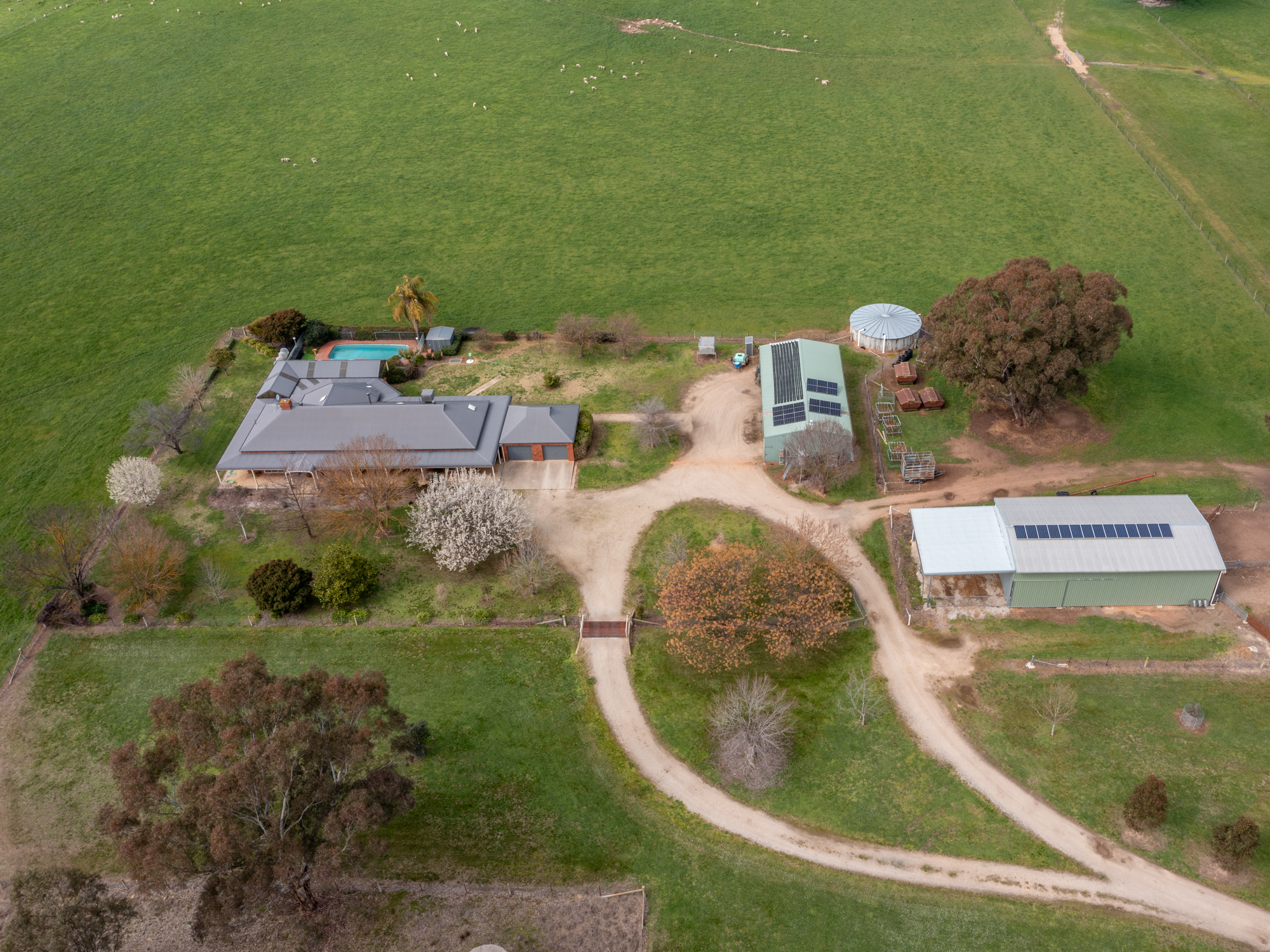 ‘Dirrawarra’ at No. 606 Byawatha Road just 13 km by sealed road from Wangaratta and a 35 minute drive from Wodonga is a highly productive grazing property with excellent improvements that would be the envy of larger landholders. The 208 acre (84.3 ha) holding in two titles is subdivided into fourteen main paddocks with first class fencing throughout. It’s all arable well drained land exhibiting evidence of well managed pastures and a fertilizer history. Currently producing prime lambs, the property has a proven history of cattle production. There are two sealed road frontages which provide management benefits. Established fenced paddock plantations compliment a sheltered reserve of native timber. Water supply is a top feature of the property and is based on a reliable, quality bore, a well with mill, a spring fed dam plus a 126,000 litre roof catchment concrete tank. All Paddocks are watered from the solar pumped bore supply.