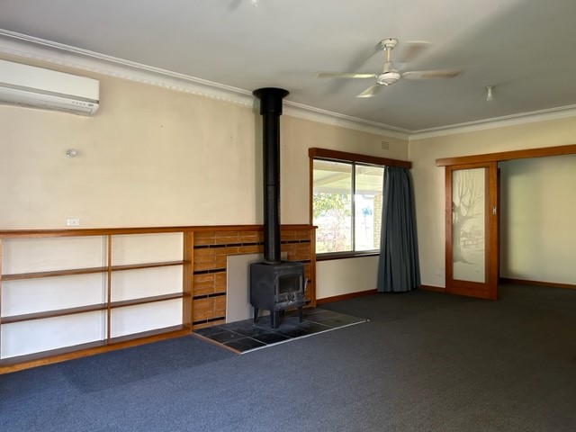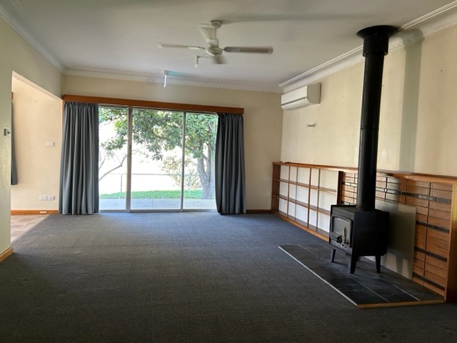 Offering three bedrooms all with ceiling fans and built in wardrobes. A spacious lounge lounge room with split system heating and cooling plus fire place.
