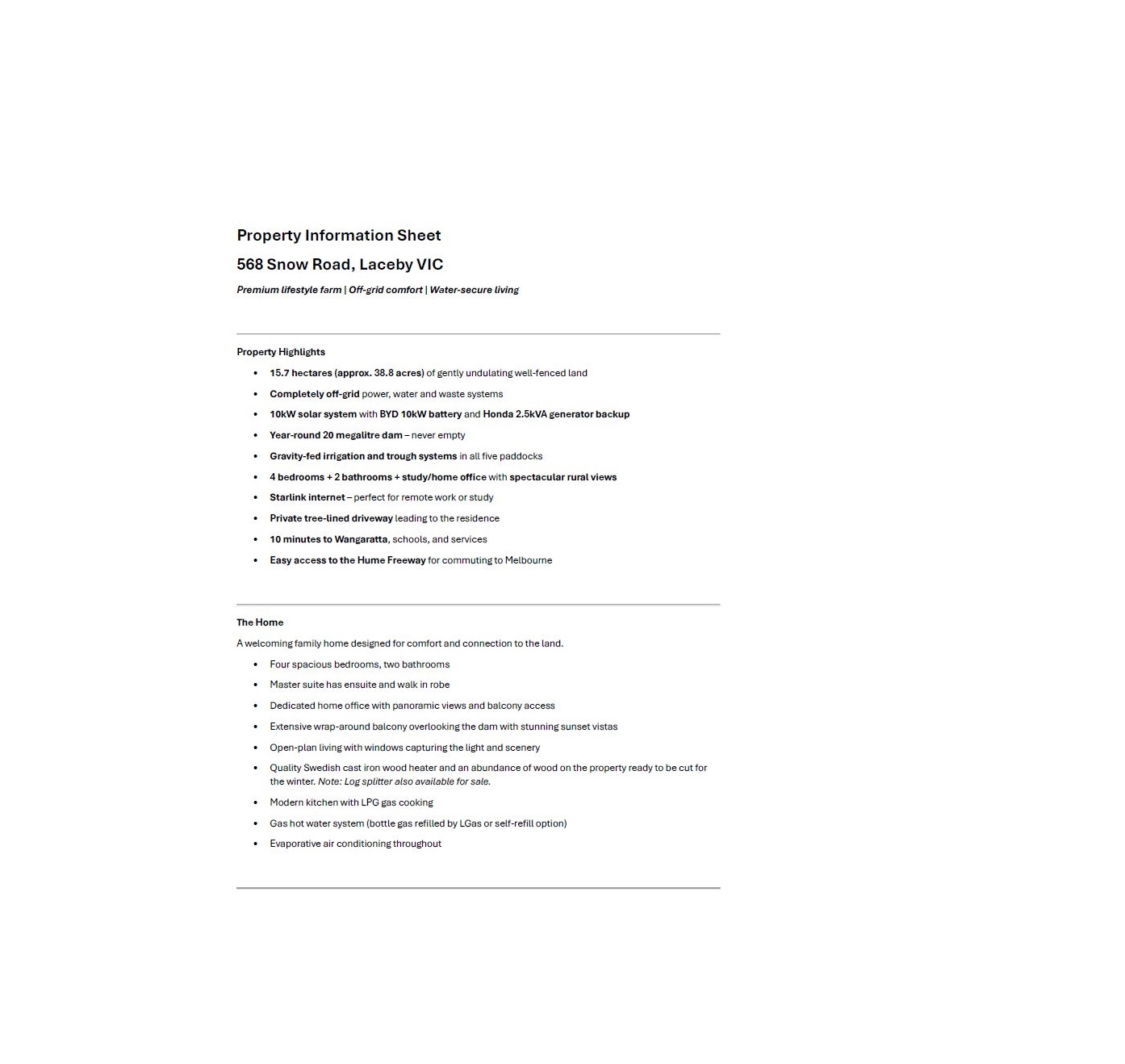 This is more than a property - it’s a way of life. A premium lifestyle farm offering complete independence, comfort, and security - perfect for those who value self-sufficiency without isolation. Enjoy sustainable, off-grid living in a beautifully maintained property where every detail has been designed for reliability, resilience, and rural elegance.