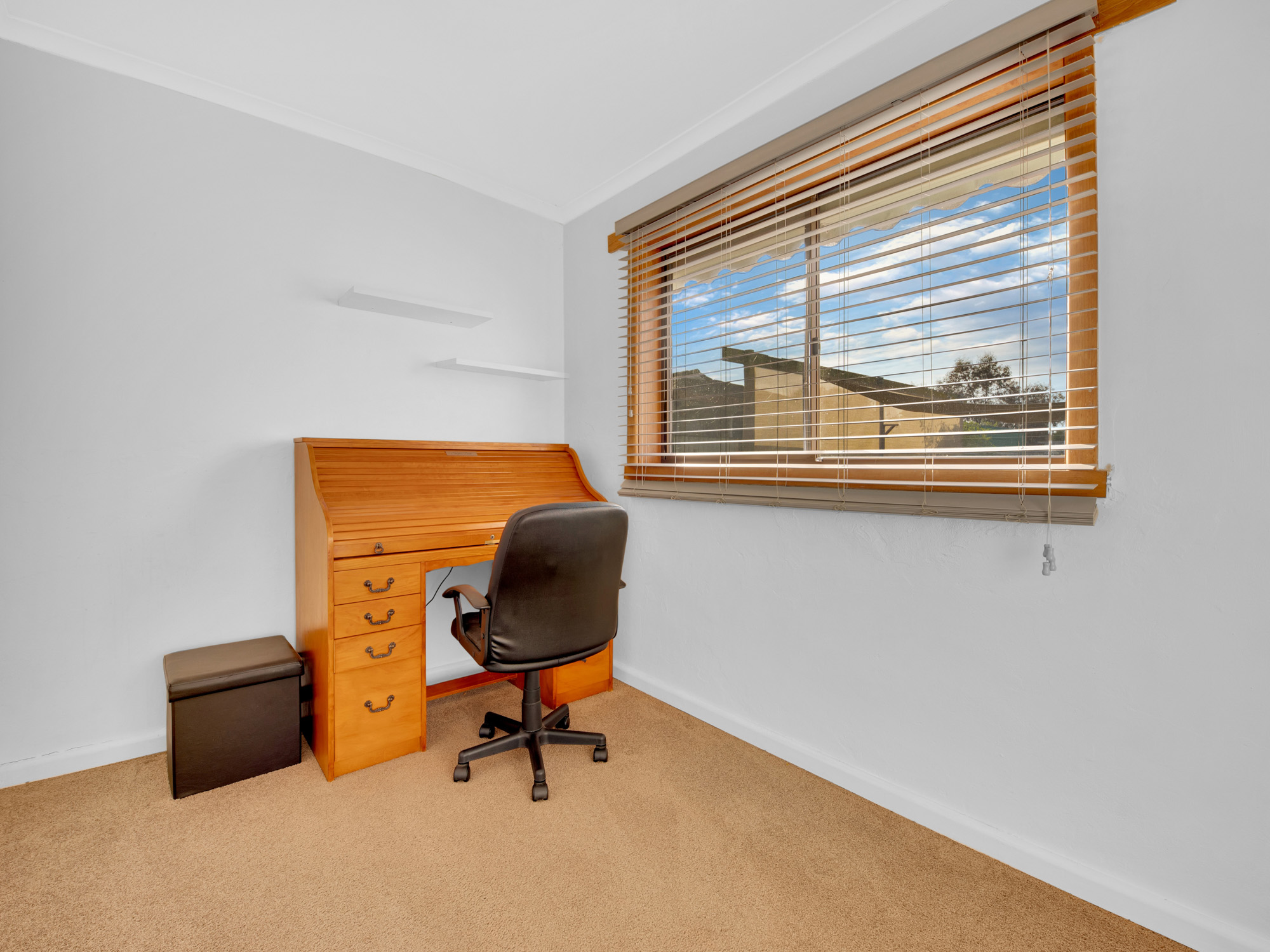 This well-maintained home features two bedrooms plus a study (or optional third bedroom), including a spacious master with ceiling fan. The main bathroom is complemented by a separate toilet and a large, functional laundry. The kitchen is in superb condition, offering gas cooking, abundant cupboard space, and an adjoining dining area — ideal for family meals or entertaining.