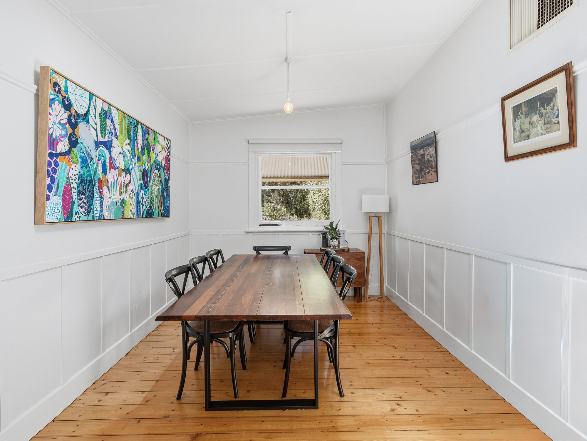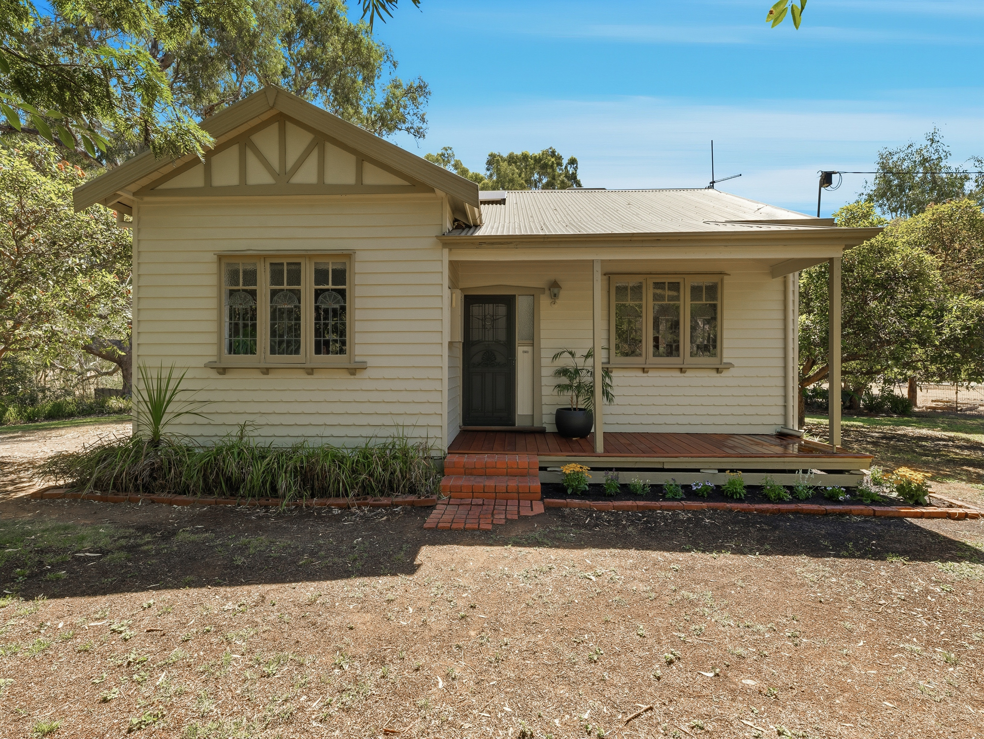 The home features three generously sized bedrooms, two of which include built-in robes, a third with open fireplace, and a well-appointed bathroom with bath, vanity and separate shower. Original character is complemented by modern comforts, including a choice of evaporative cooling or reverse cycle heating and cooling, , and a solar hot water service, ensuring year-round comfort.