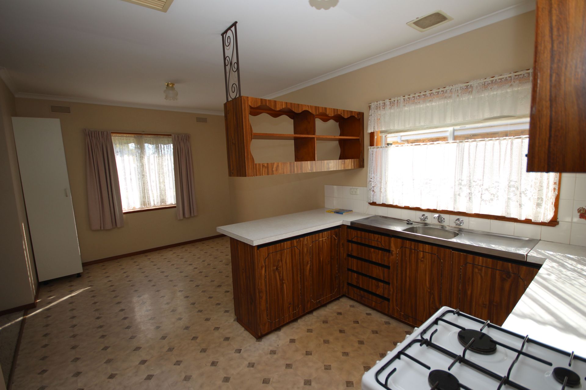 - Gas cooking and separate dining area.
