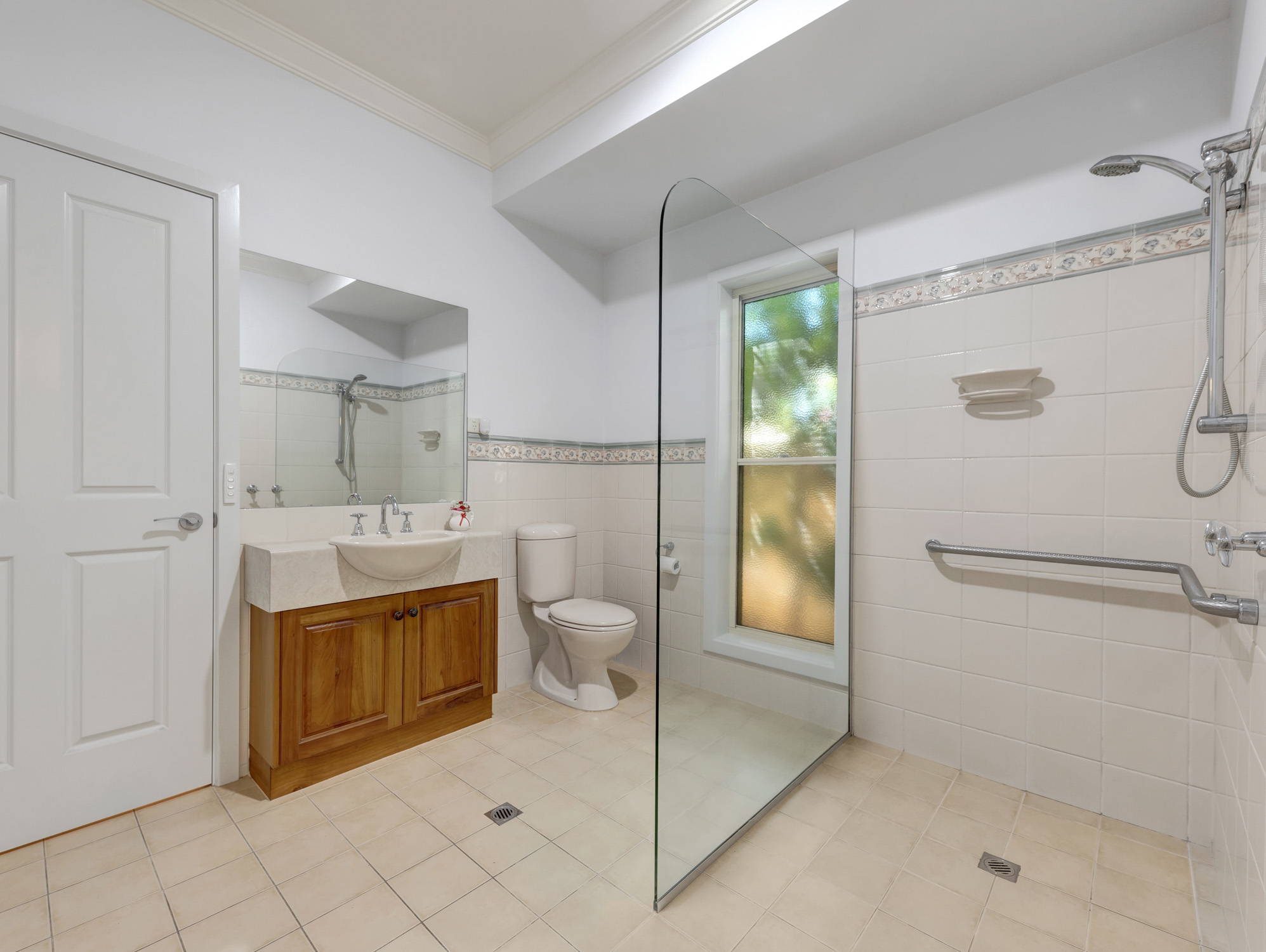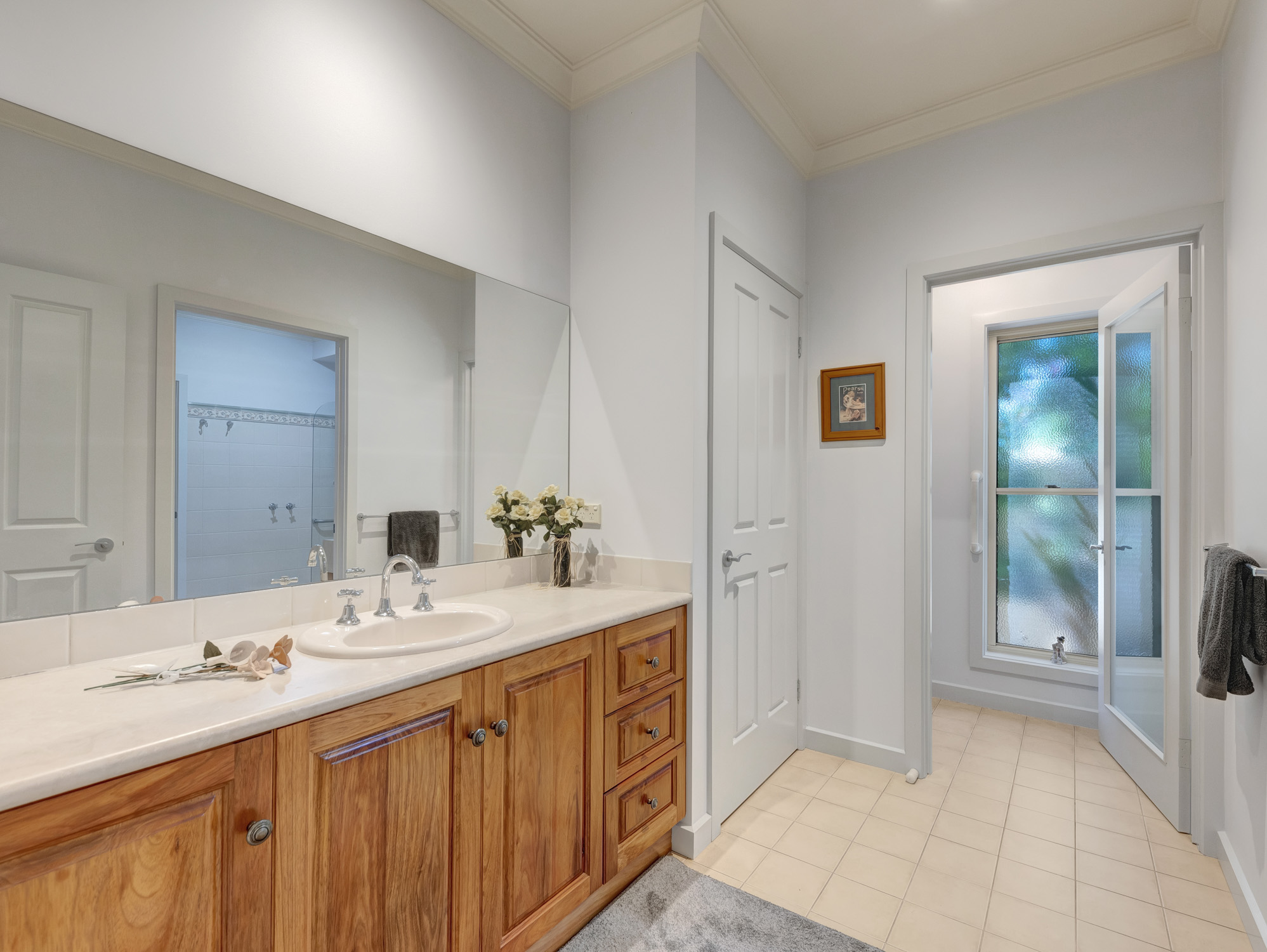 The bespoke design provides an expansive sun filled living/kitchen area opening to shady covered outdoor living areas. The master bedroom connects directly to a large bathroom which itself provide separable usage of the two toilets, shower and powder room vanity.