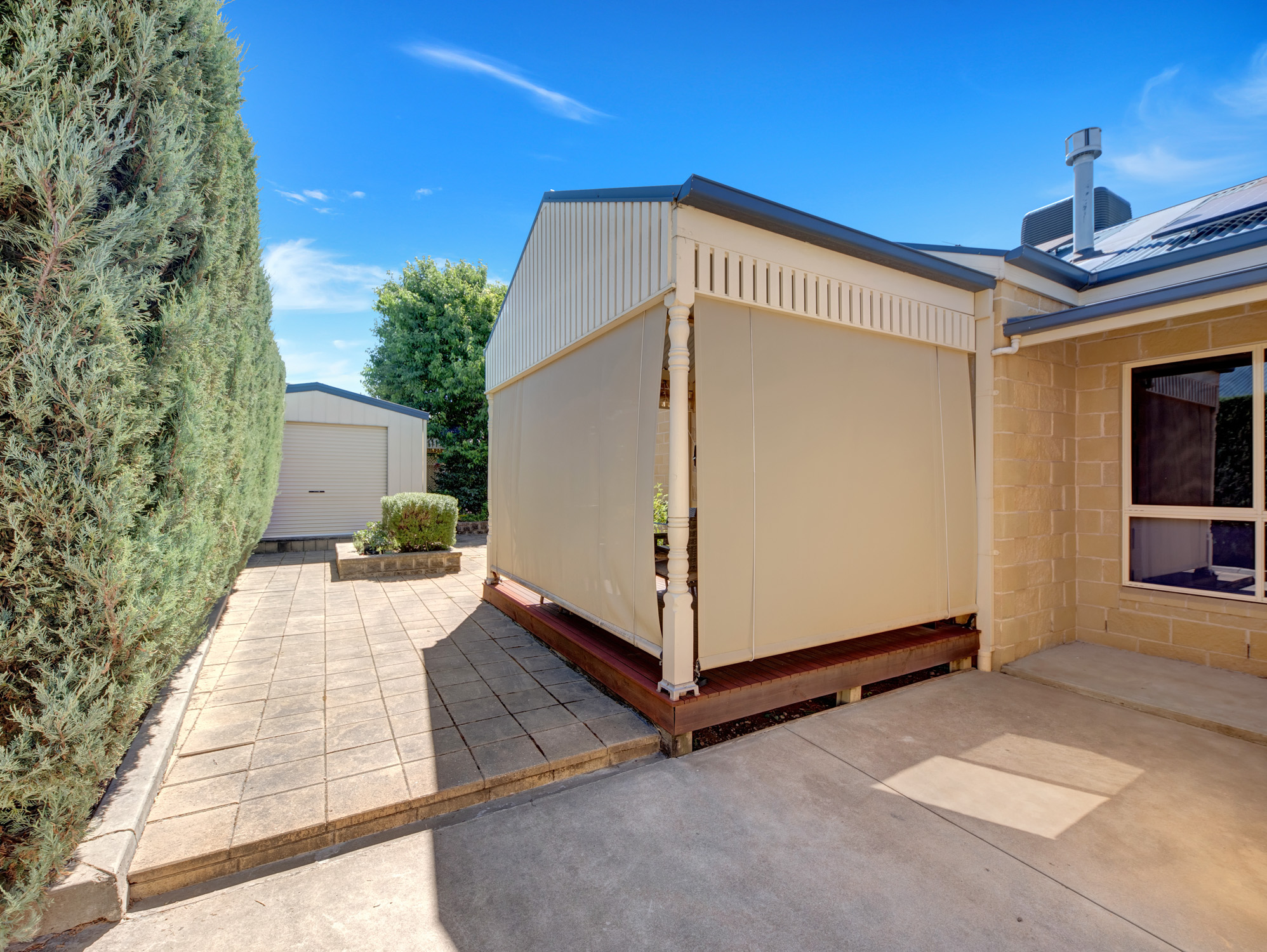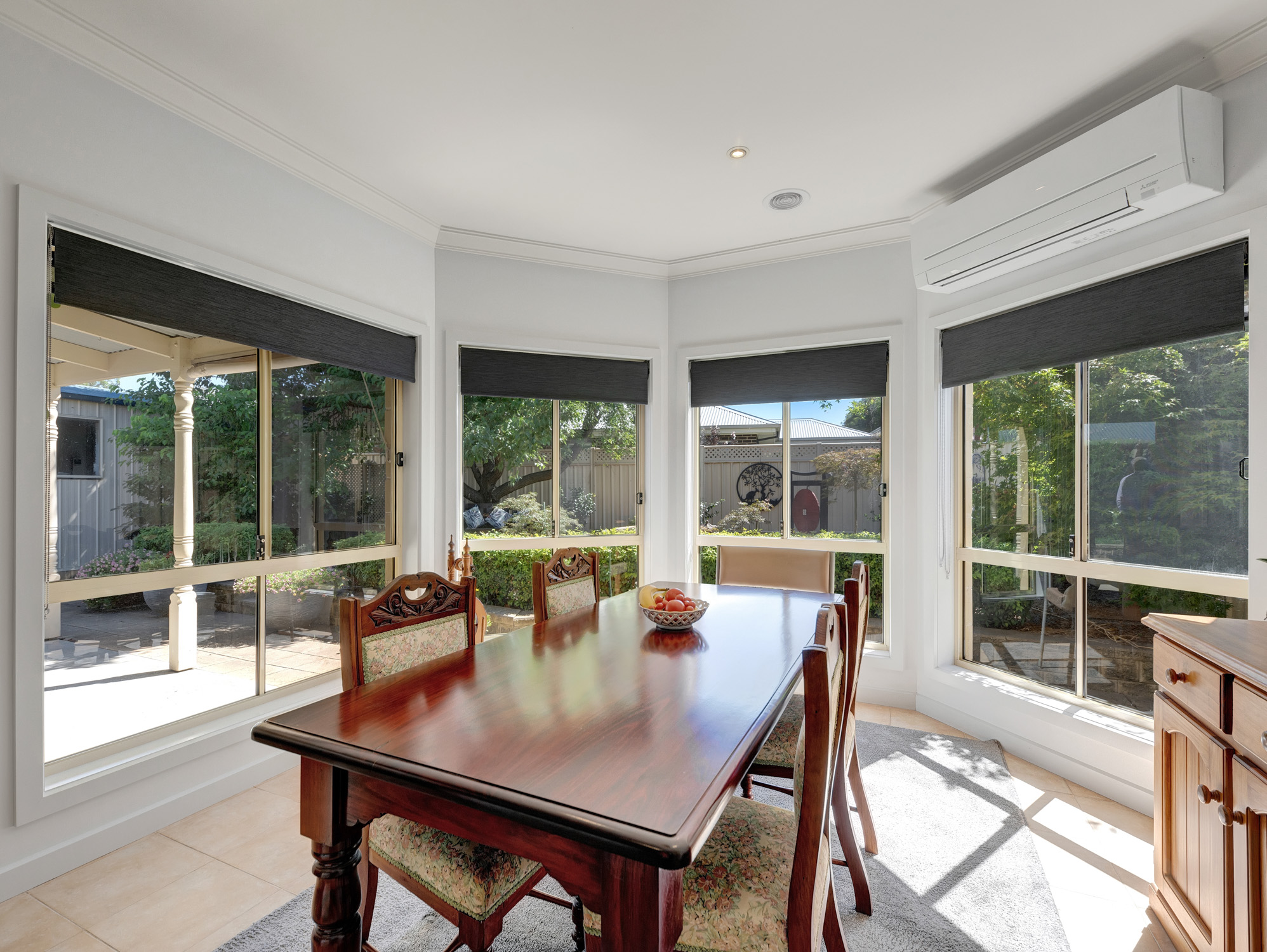 In addition to ducted evaporative cooling, ducted gas heating and a cosy gas ‘log like’ space heater, there is reverse cycle air conditioning. The home is serviced by 8.9kw solar roof panels.