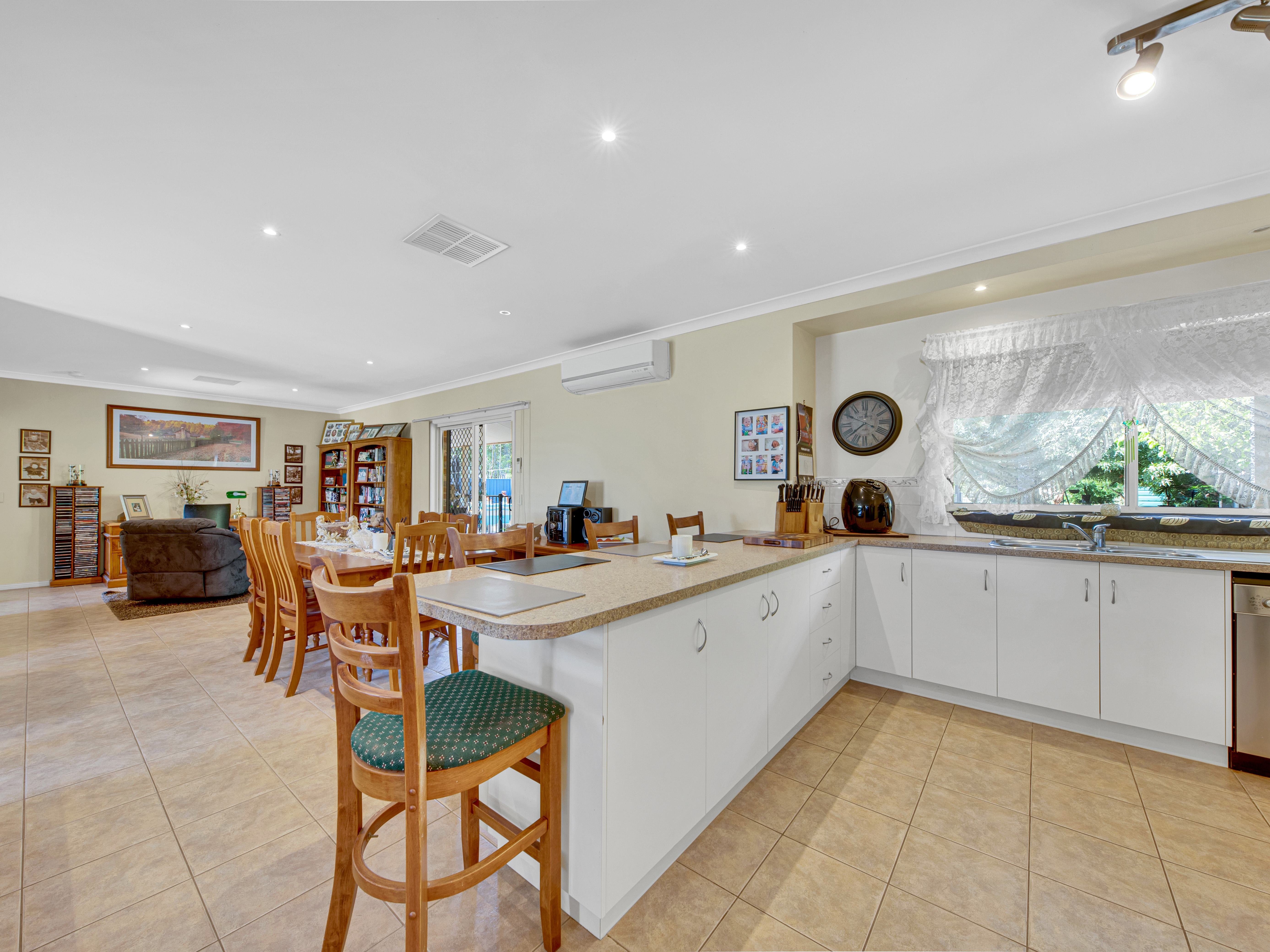 Located on 4.91 Acres with an overview of the established shady garden. The spacious three bedroom, master with full ensuite plus work from home study brick veneer. Has in design a large open plain living area and comes equipped with an all-electric modern kitchen including dishwasher. The home is climatically controlled by ducted evap cooling plus reverse cycle split system and a cozy wood fire. The windows provide and bring lots of natural light into the living areas along with wonderful views over the shady garden. Outside a large salt chlorinated pool blends perfectly in with an undercover alfresco BBQ entertaining area. An additional 10 car carport completes the package. No 79 is a short easy commute distance to Wangaratta with its own magic ambiance!