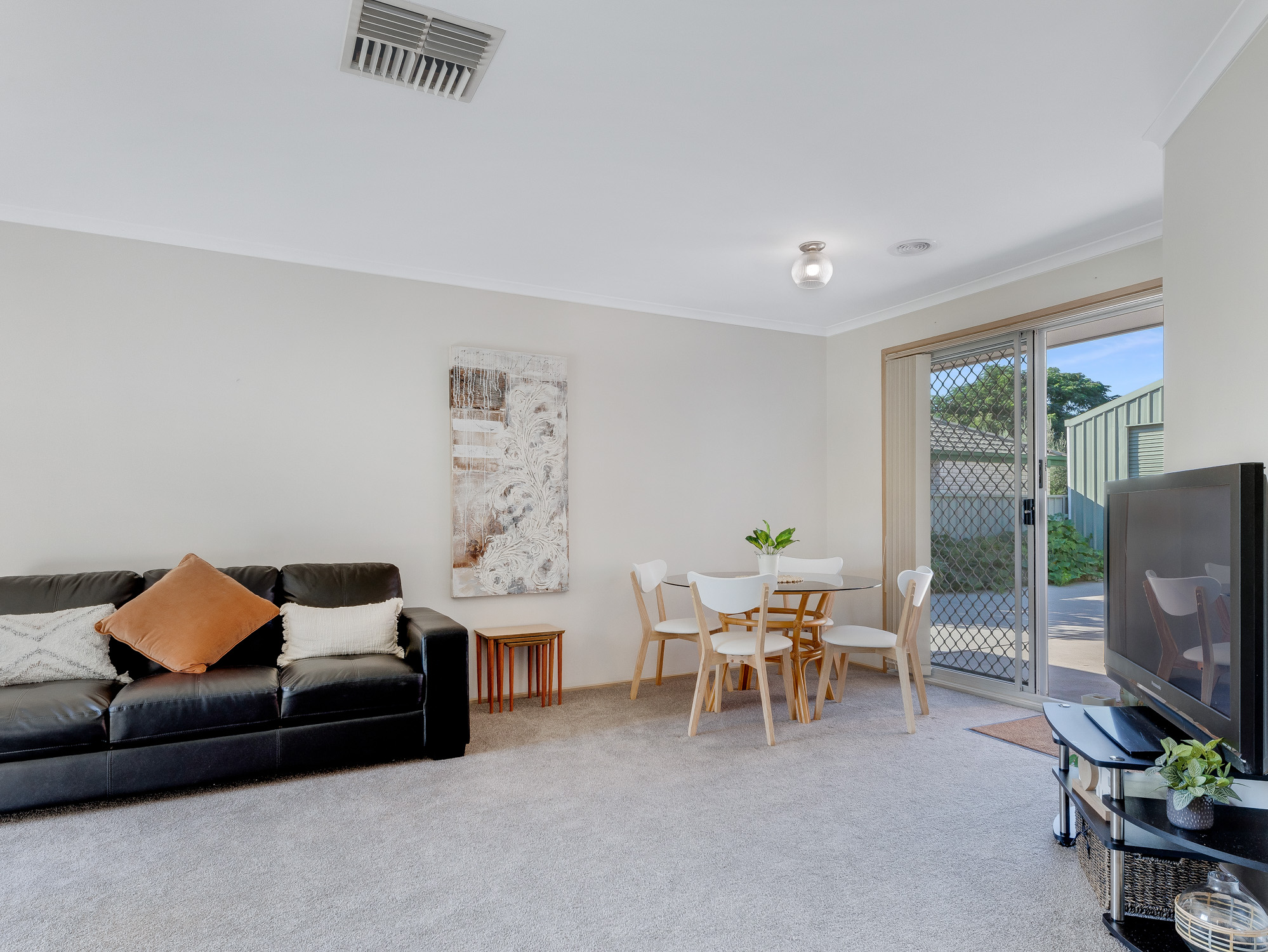In addition to two single carports with secure roller door entry and securely fenced private yard, the property has the bonus of a large colour bond clad shed, fully paved with water and power installed.